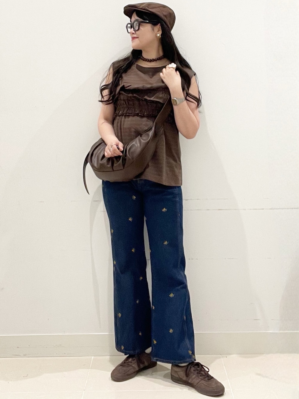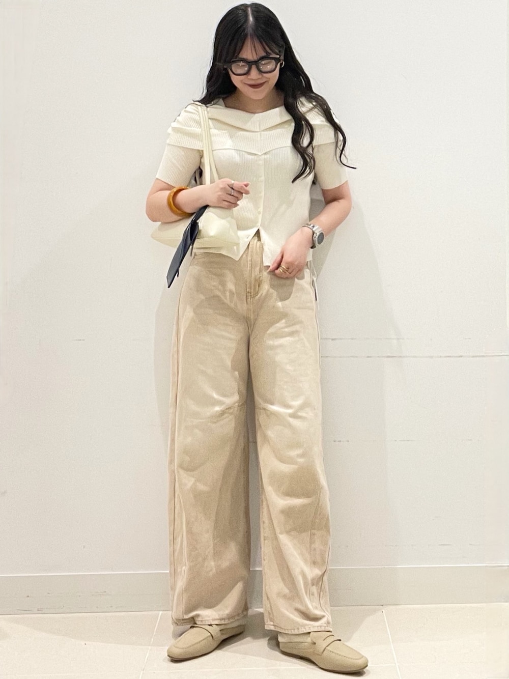 今回は1枚で着ても可愛いハーフジップをデニムと合わせてカジュアルコーデにしてみました。トップスの黄色とデニムの色落ち部分が黄色っぽくなっているところがポイントで合わせてみました!