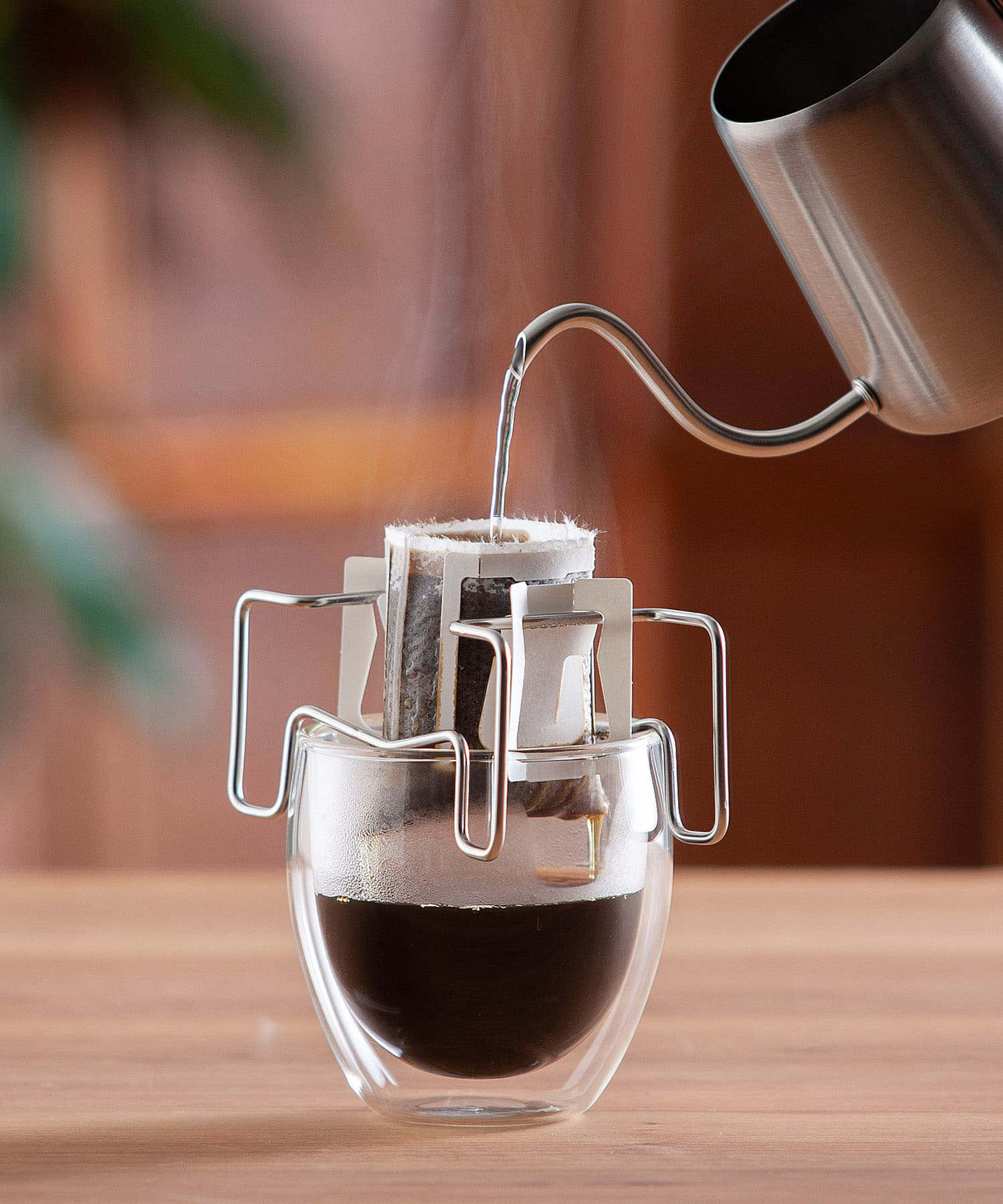 マグカップやグラスの上にドリップバッグをスタンドにセットするだけで、手軽にコーヒーを楽しんでいただけます。
