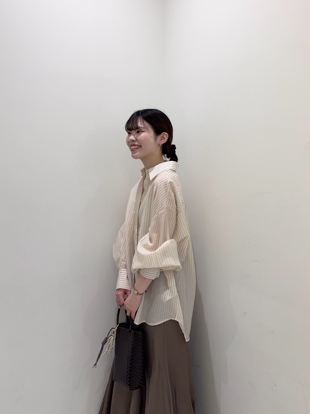 アームホールと裾のドロストによって、形の変化を楽しむことができるシャツです!パンツ・スカートどちらとも合わせやすいです!!