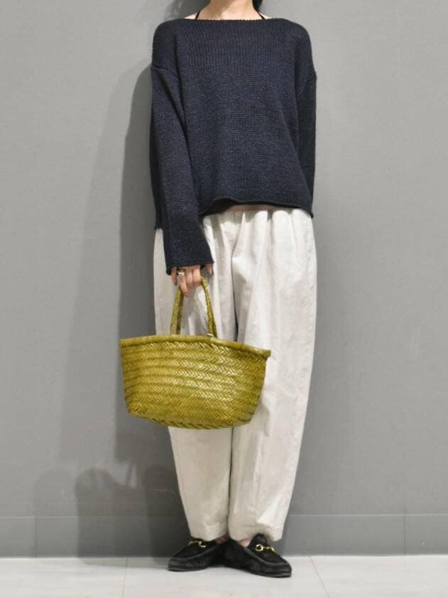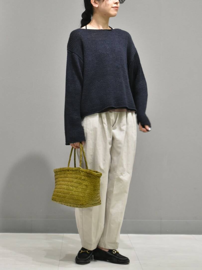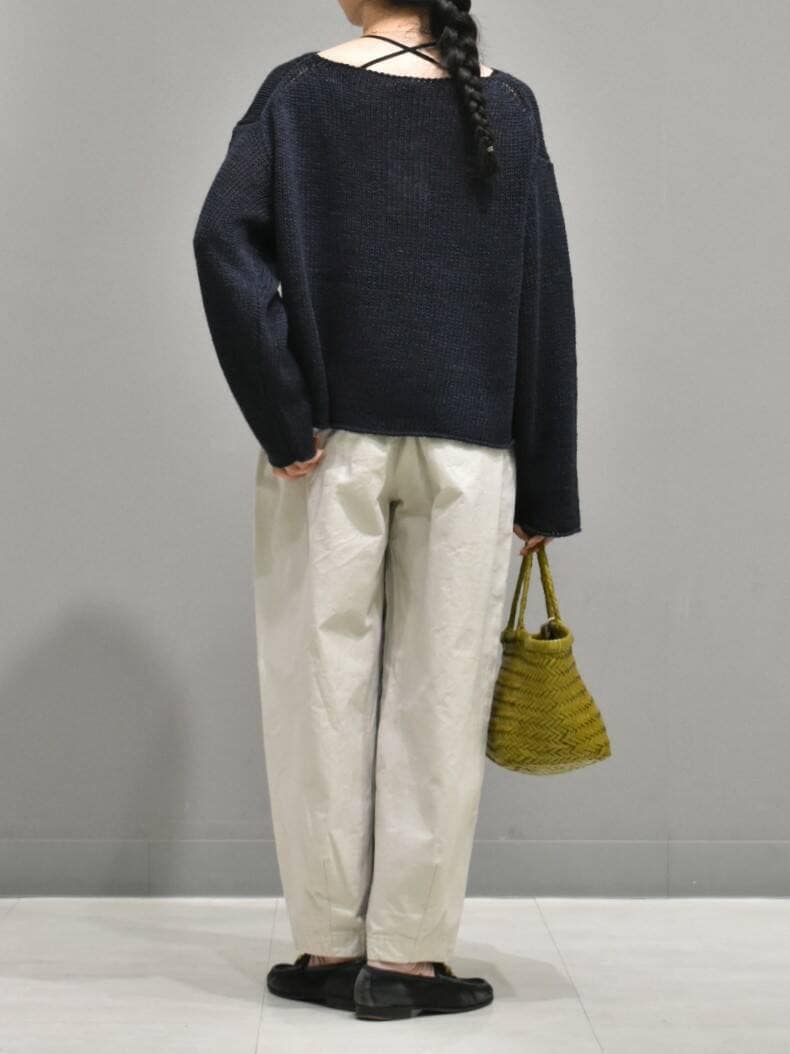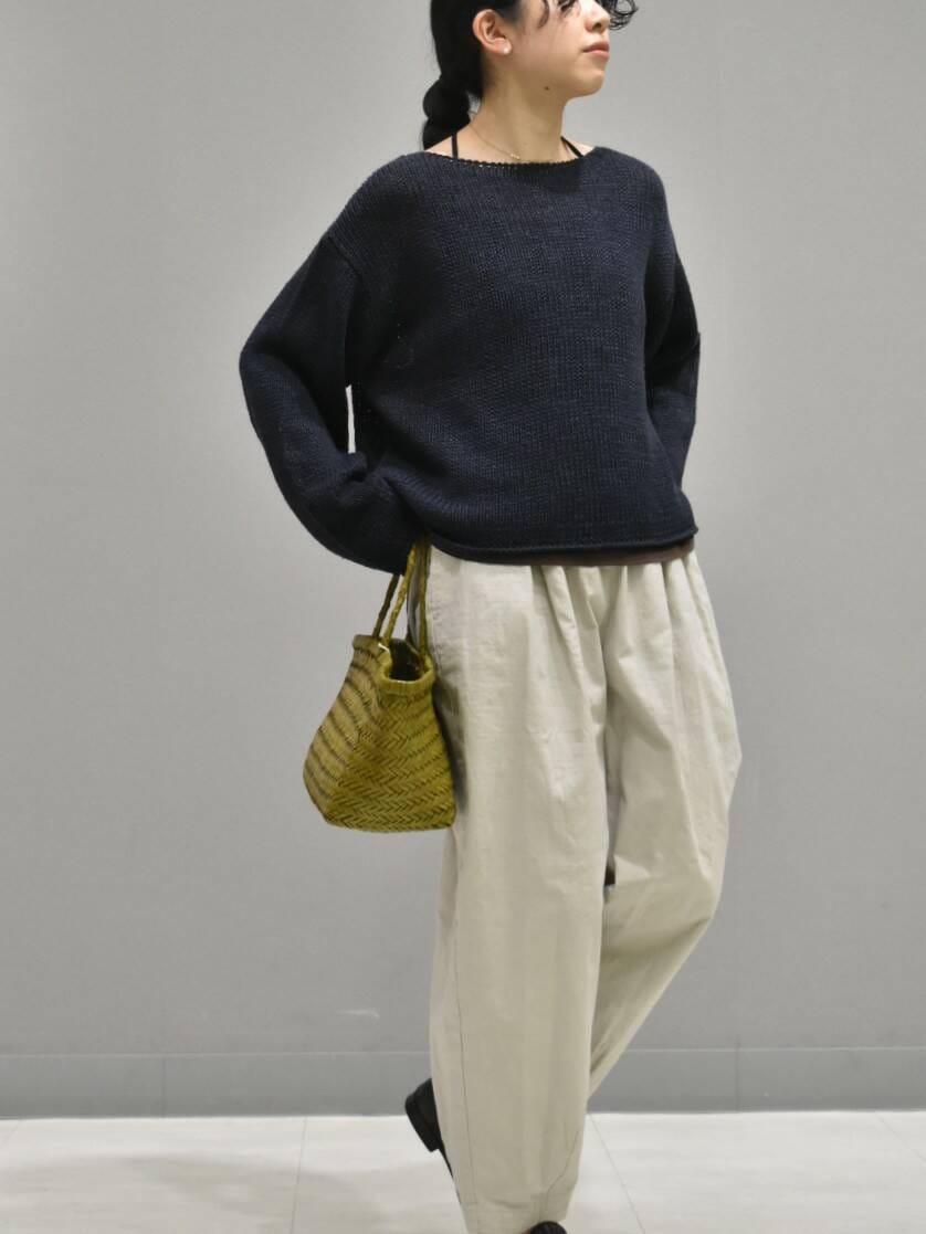 個人的に気になっているカラーコクーンパンツで楽ちんだけどきれい見えするスタイリングを組んでみました。