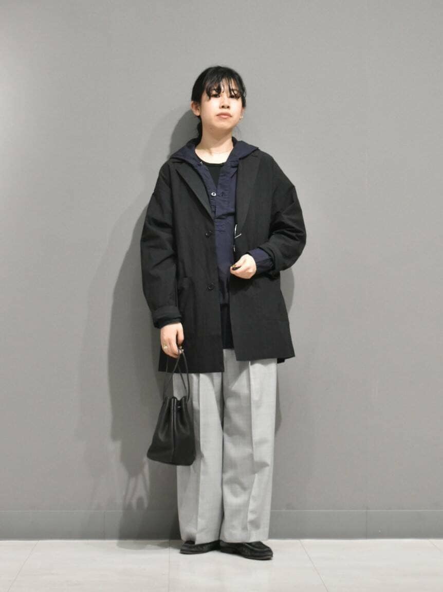 ボトムスはほんの少し綺麗めな印象でまとまるようにウール素材のアイテムを合わせました。
