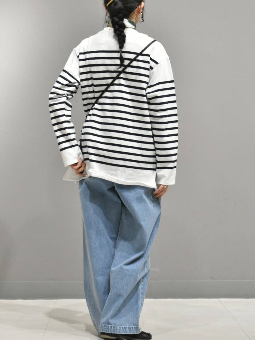 新入荷のオーシバルのボーダープルオーバーとかぐれのデニムで大人カジュアルコーデを組んでみました。