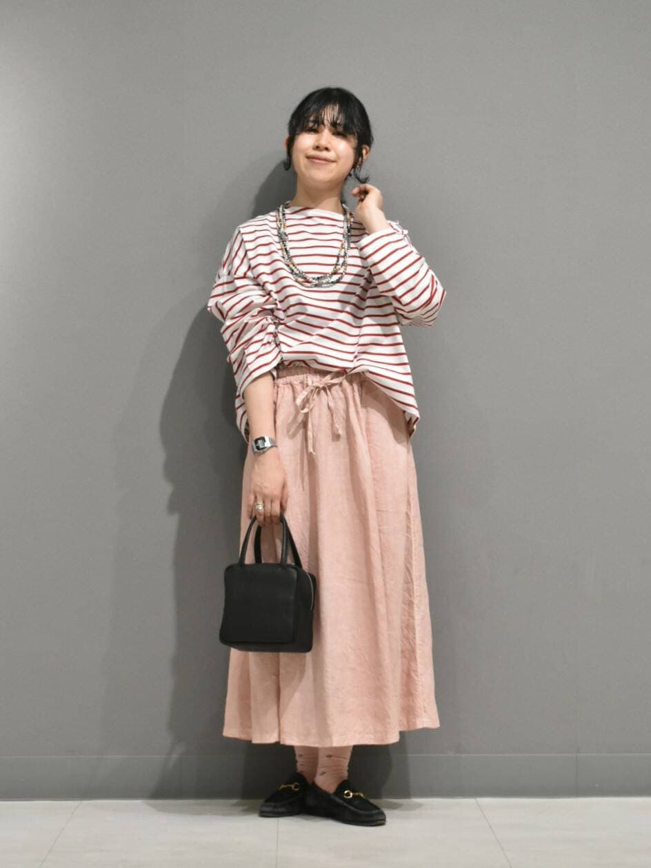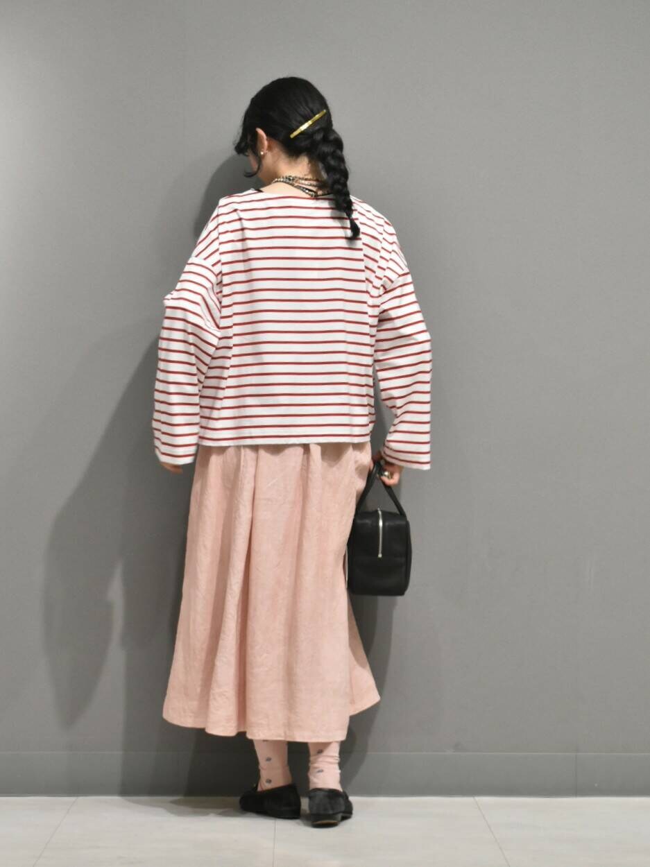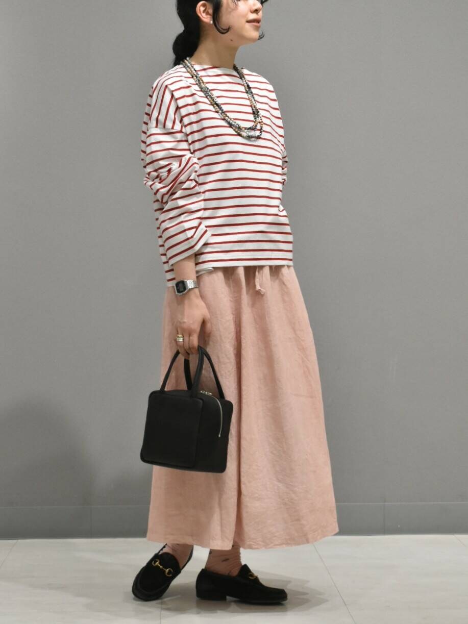 新鮮な赤色のボーダーは、着丈が少し短めなので太めなパンツやフレアスカートとも好相性です◎