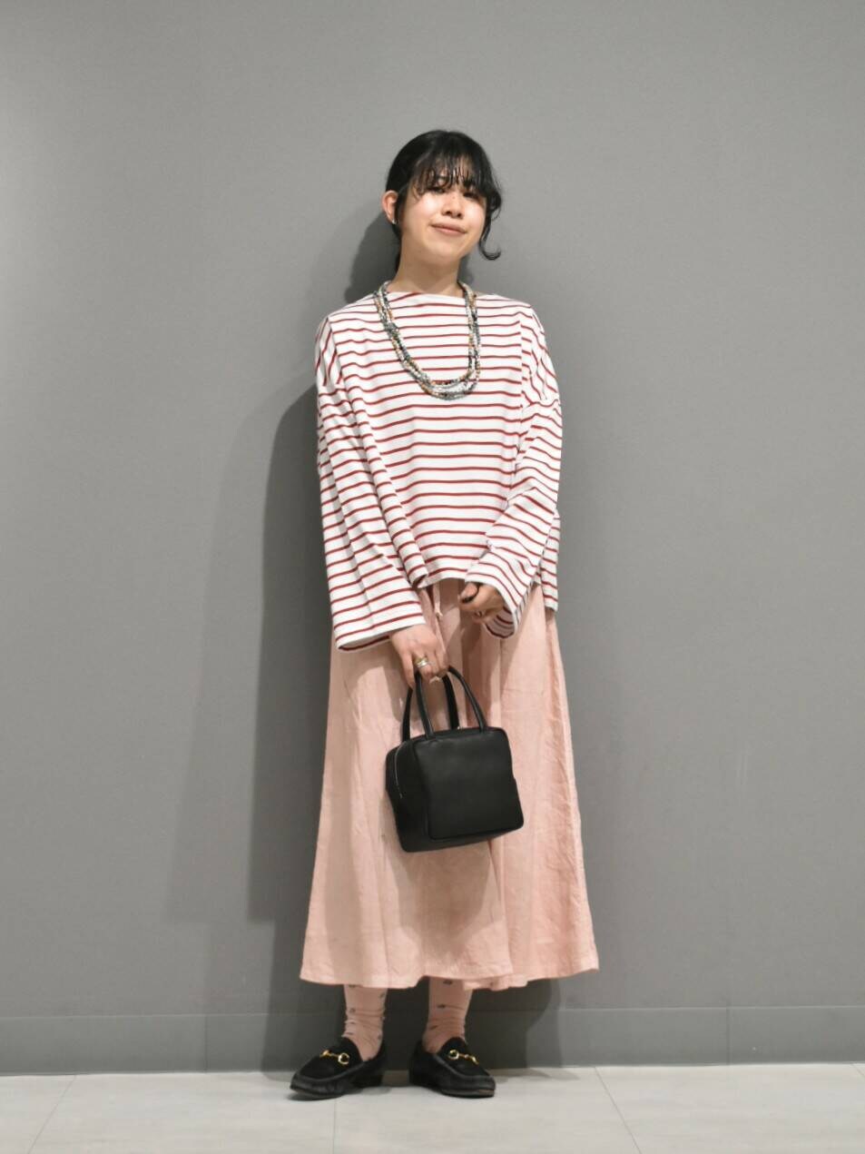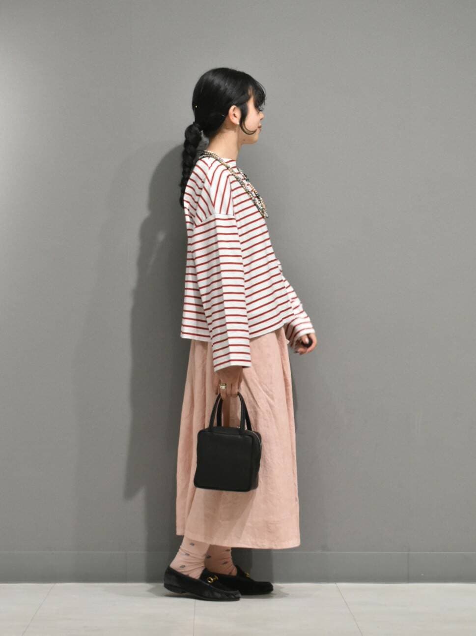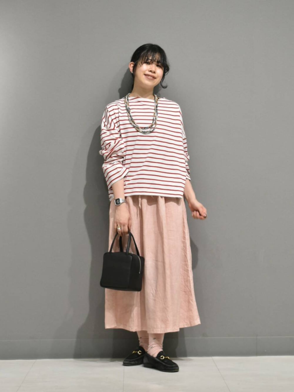 新鮮な赤色のボーダーは、着丈が少し短めなので太めなパンツやフレアスカートとも好相性です◎