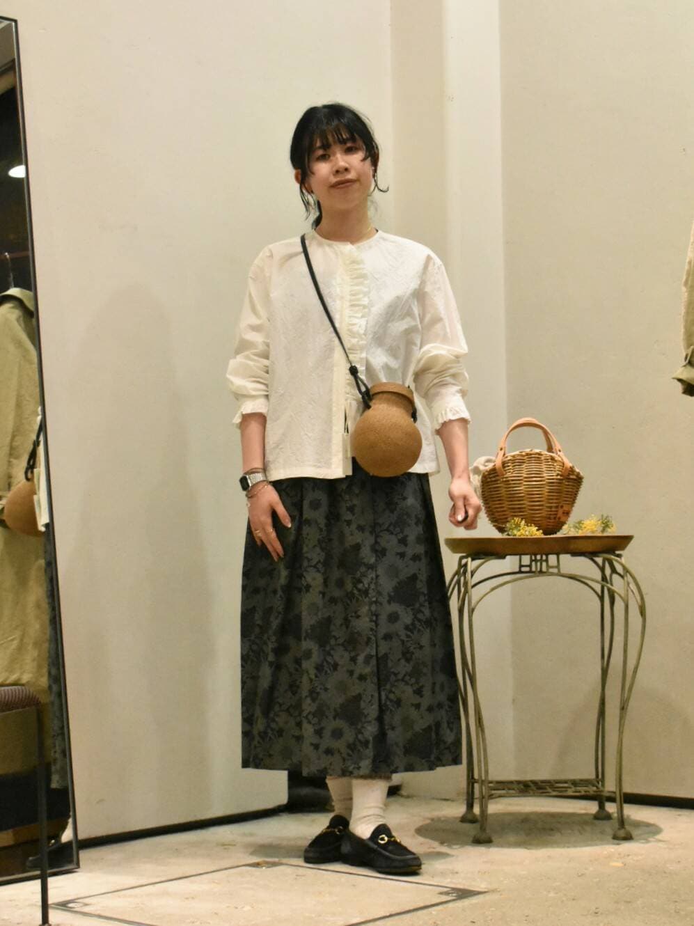 柄を使った春らしいモノトーンスタイルを組んでみました。