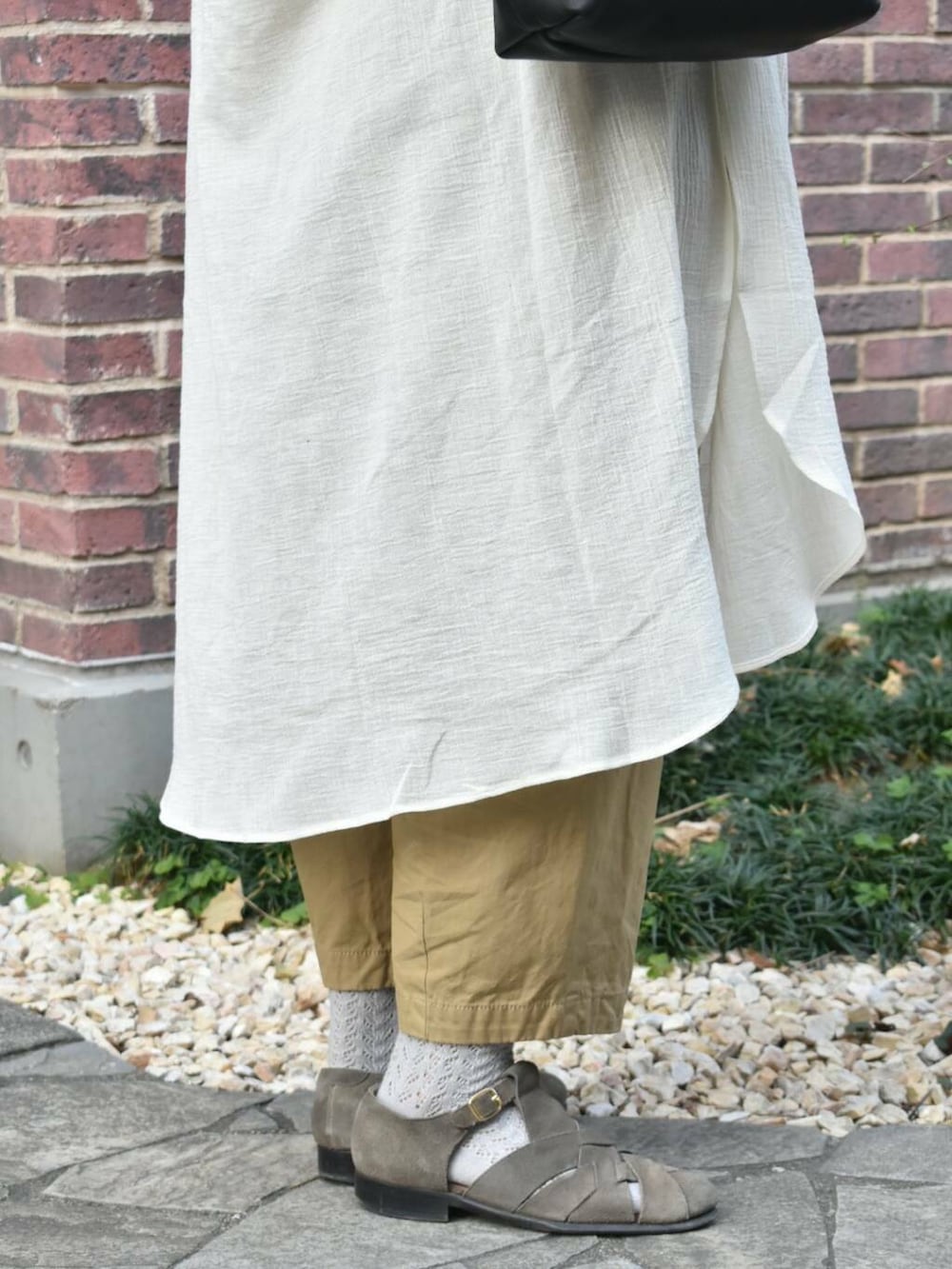 合わせたアイテムはかぐれでも定番のクロップドパンツ。