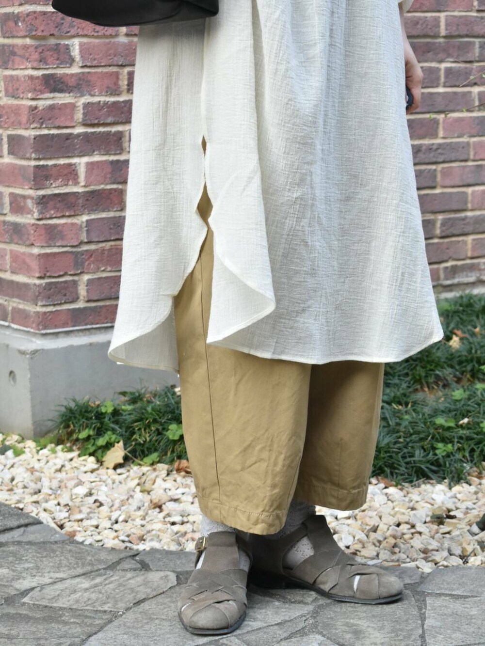 履いていて楽ちんなシルエットですが、裾がすぼまったデザインは華奢見え◎です。