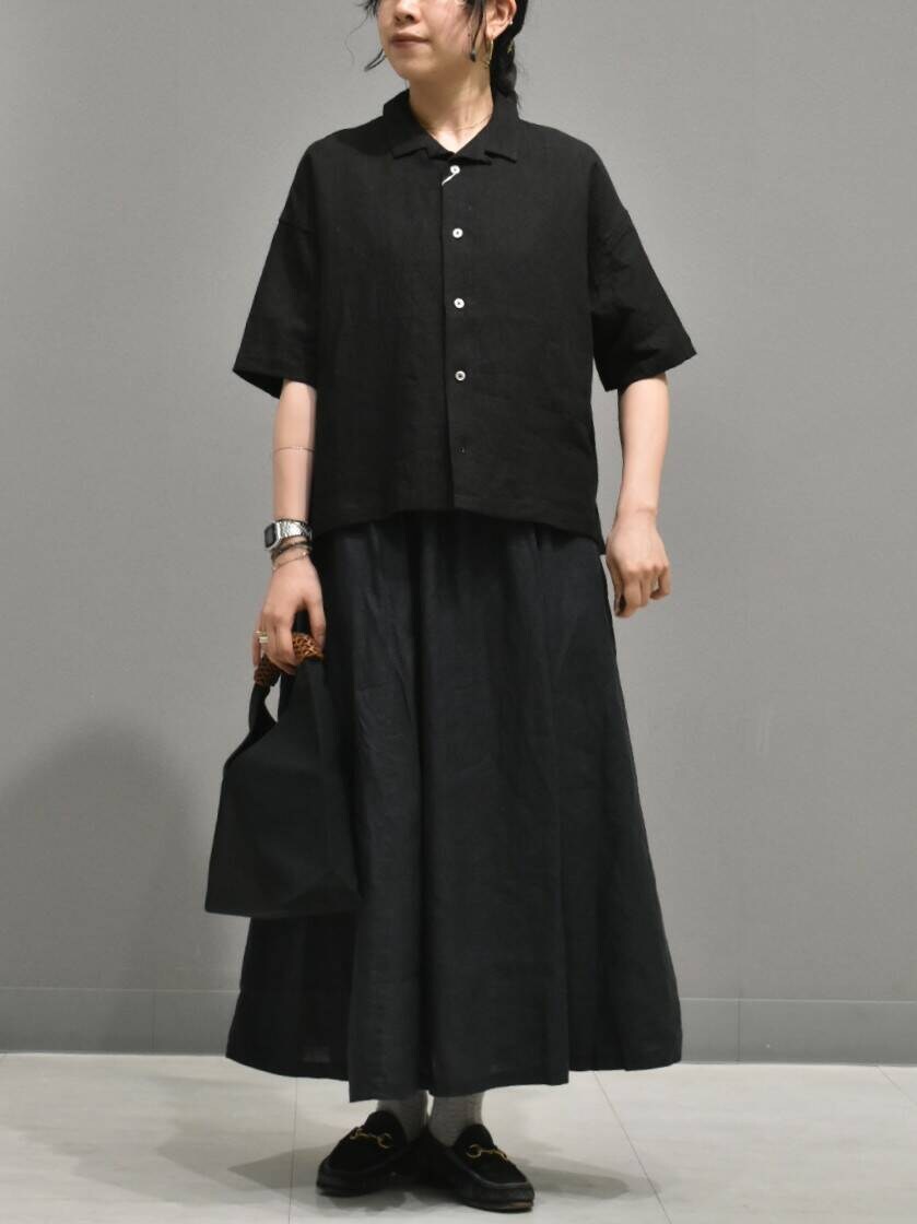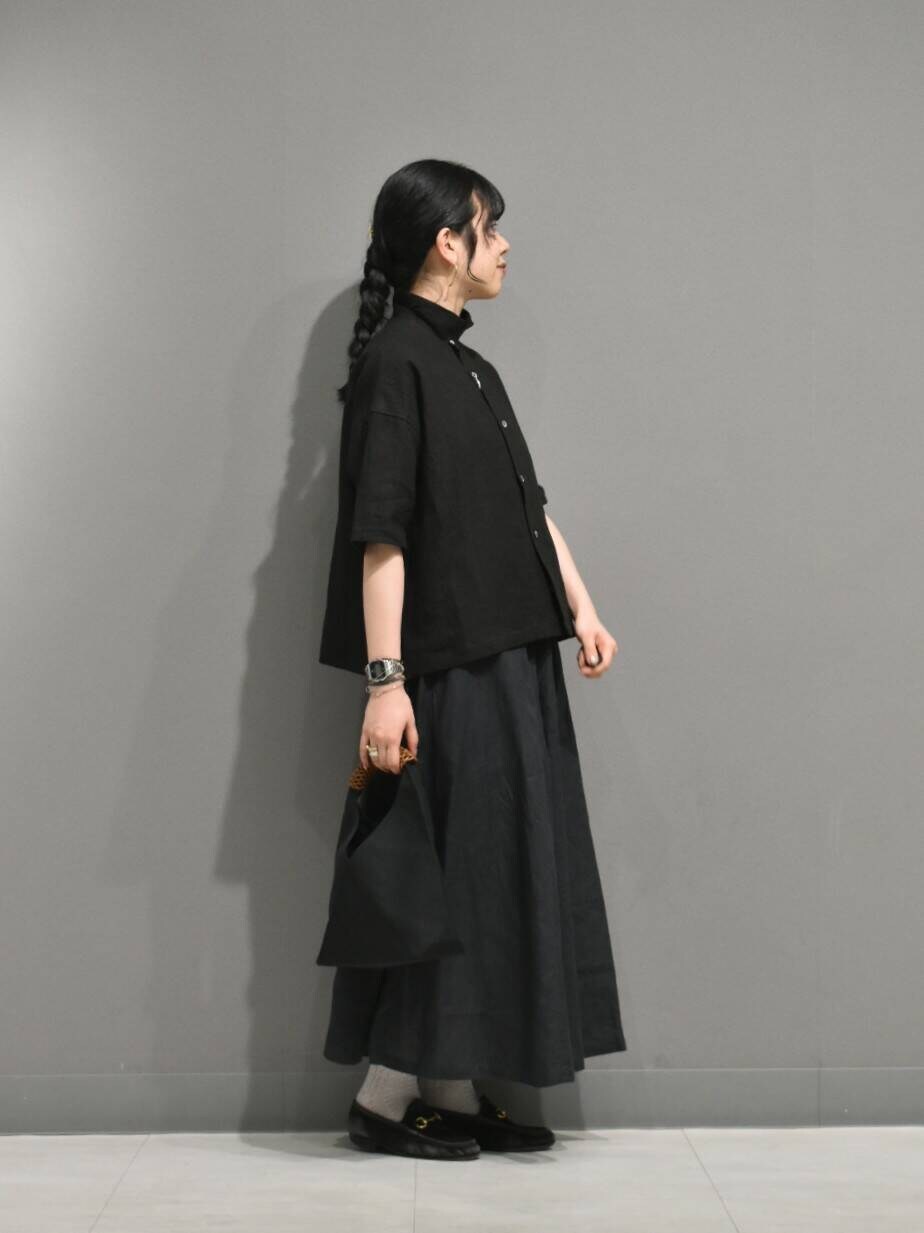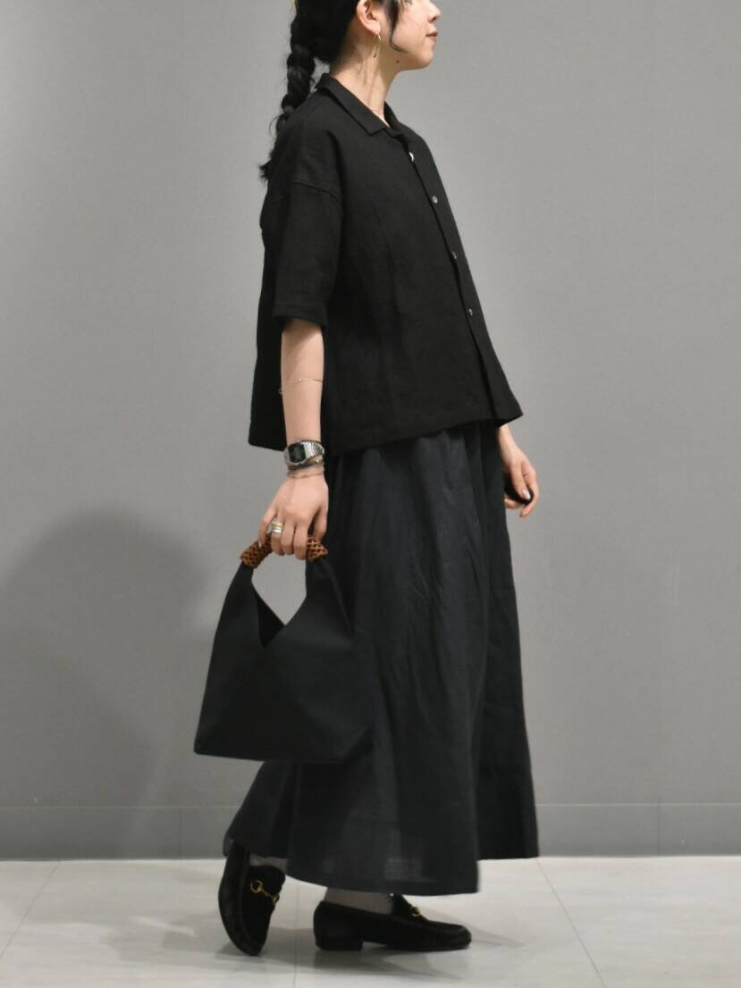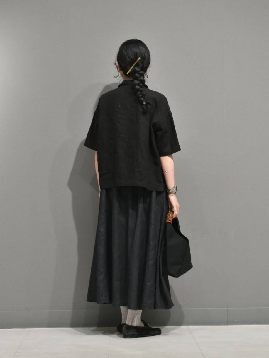 トップスはリネンラミー素材で、程よいハリ感とネップ感がとても素敵な雰囲気です。。