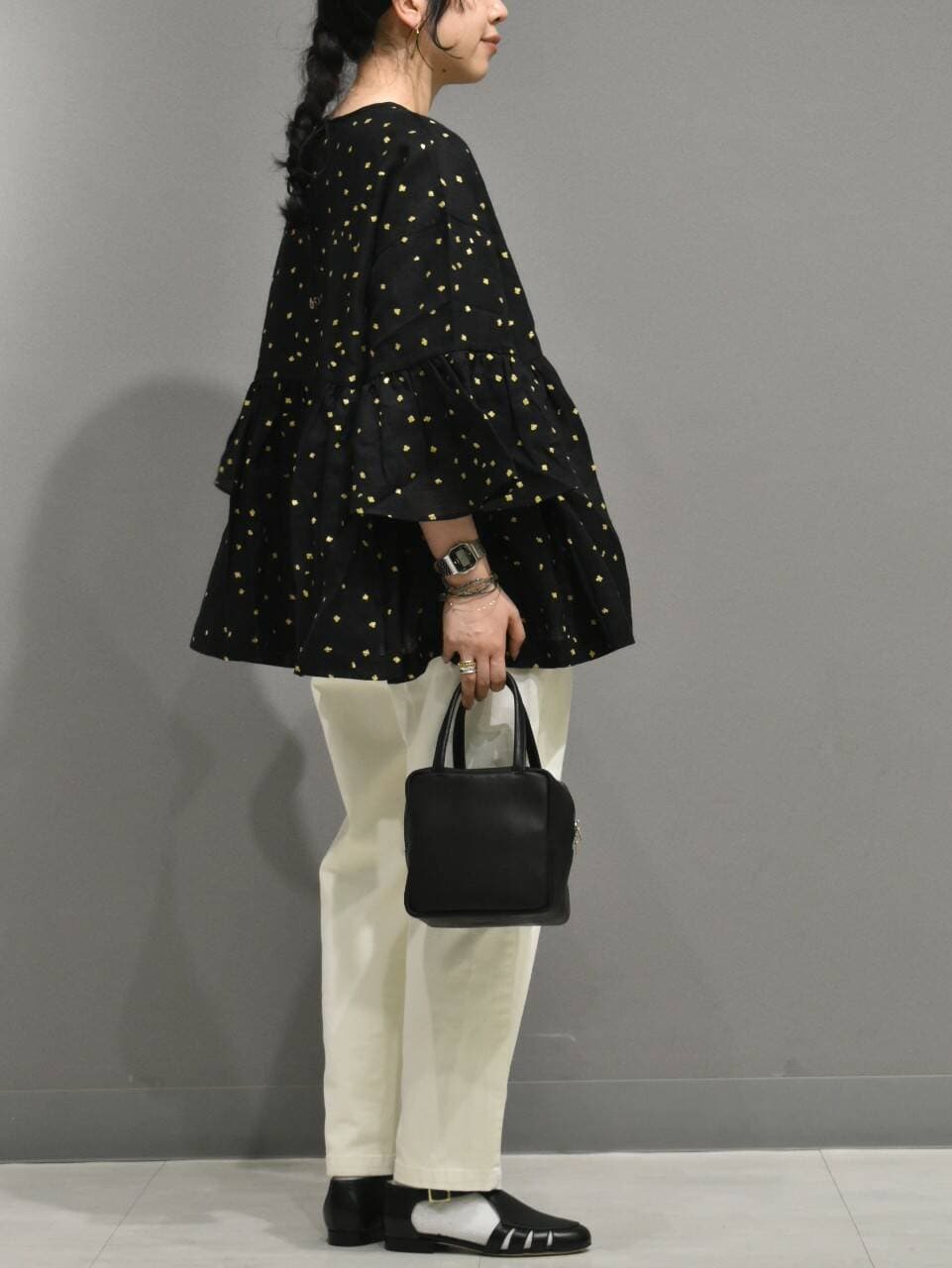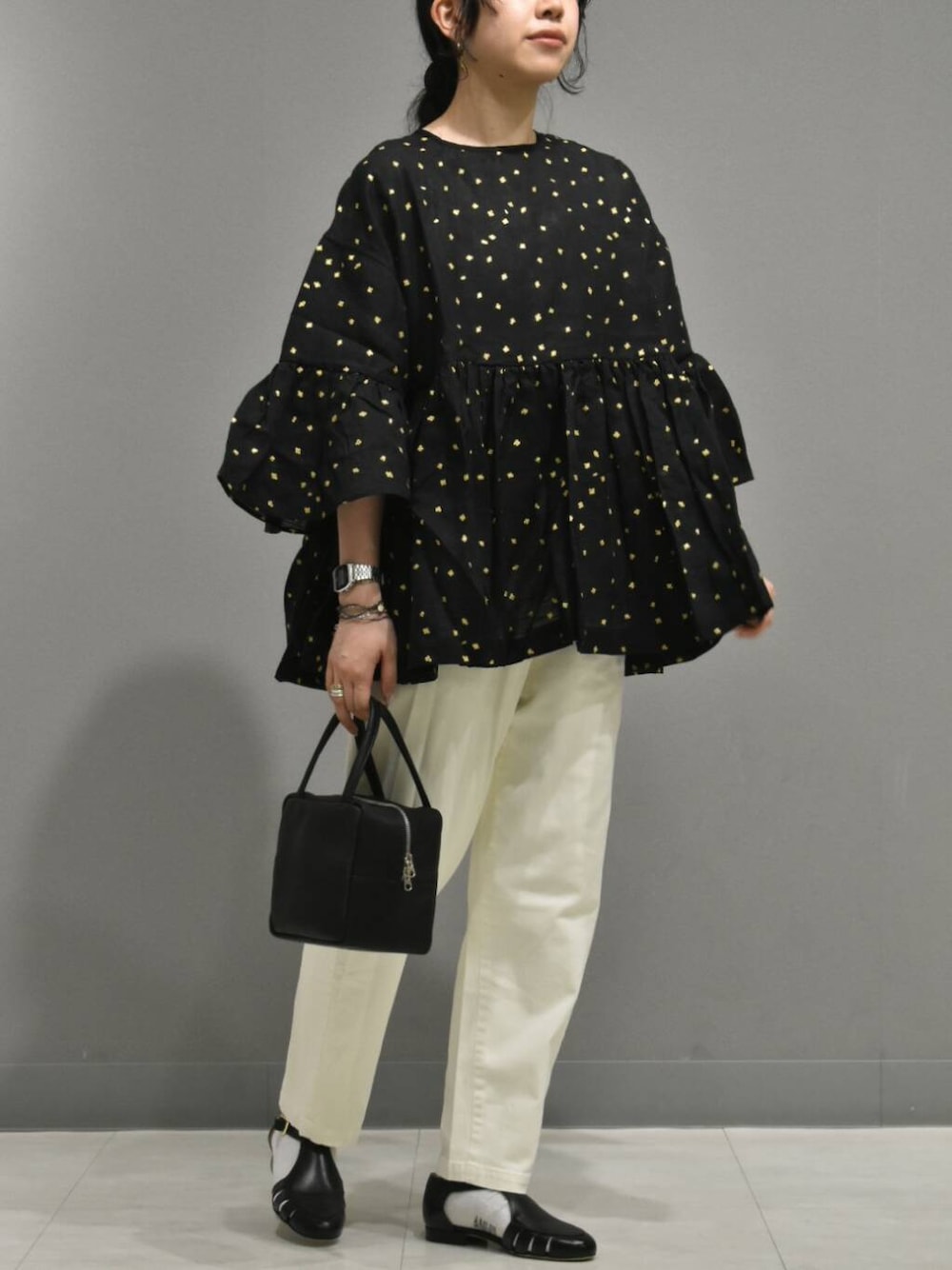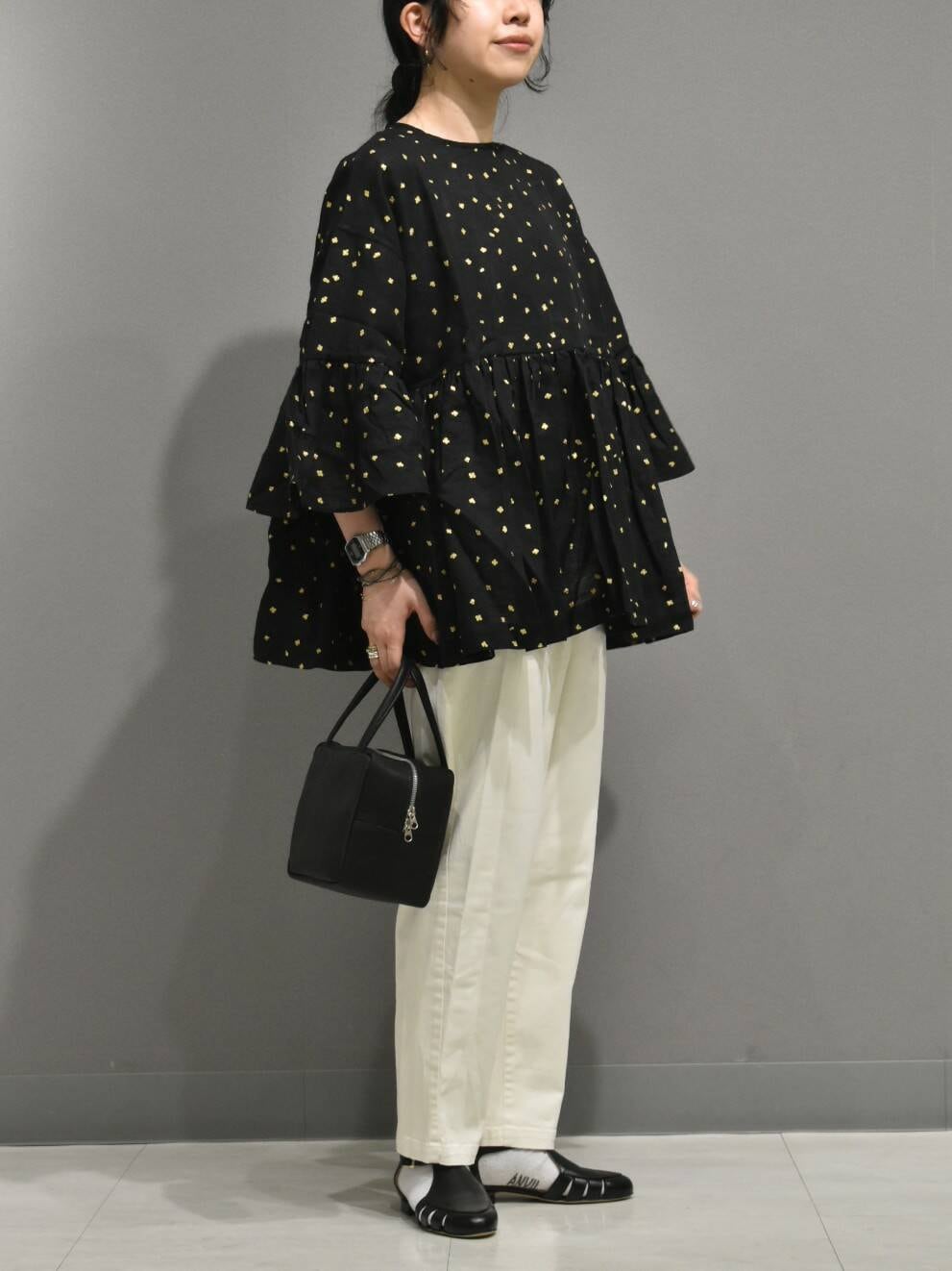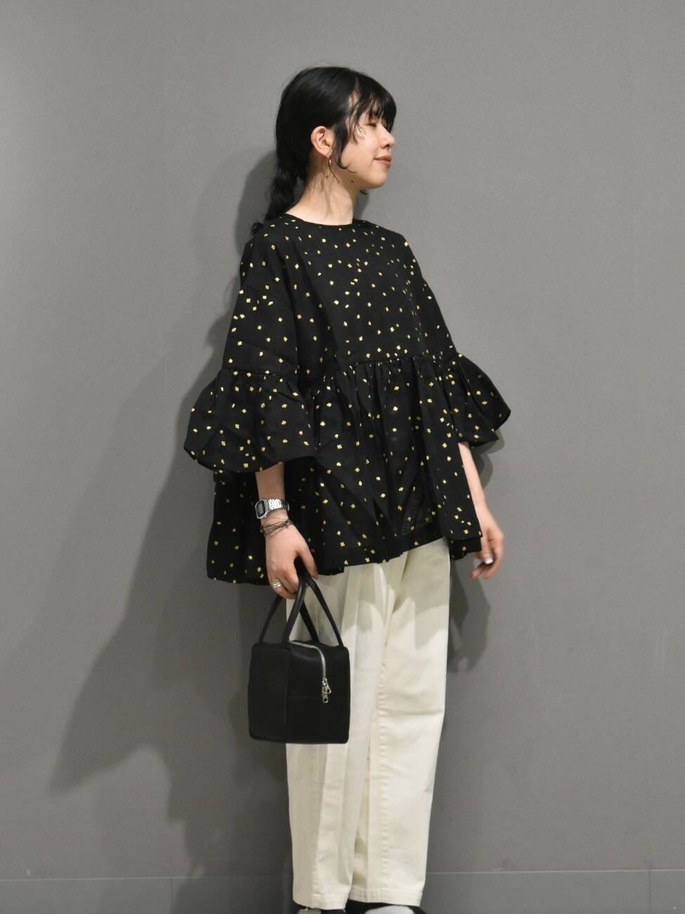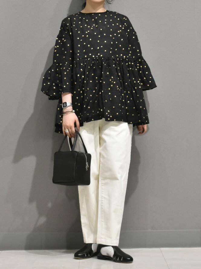 シンプルなパンツと合わせて、トップスを主役に持ってくる合わせがおすすめです^ ^
