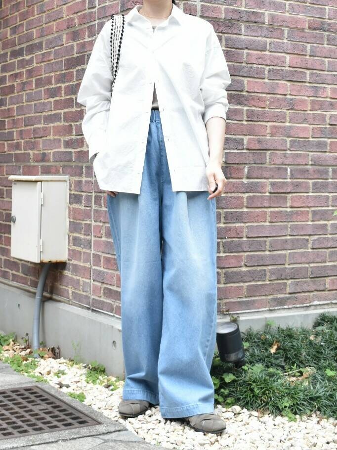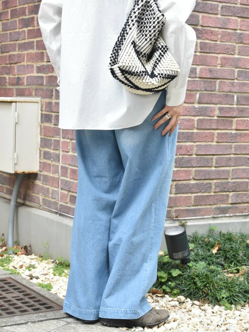 こちらのデニムは程よい厚みと柔らかさでとても履きやすく、ウエストがゴムなのも履きやすいポイントです^ ^