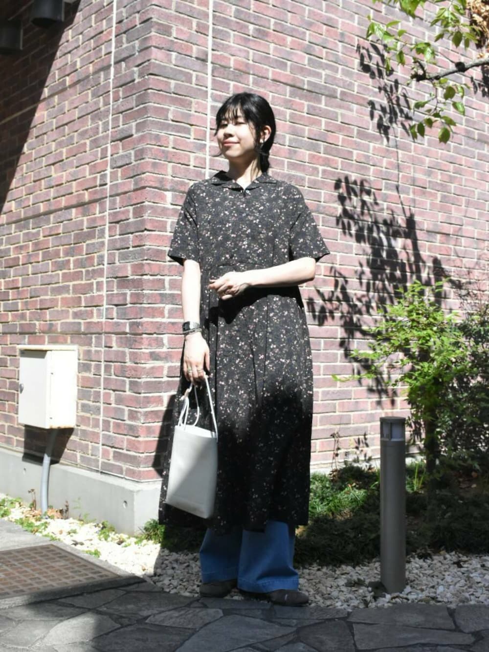 新作のワンピースが入荷したので、カジュアルなスタイリングを組んでみました。