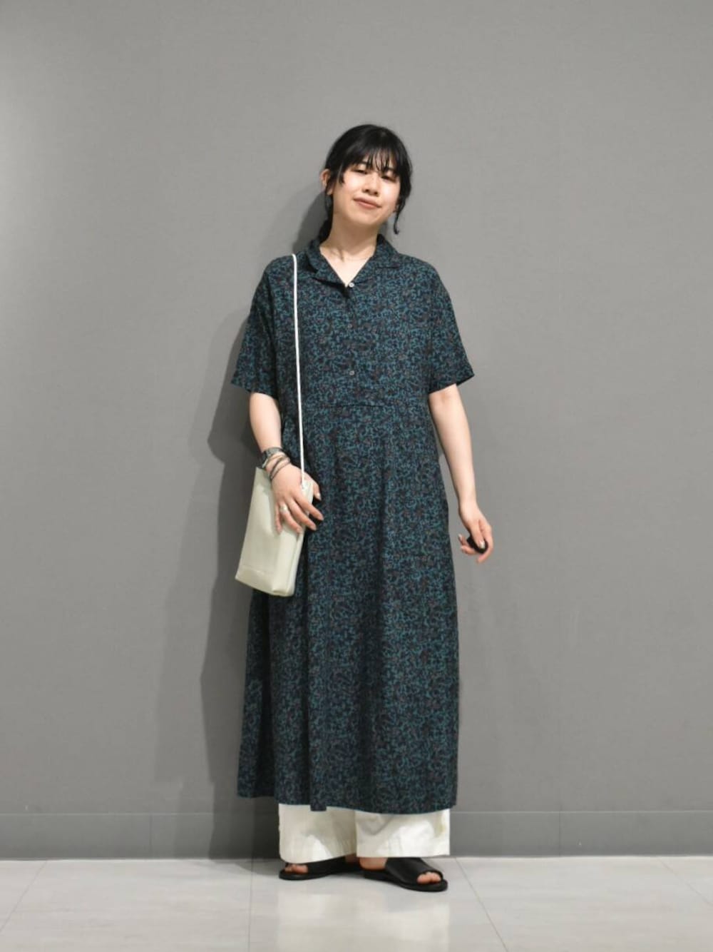 お店でも好評の小花柄プリントワンピースで爽やかなスタイリングを組んでみました。