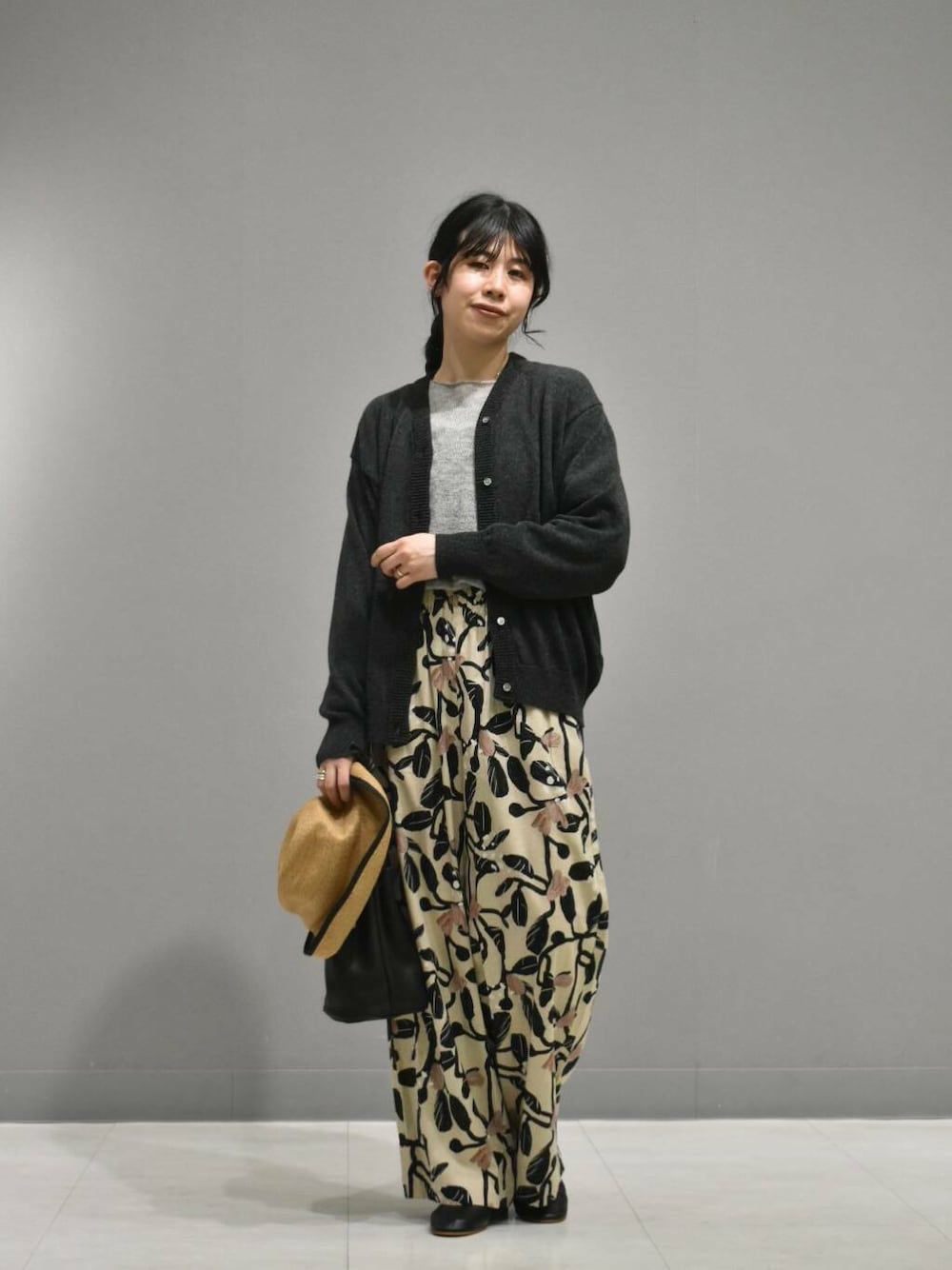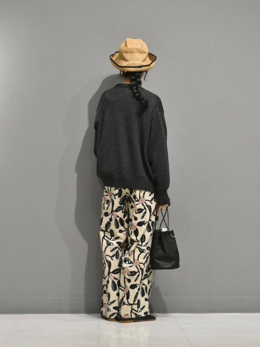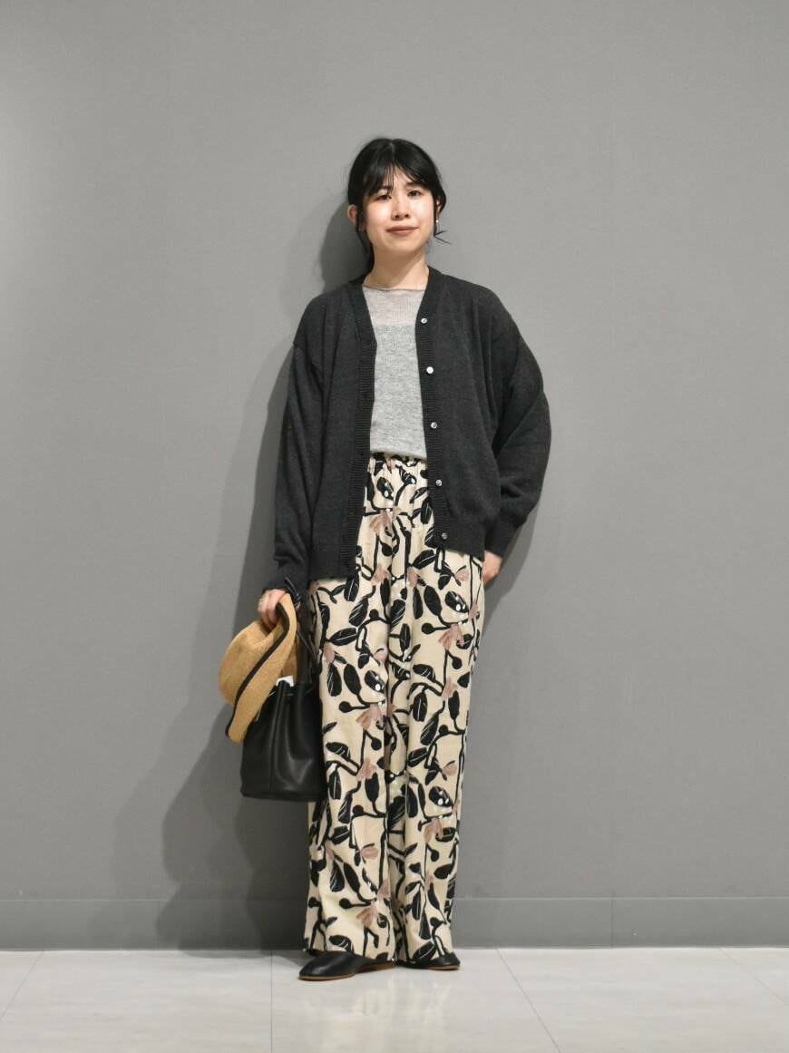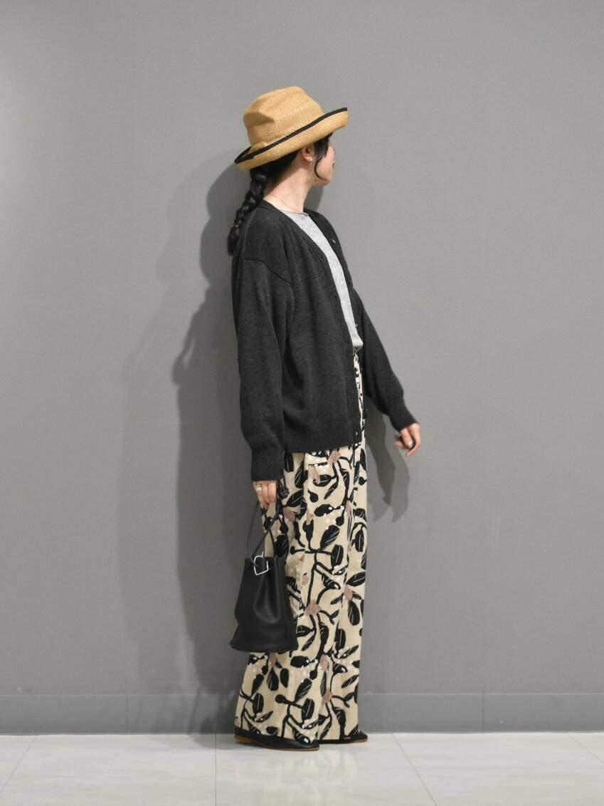 新作のコットンリネンプリントイージーパンツがお店に入荷したので、さっそくスタイリングを組んでみました。