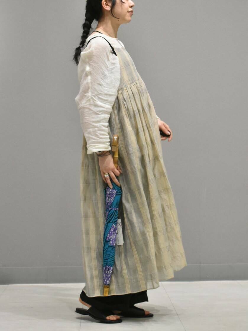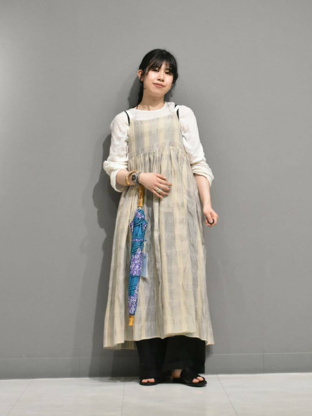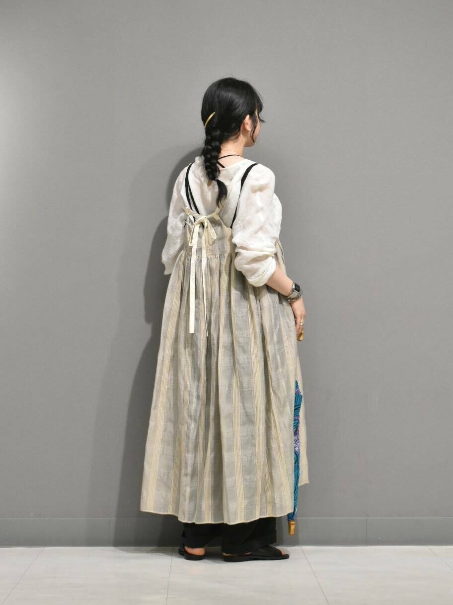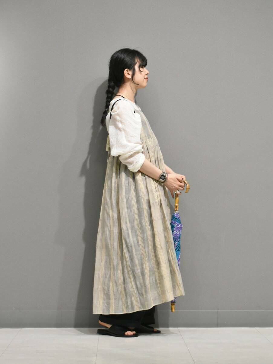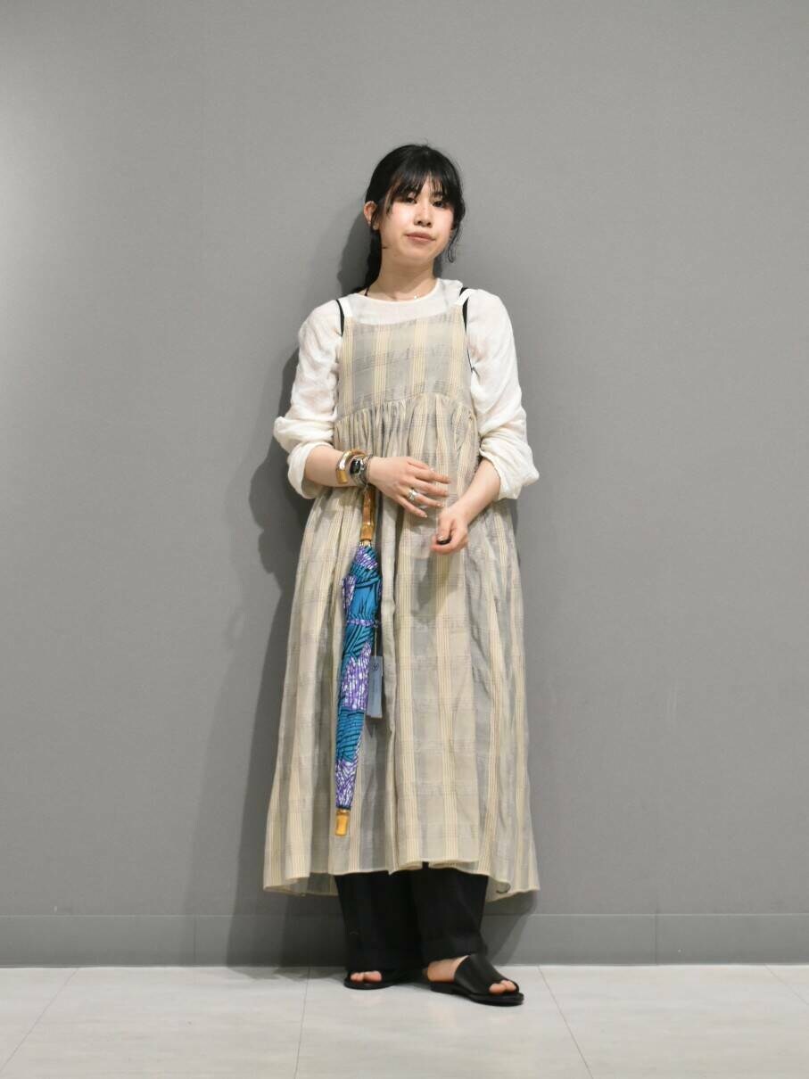 リネンも入っているのでハリ感があり、体のラインを拾いにくい素材感でした◎