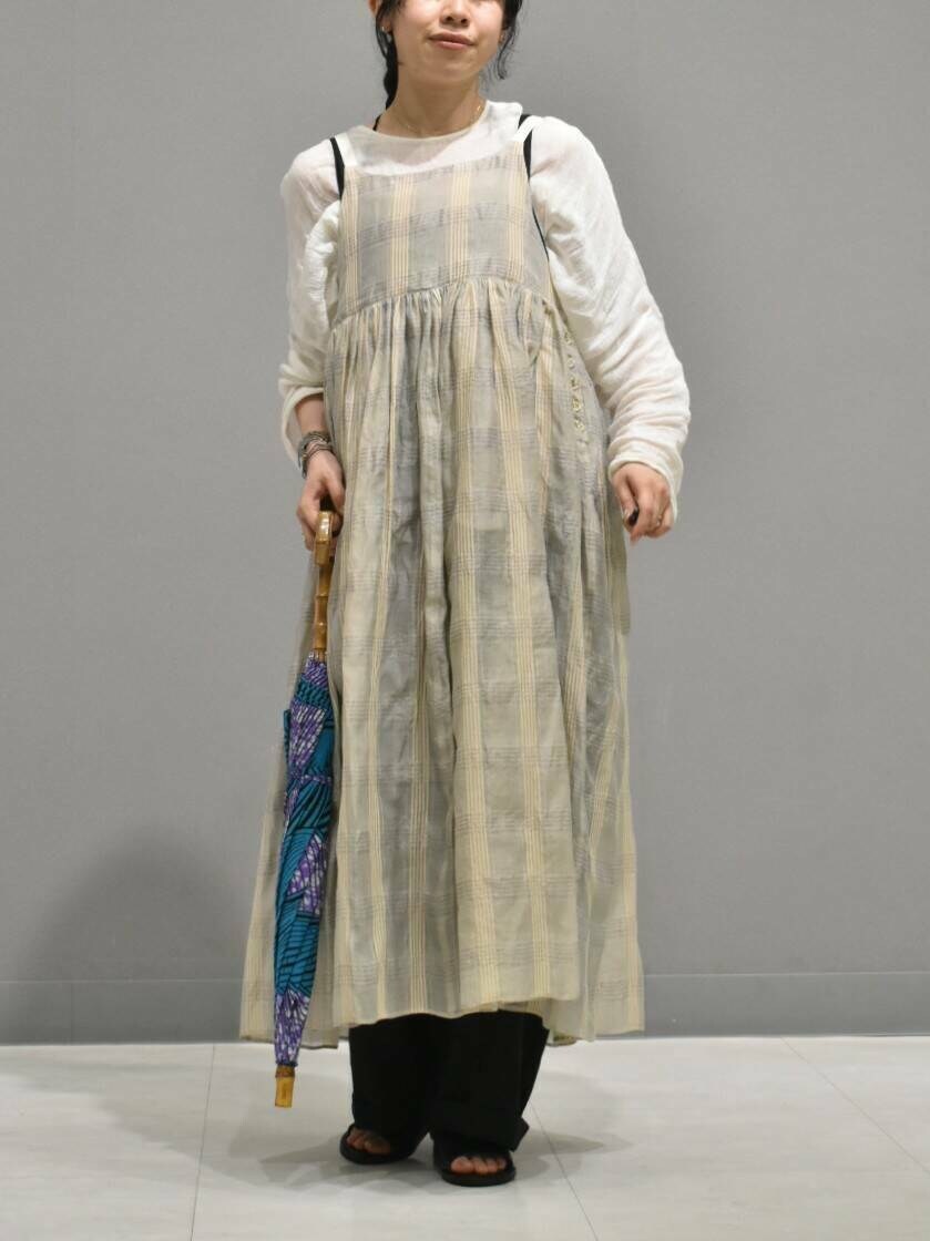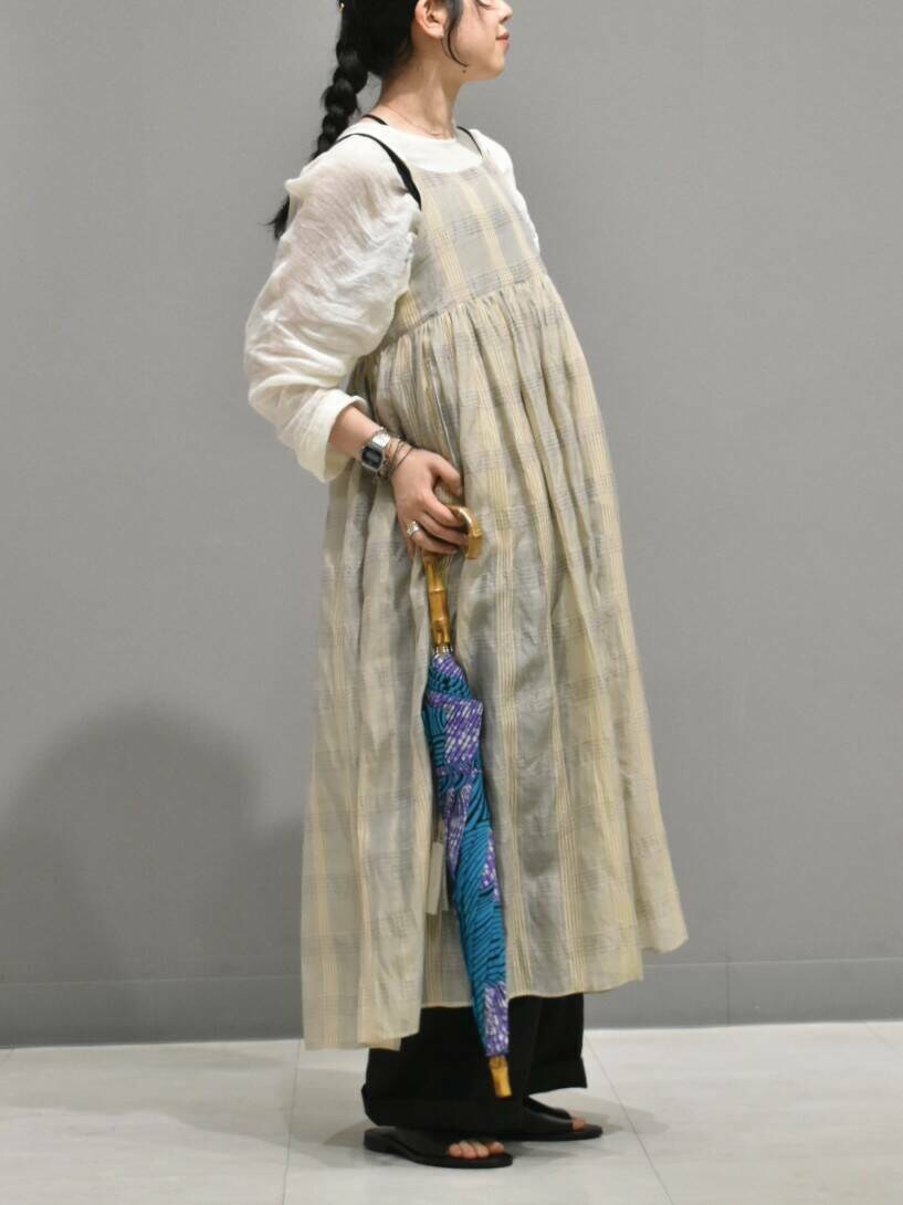 透け感のあるチェック素材は、特別感があり1枚で気分高まるスタイルに。