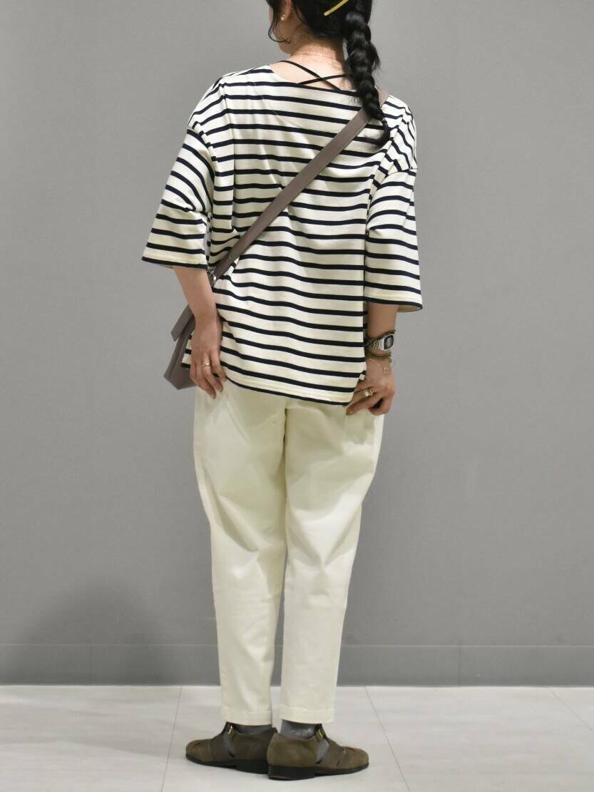 コットンストレッチイージーパンツはかぐれで定番の美シルエットのアイテム。