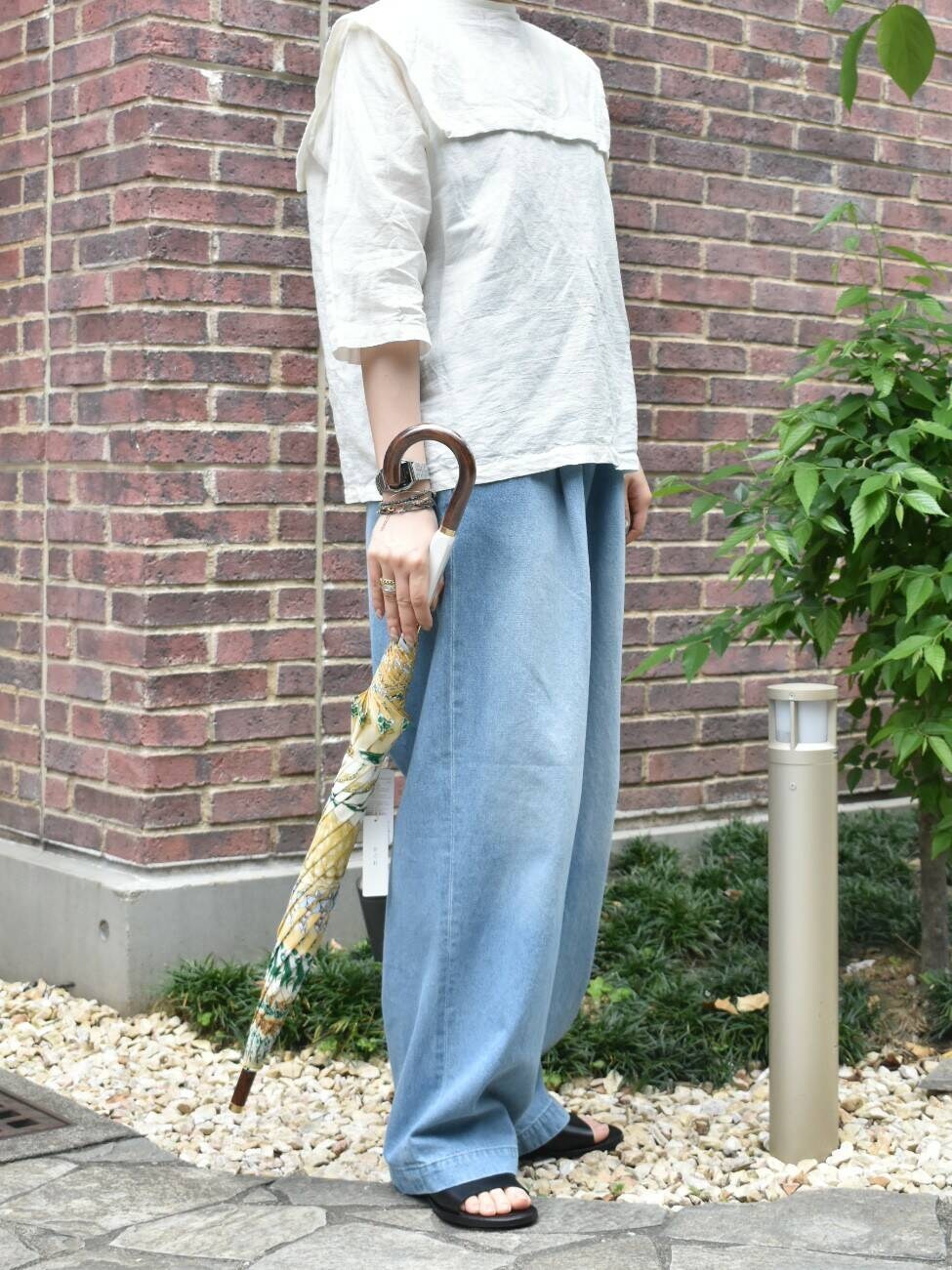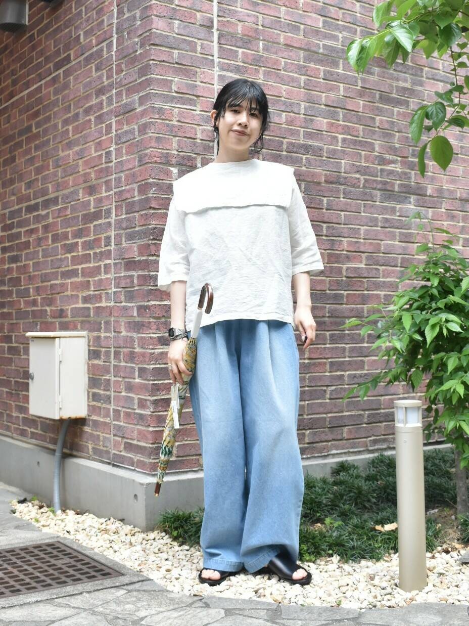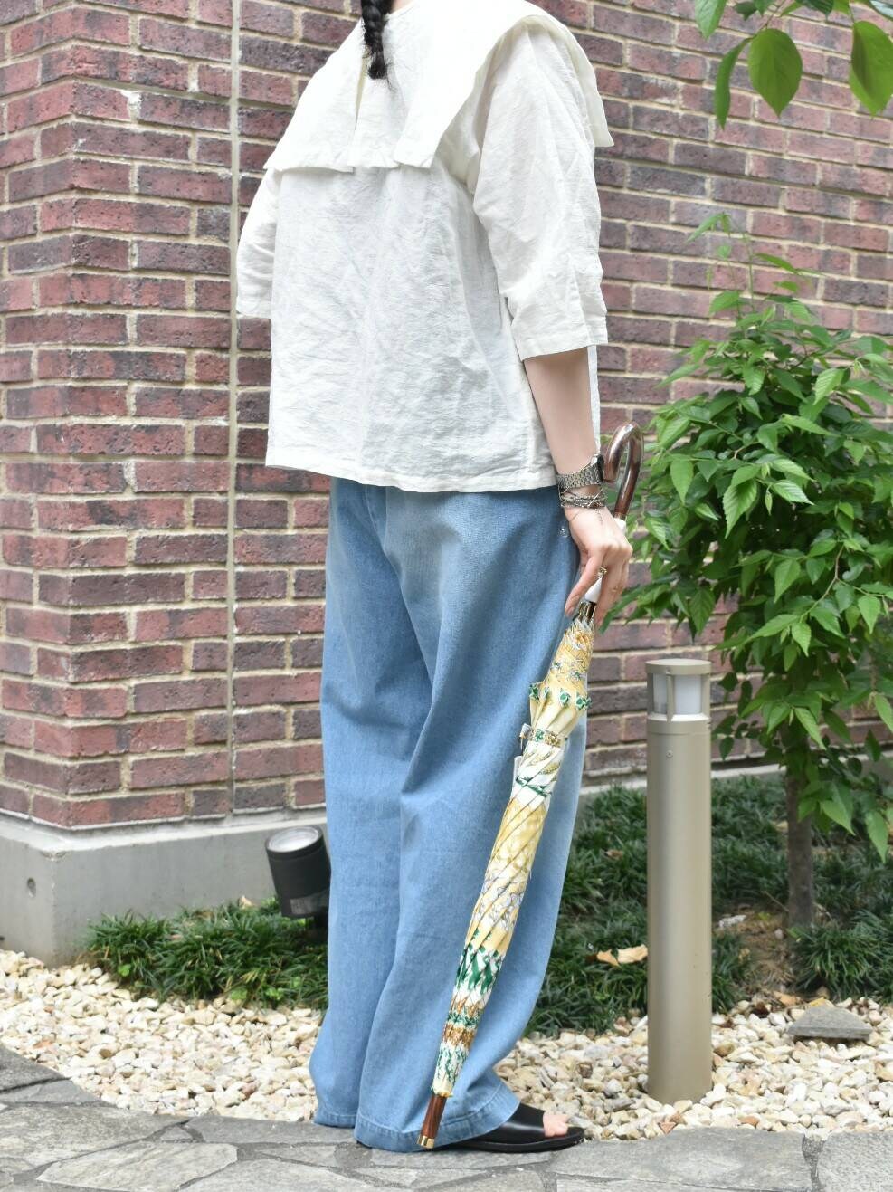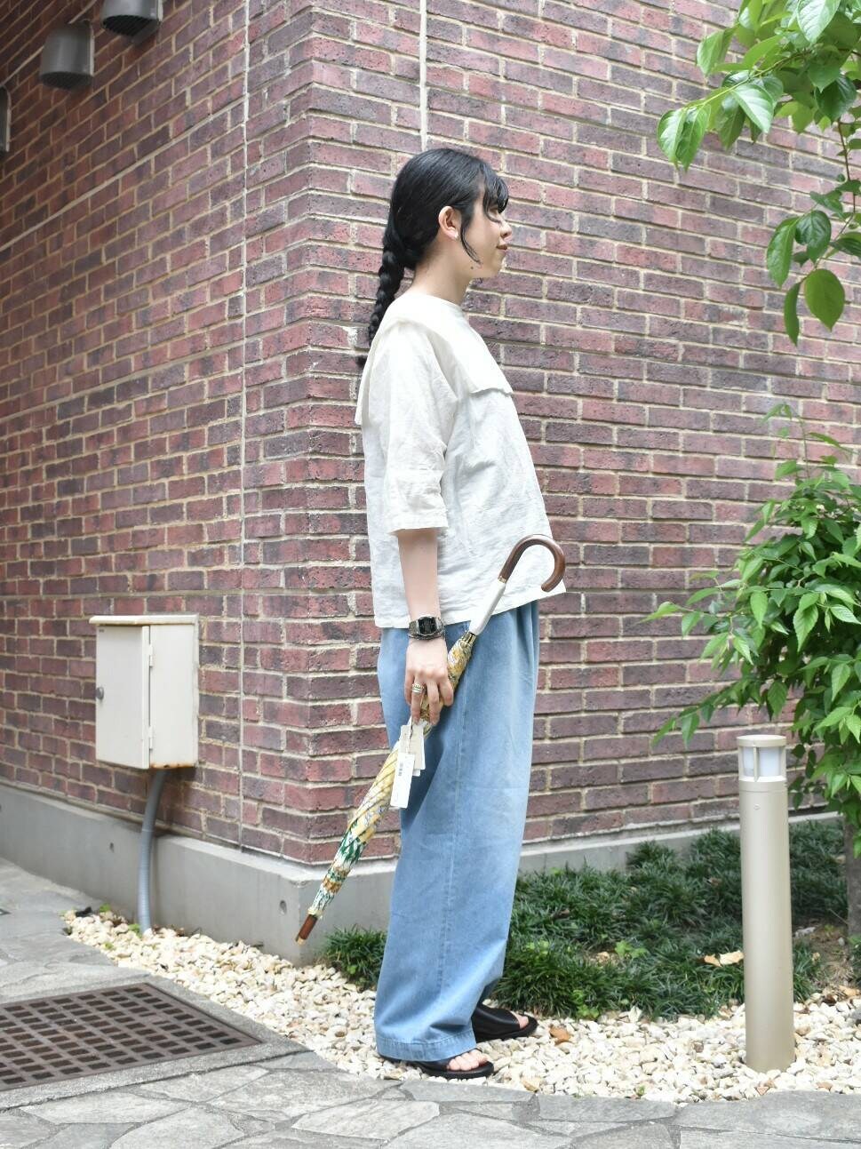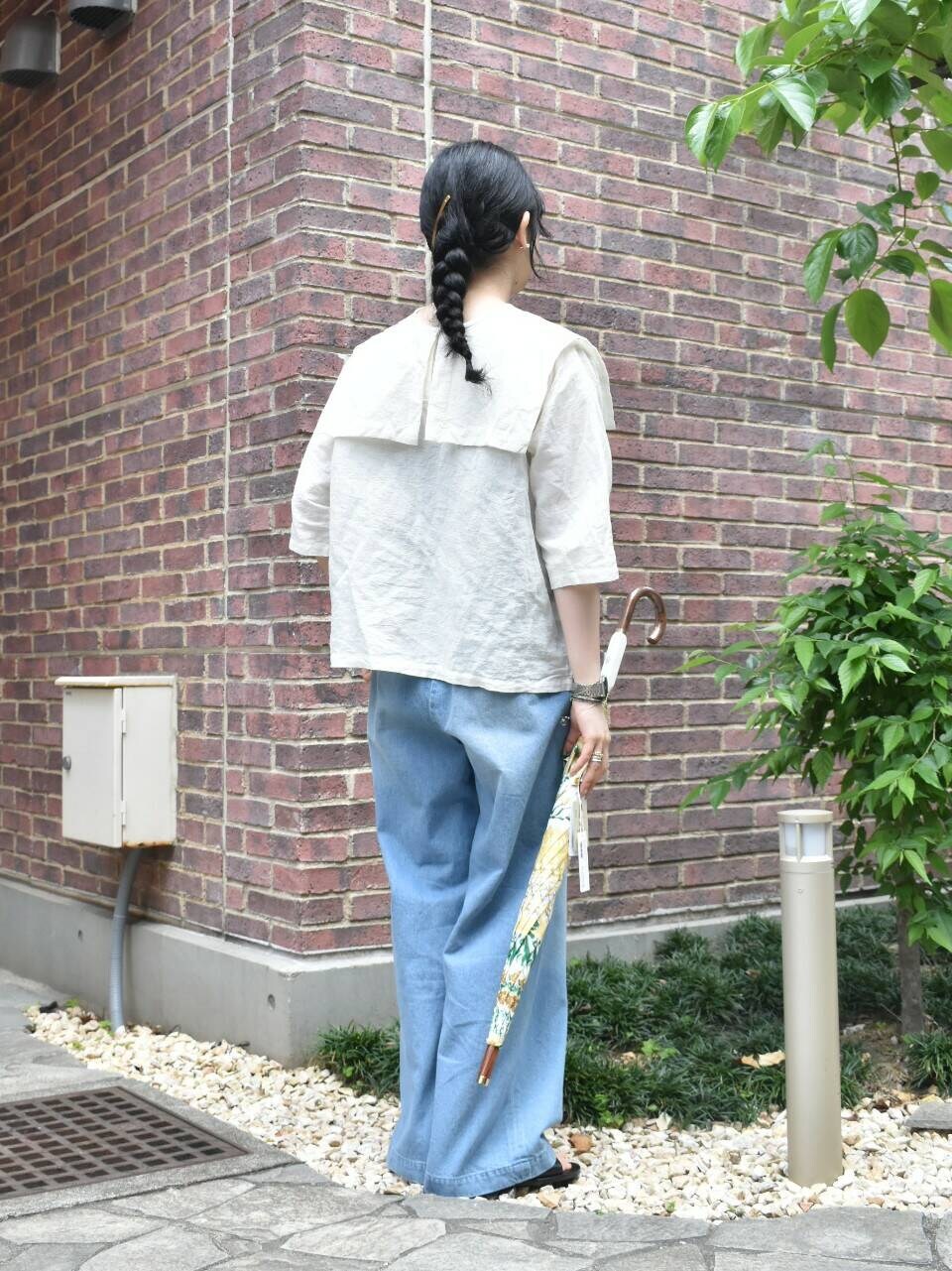 新作のブラウスで大人カジュアルなスタイリングを組んでみました。