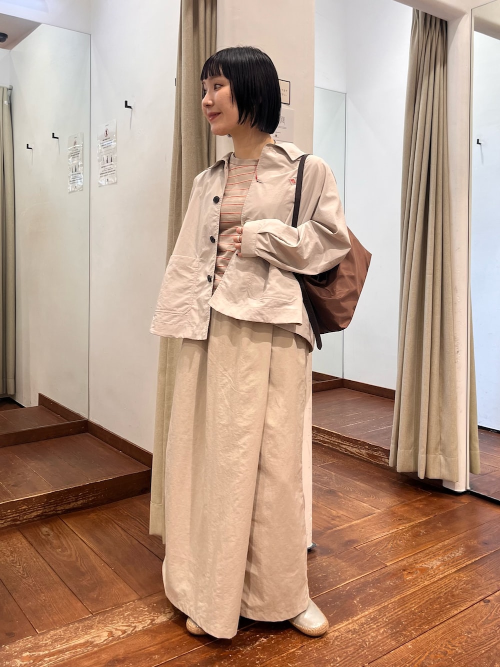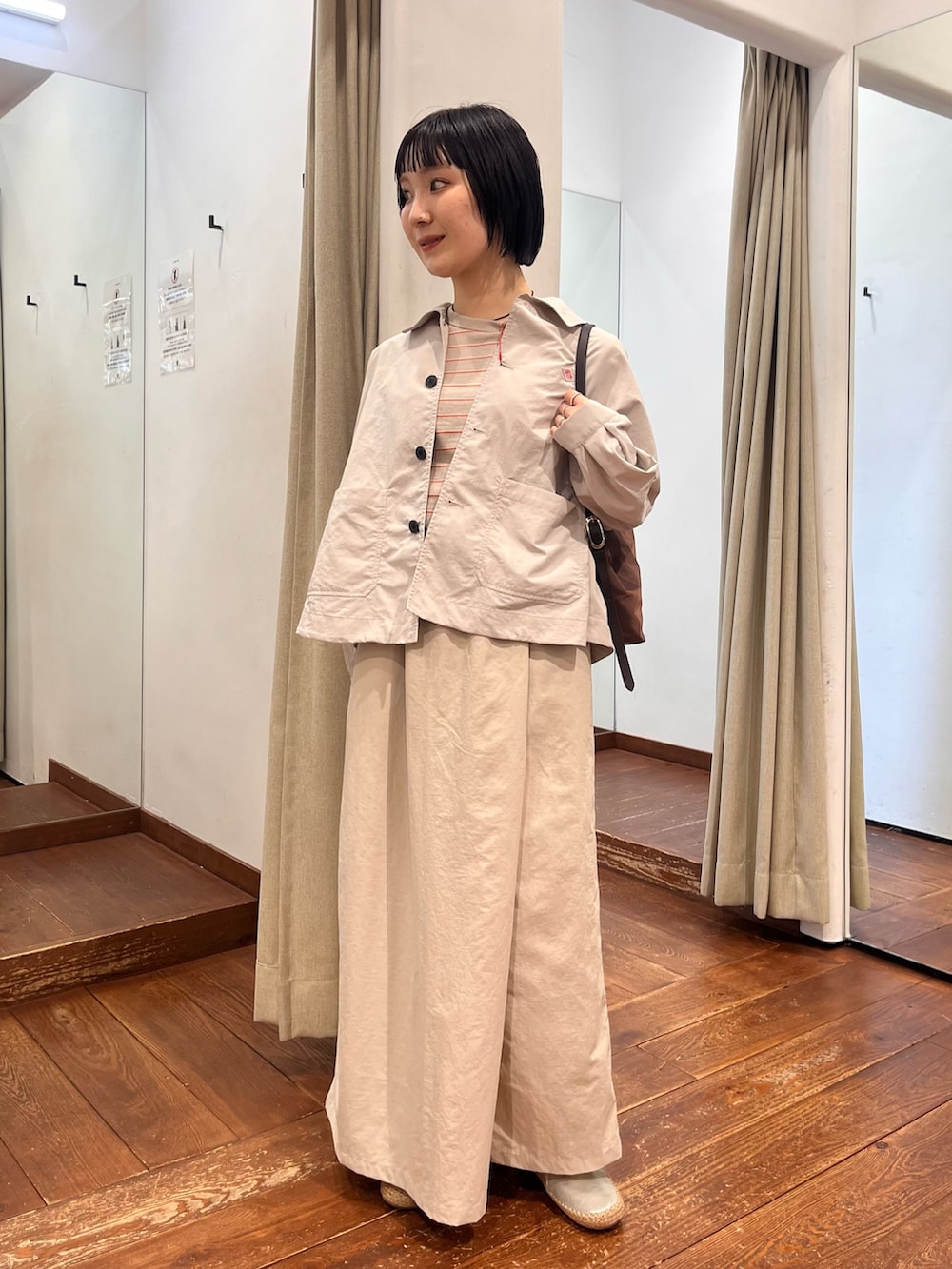 背中はギャザーが寄っていてワークらしさもありつつ女性らしいシルエットが叶います。