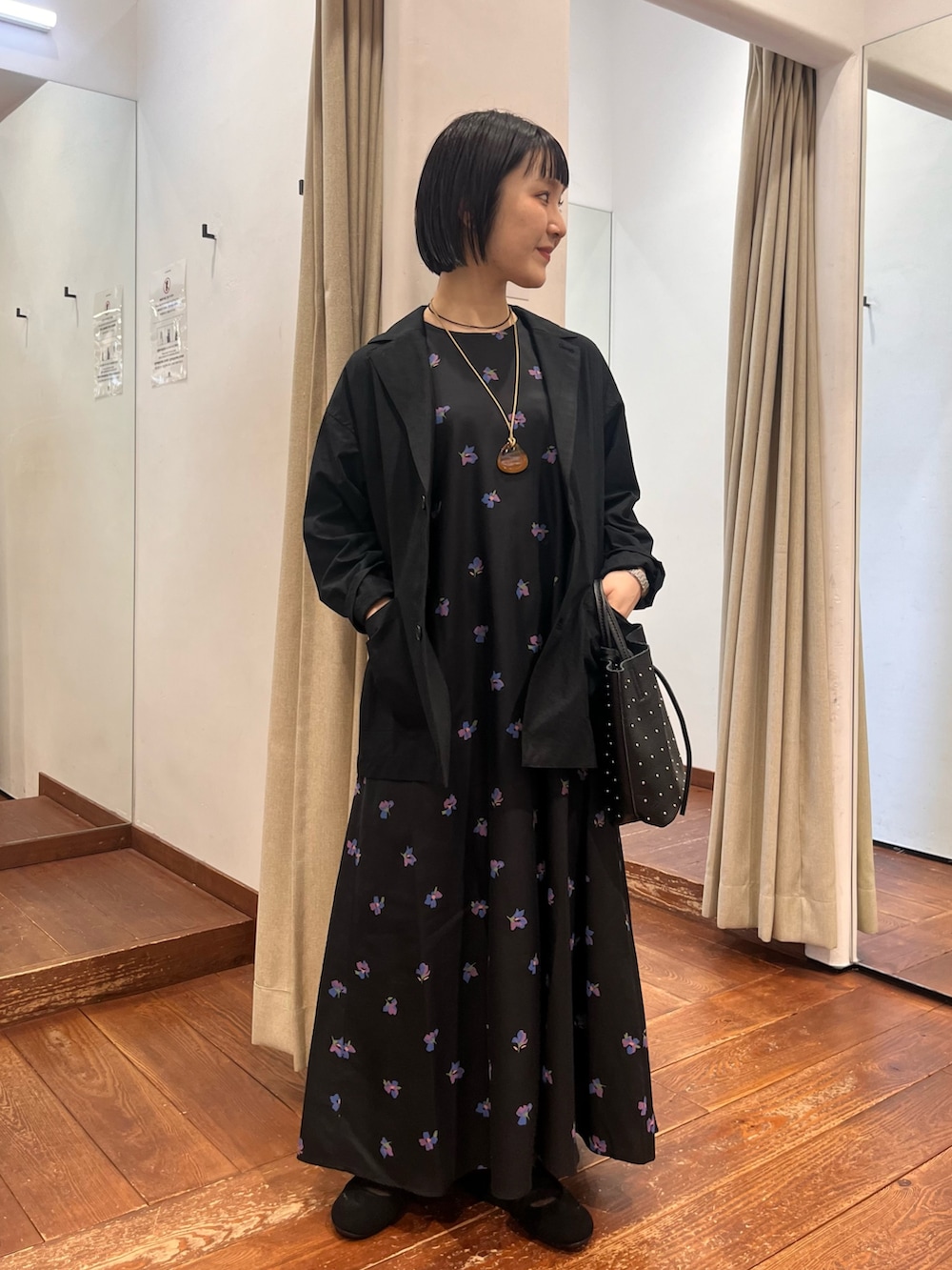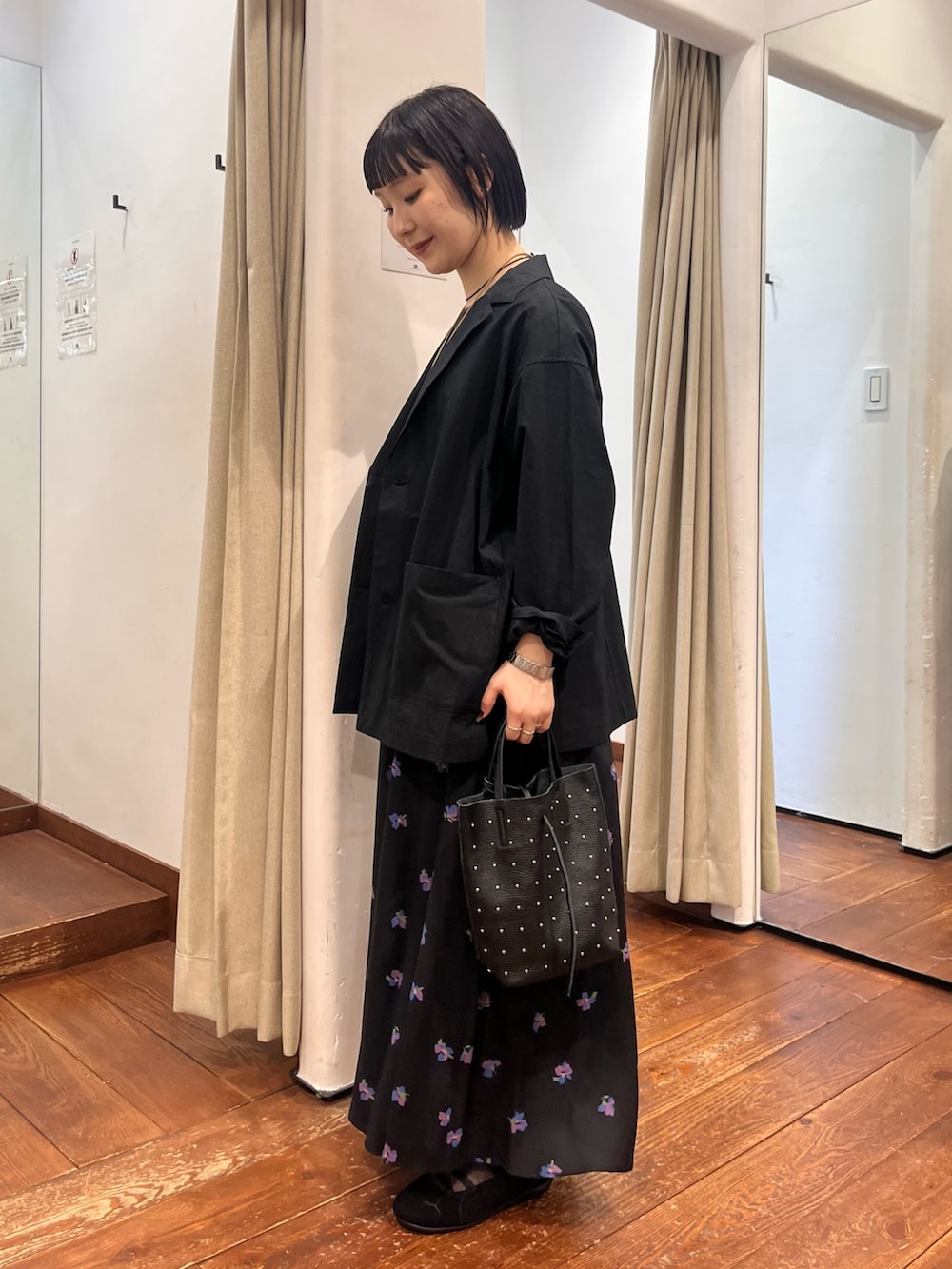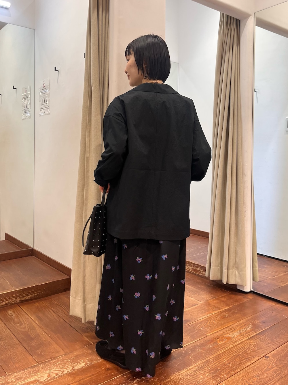 程よいオーバーすぎないサイジングもバッチリで、女性らしさとクールさを兼ね揃えた素敵な1着です。