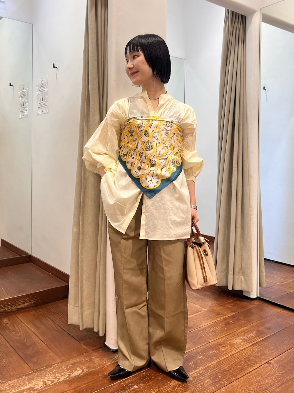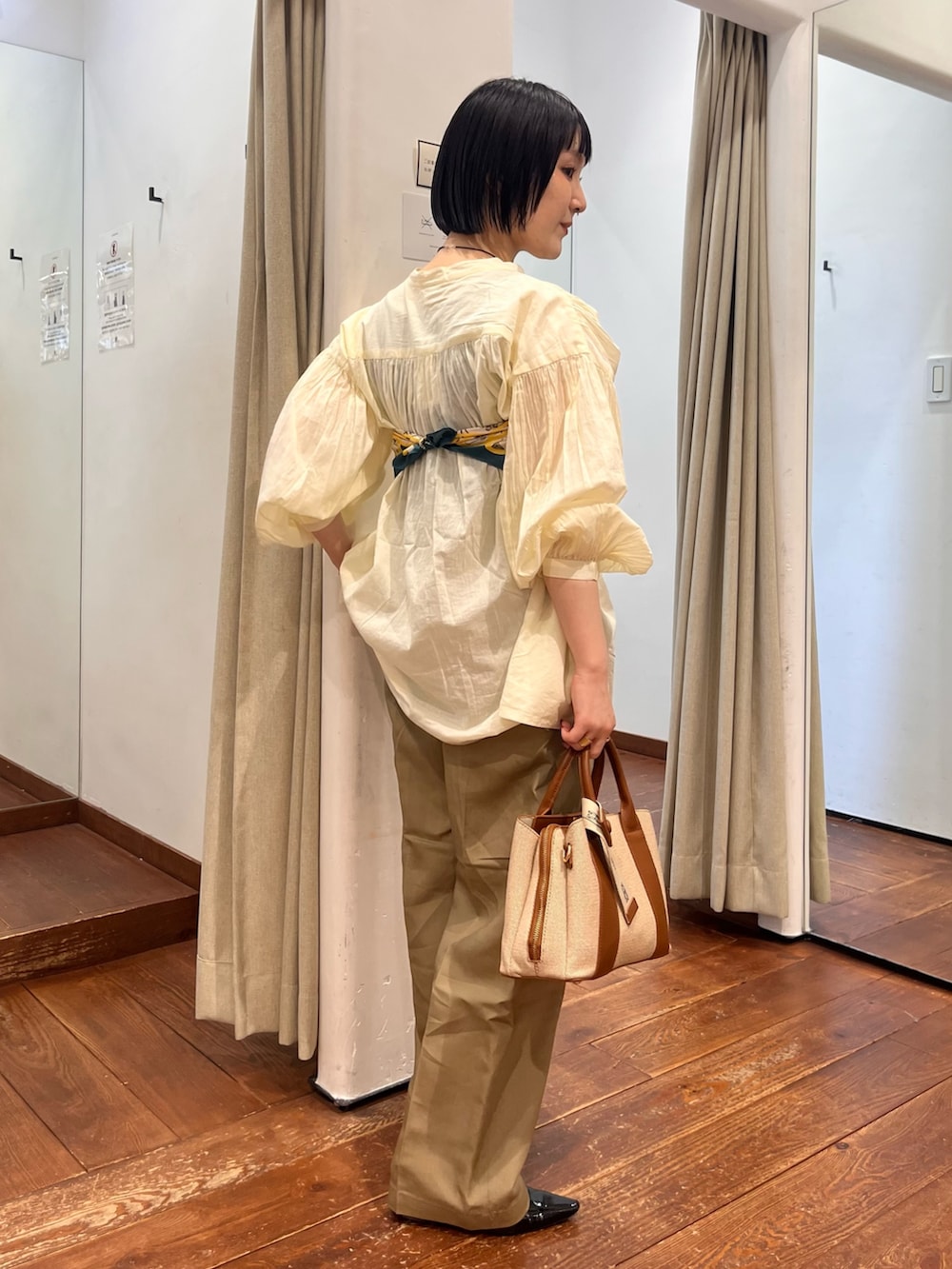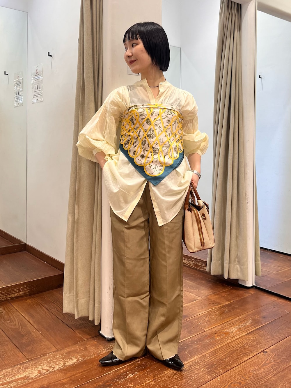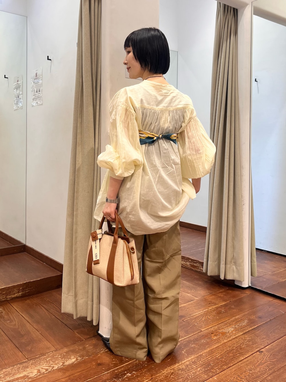 爽やかで涼しげなイエローが可愛らしいです🍋隠ボタンになり、フロントはシンプルですがお袖にたっぷりボリュームををもたせ程よいバランスで着用いただけます。
