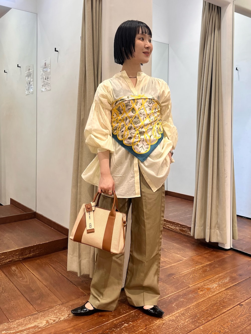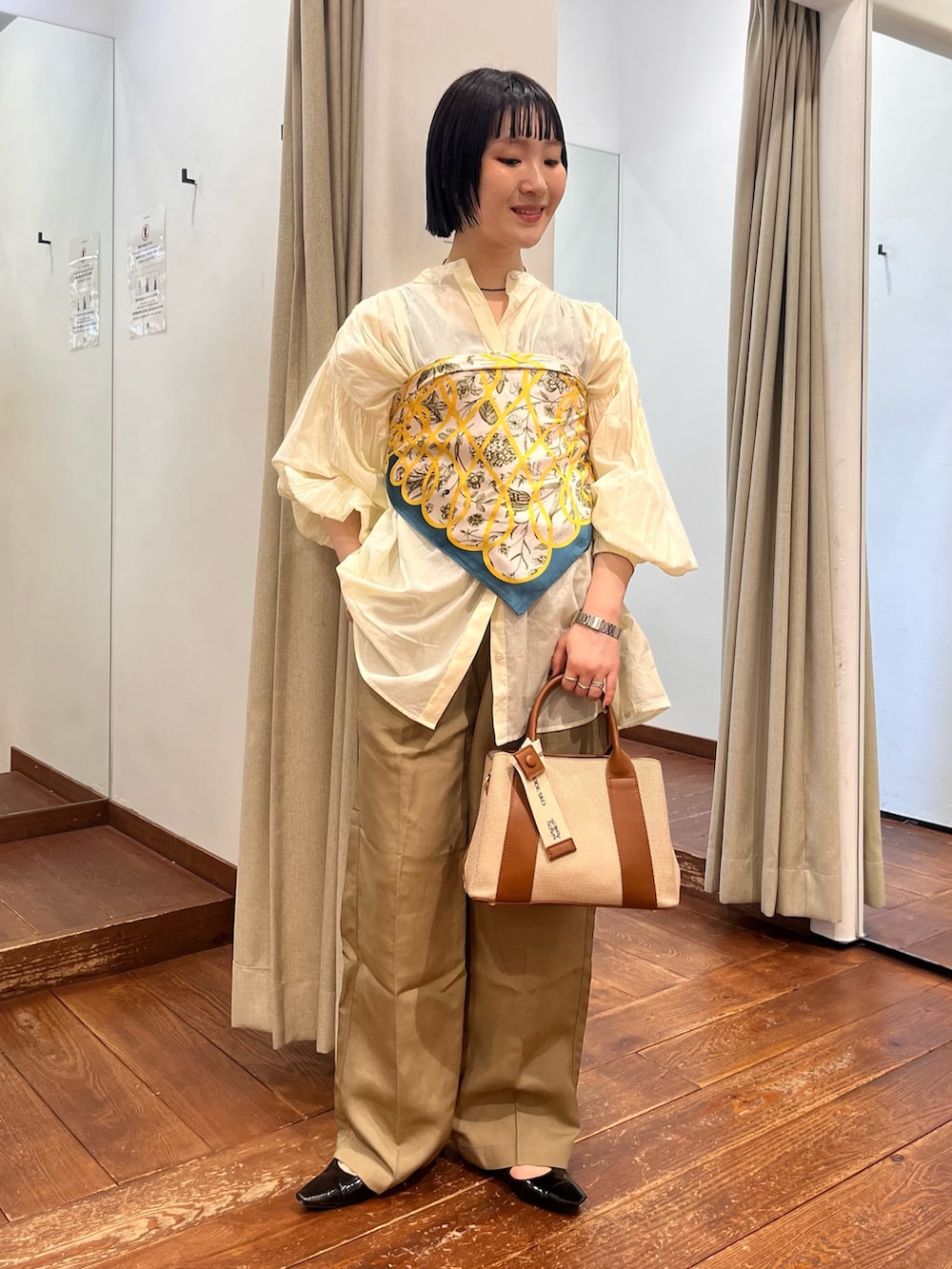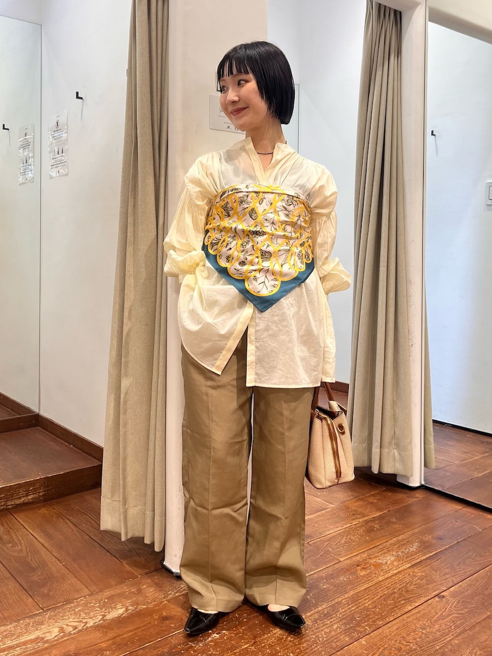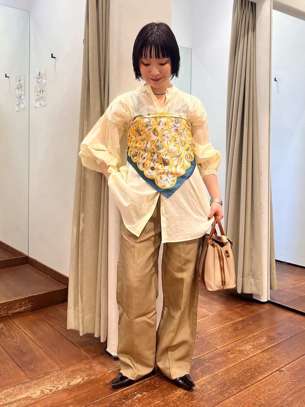 爽やかで涼しげなイエローが可愛らしいです🍋隠ボタンになり、フロントはシンプルですがお袖にたっぷりボリュームををもたせ程よいバランスで着用いただけます。
