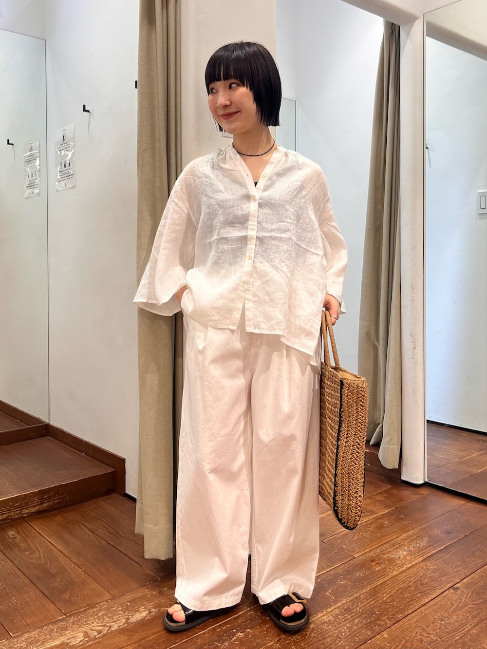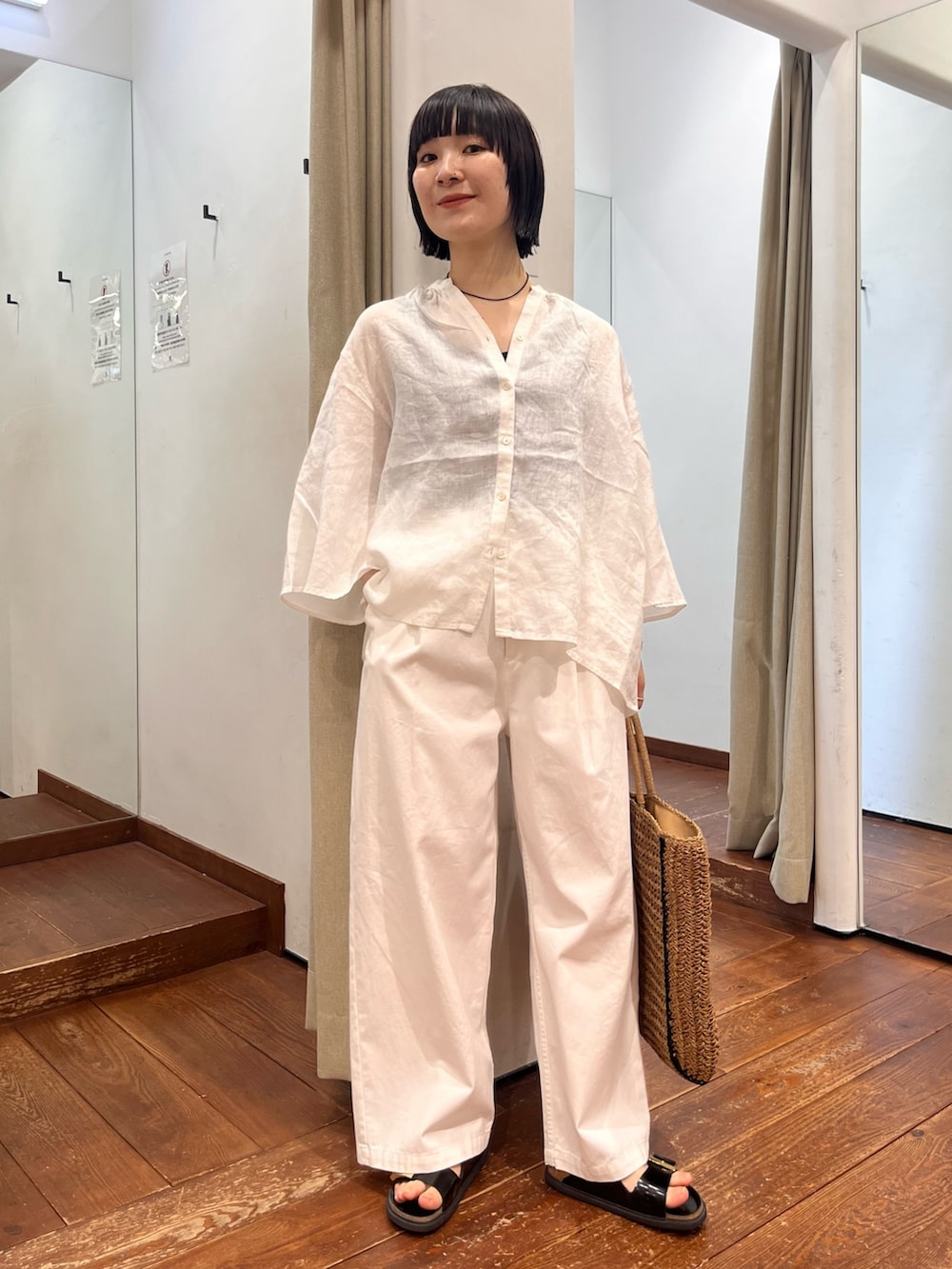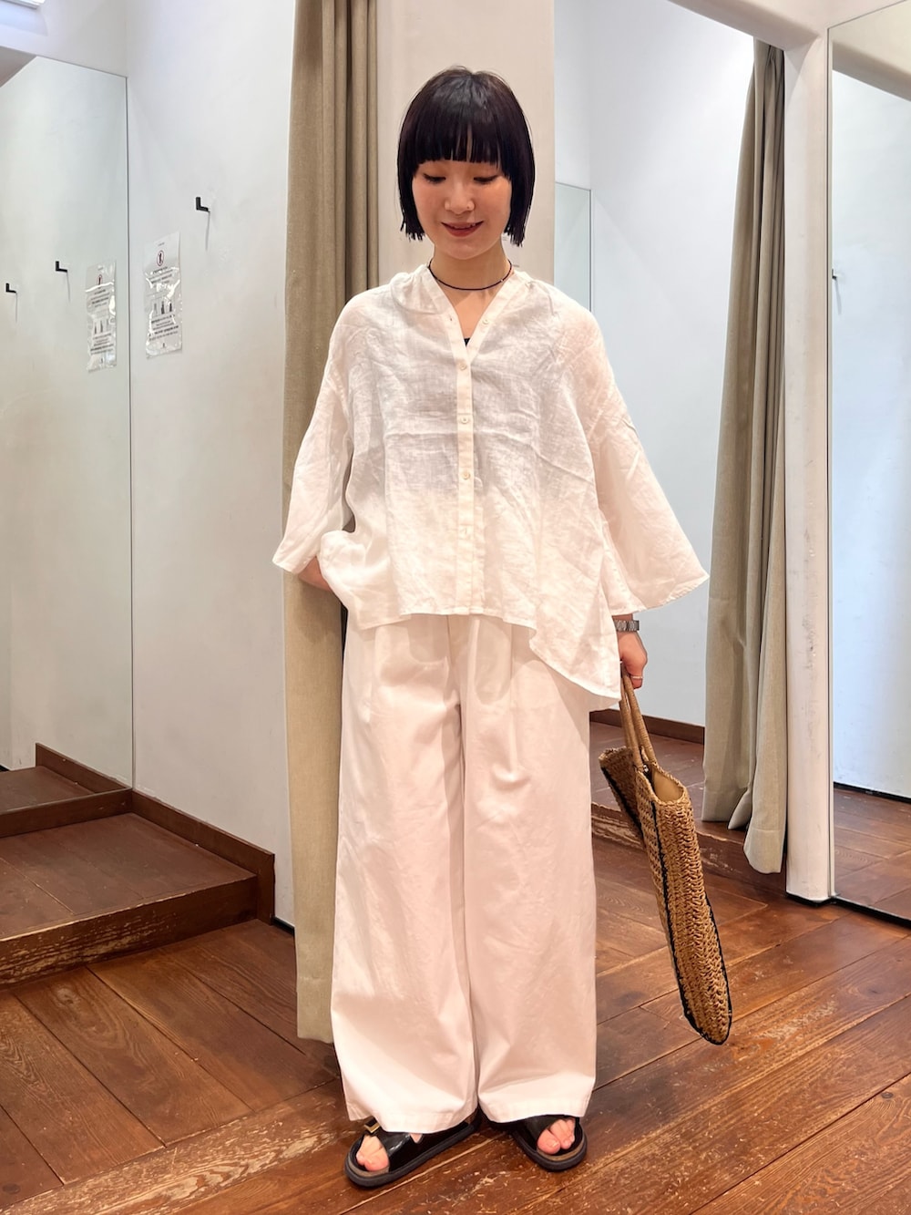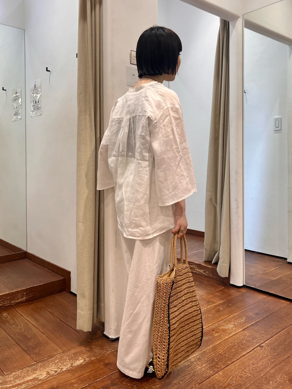 軽やかなリネン素材が着やすい1着。リネンは使い込むほどより風合いがでます🫧