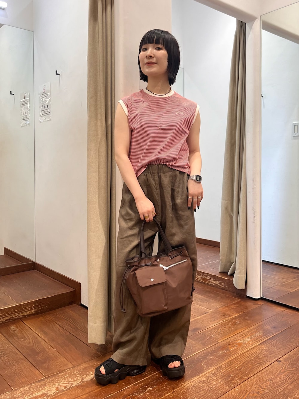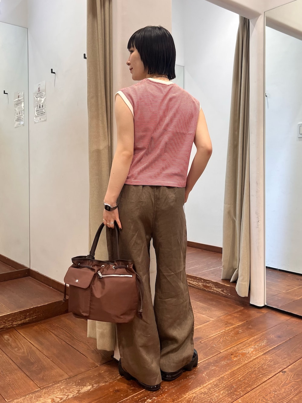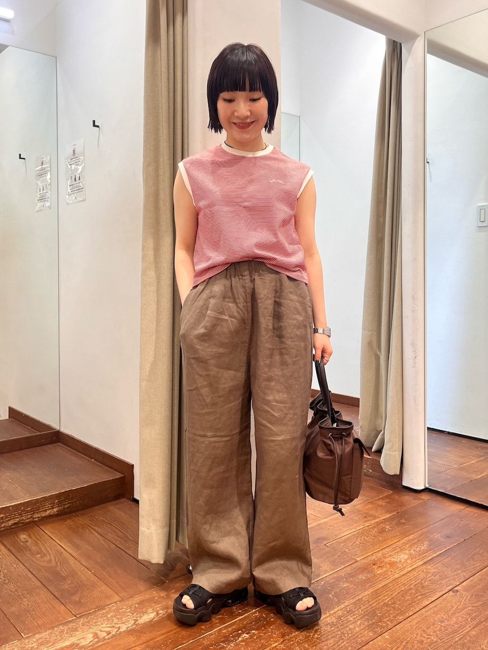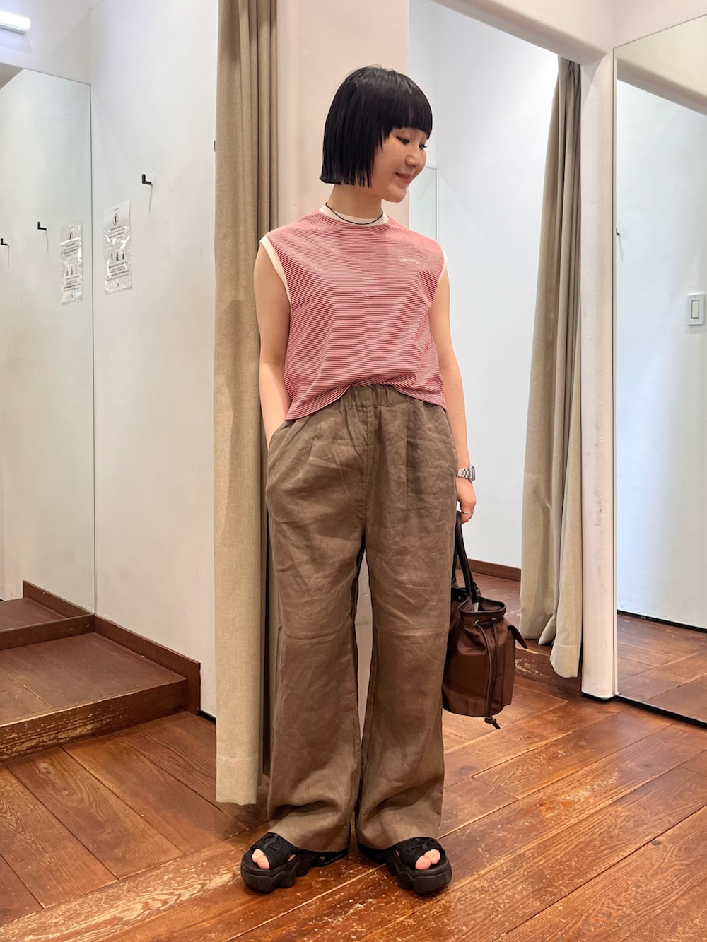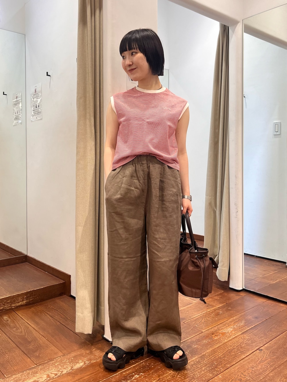 リネン100%の風合いが、一気に夏を思わせてくれる涼しげなパンツ。程よいボリューム感はありますがストンと落ちてくれるシルエットでラフすぎず抜け感抜群です。