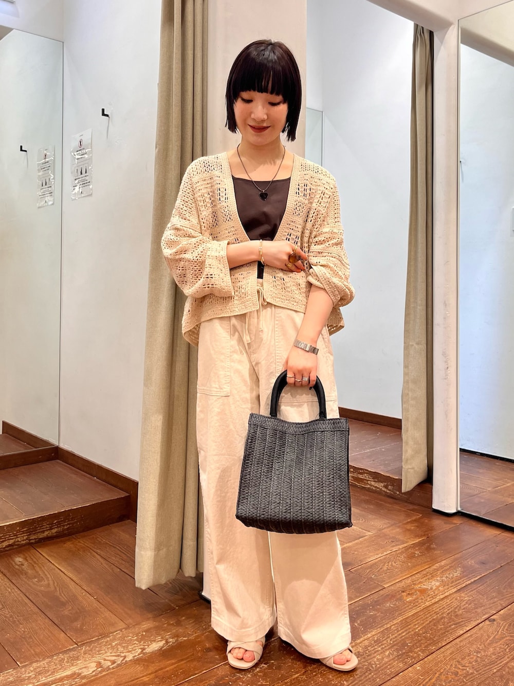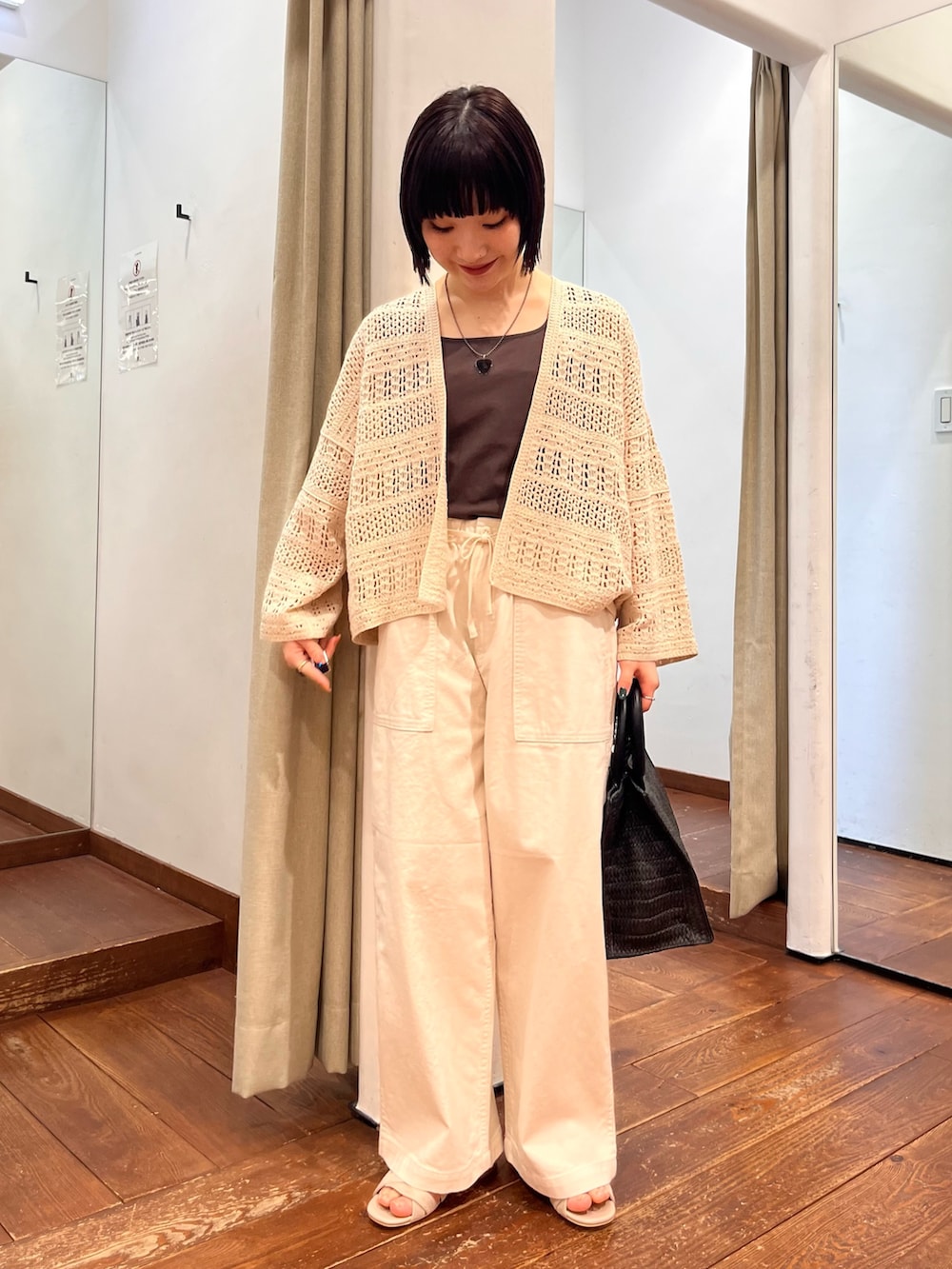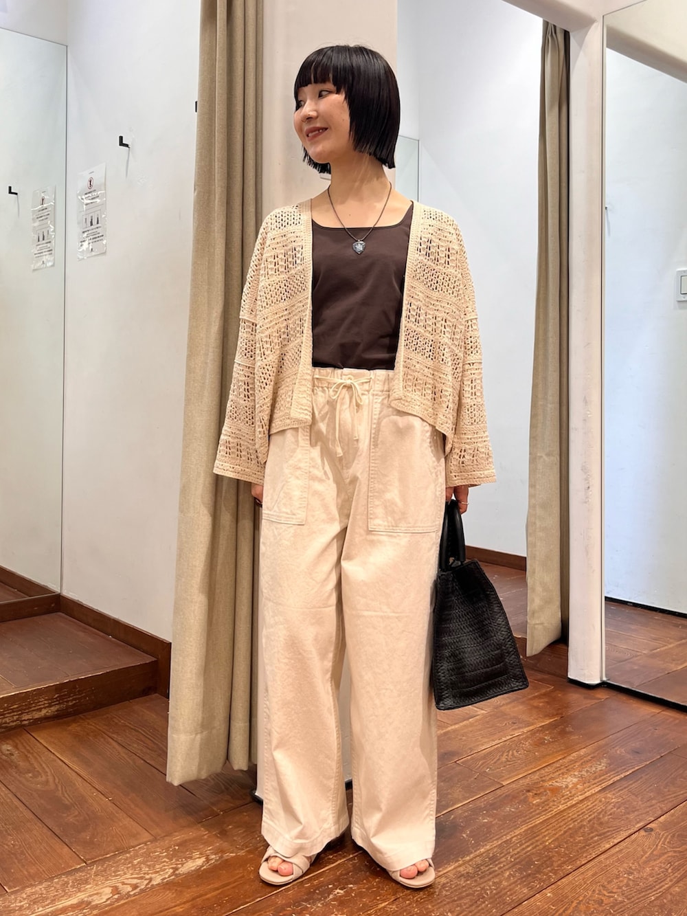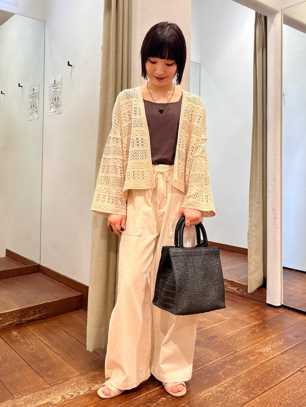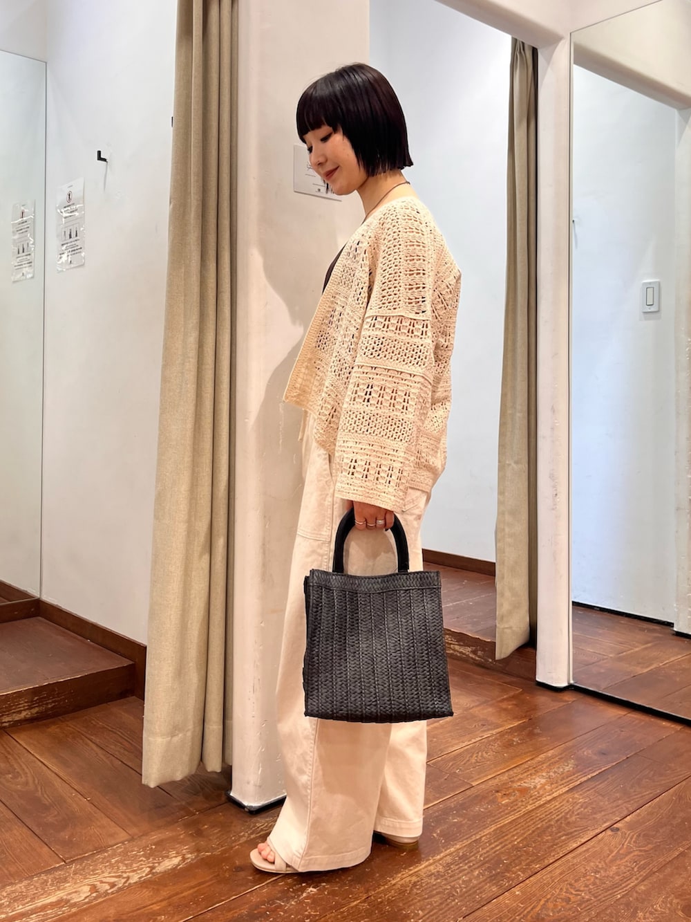 ナチュラルで柔らかい雰囲気ただようクロシェ編み。ボタンレスなのでサラッとはおるだけで春夏スタイリングのちょっとポイントになり可愛いです🦙