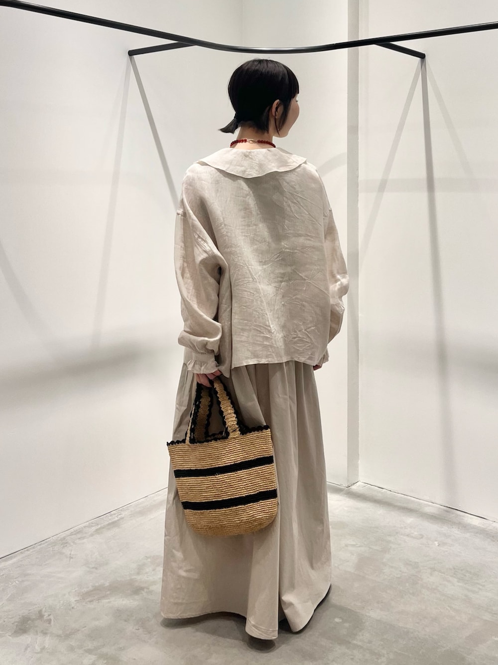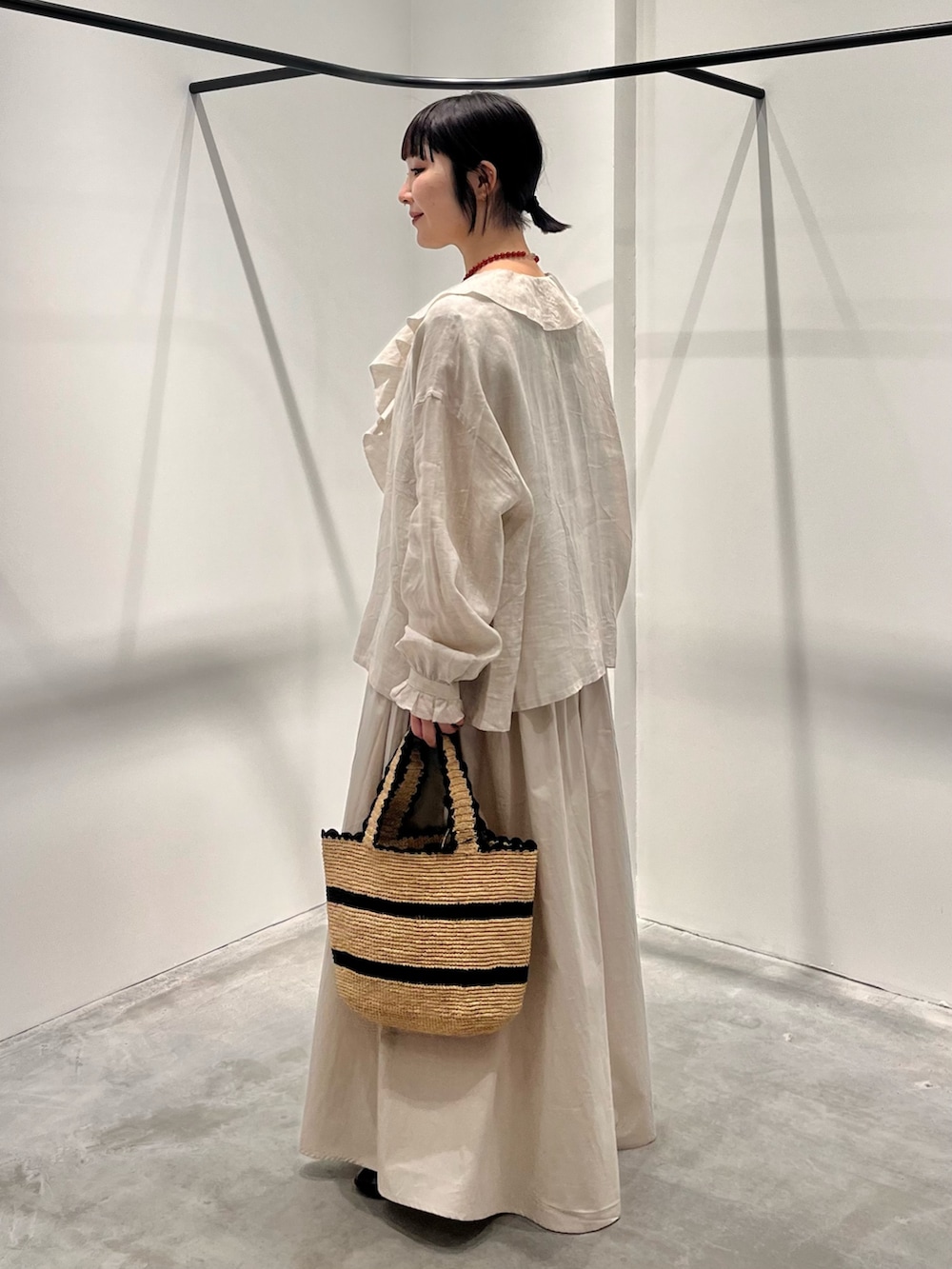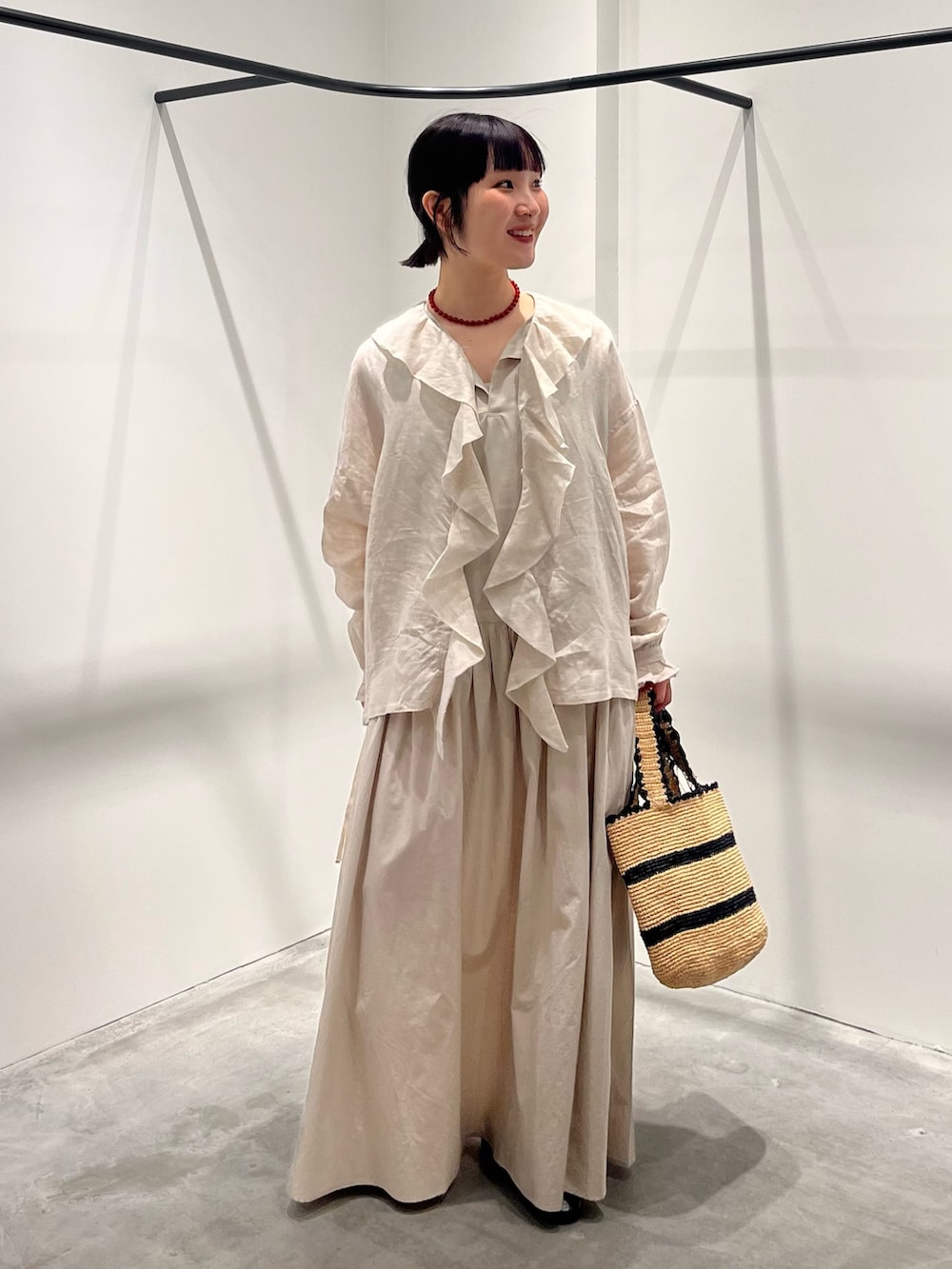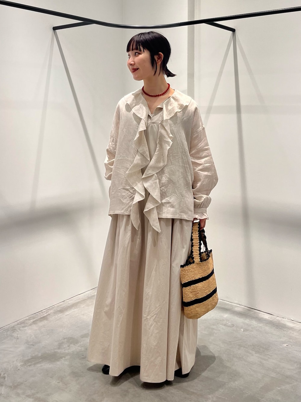 フロント、袖にたっぷりあしらったフリルが特徴的で薄手のフレンチリネンを使用し天然素材ならではのシャリ感と抜け感があります🫧