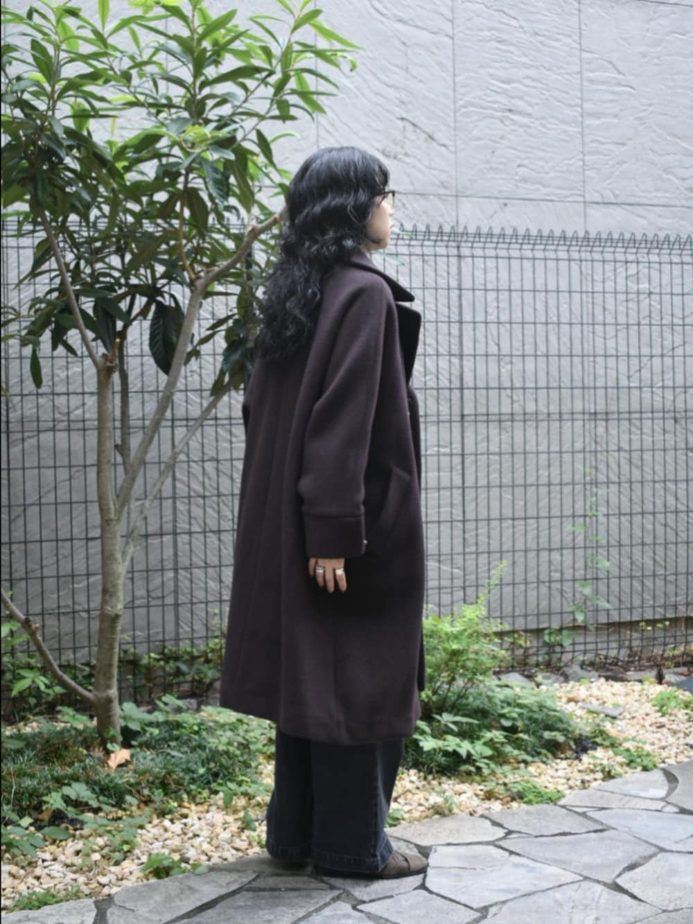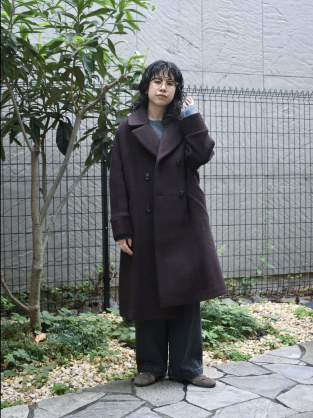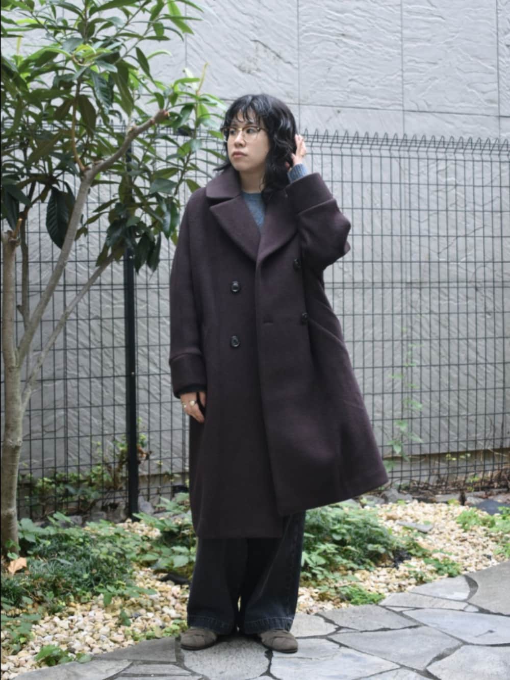 しっかりとした厚みがあるウール素材は上質な雰囲気で、裏地付きなので真冬まで着られるコートです。