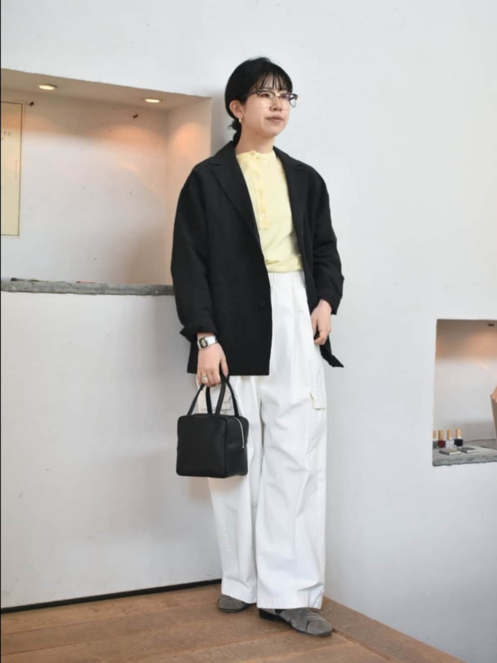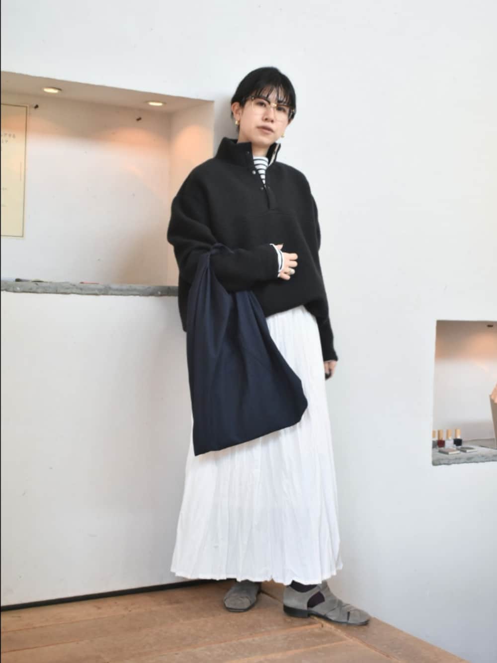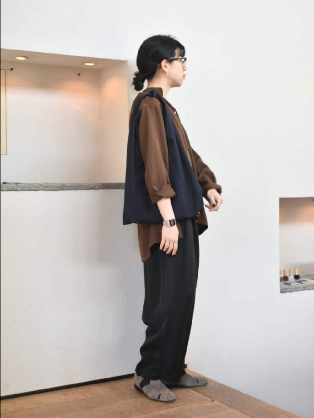かぐれのアイテムでリラックス感のある、きれいめなスタイリングを組んでみました。