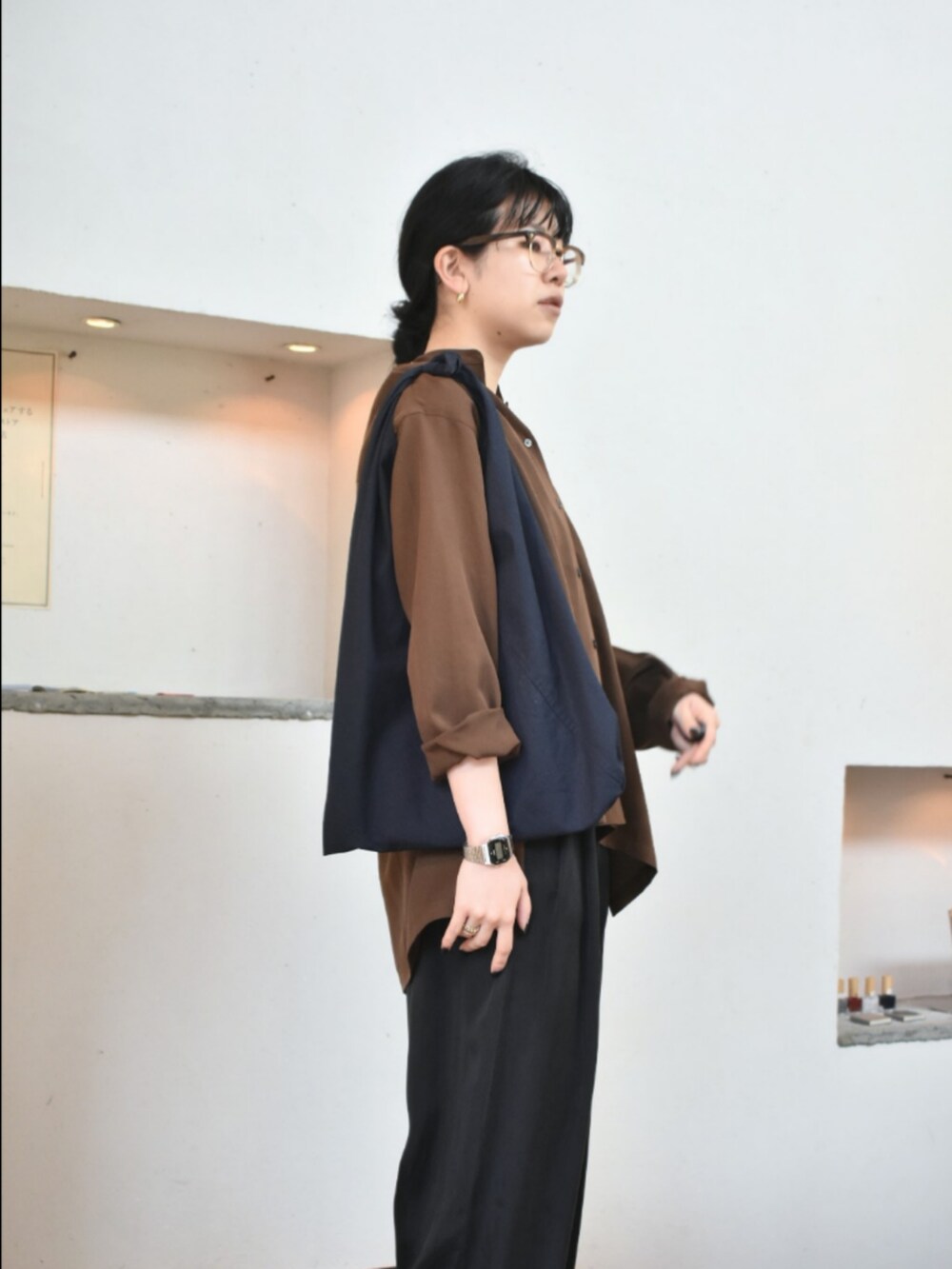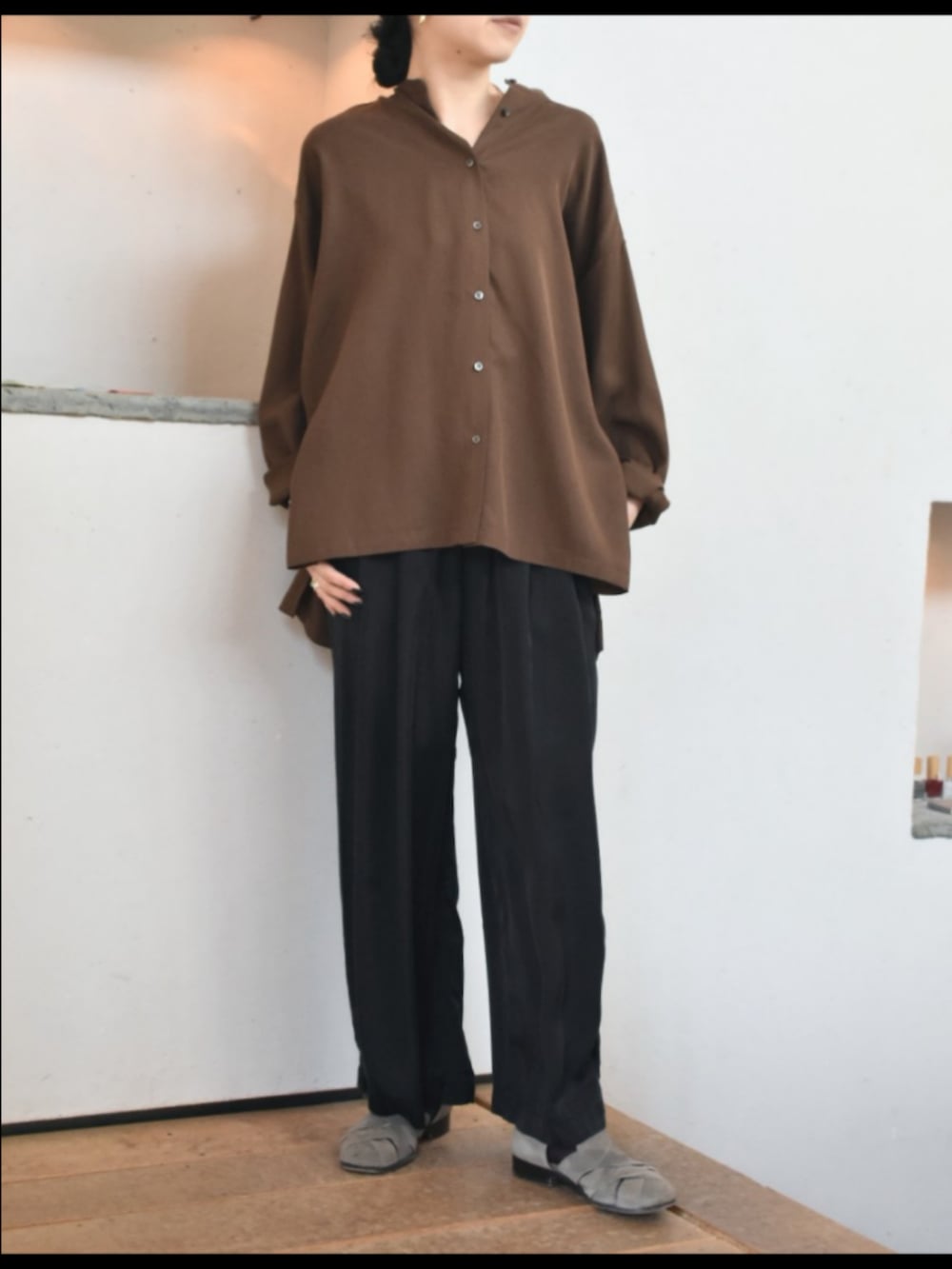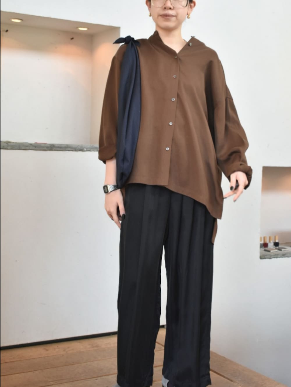 かぐれのアイテムでリラックス感のある、きれいめなスタイリングを組んでみました。