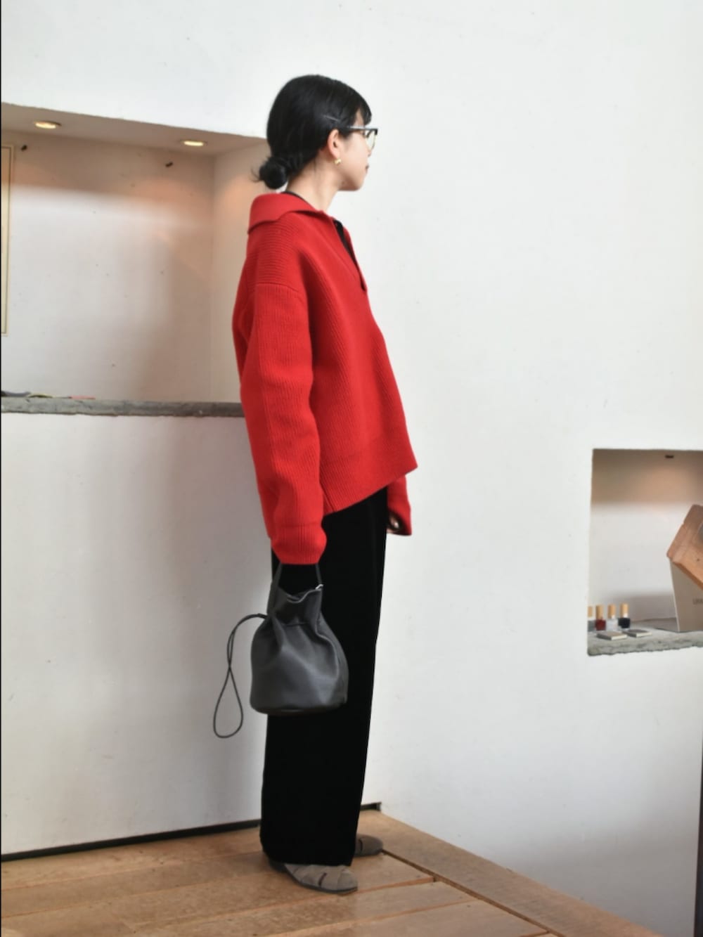 かぐれのベルベットパンツで大人カジュアルなスタイリングを組んでみました。