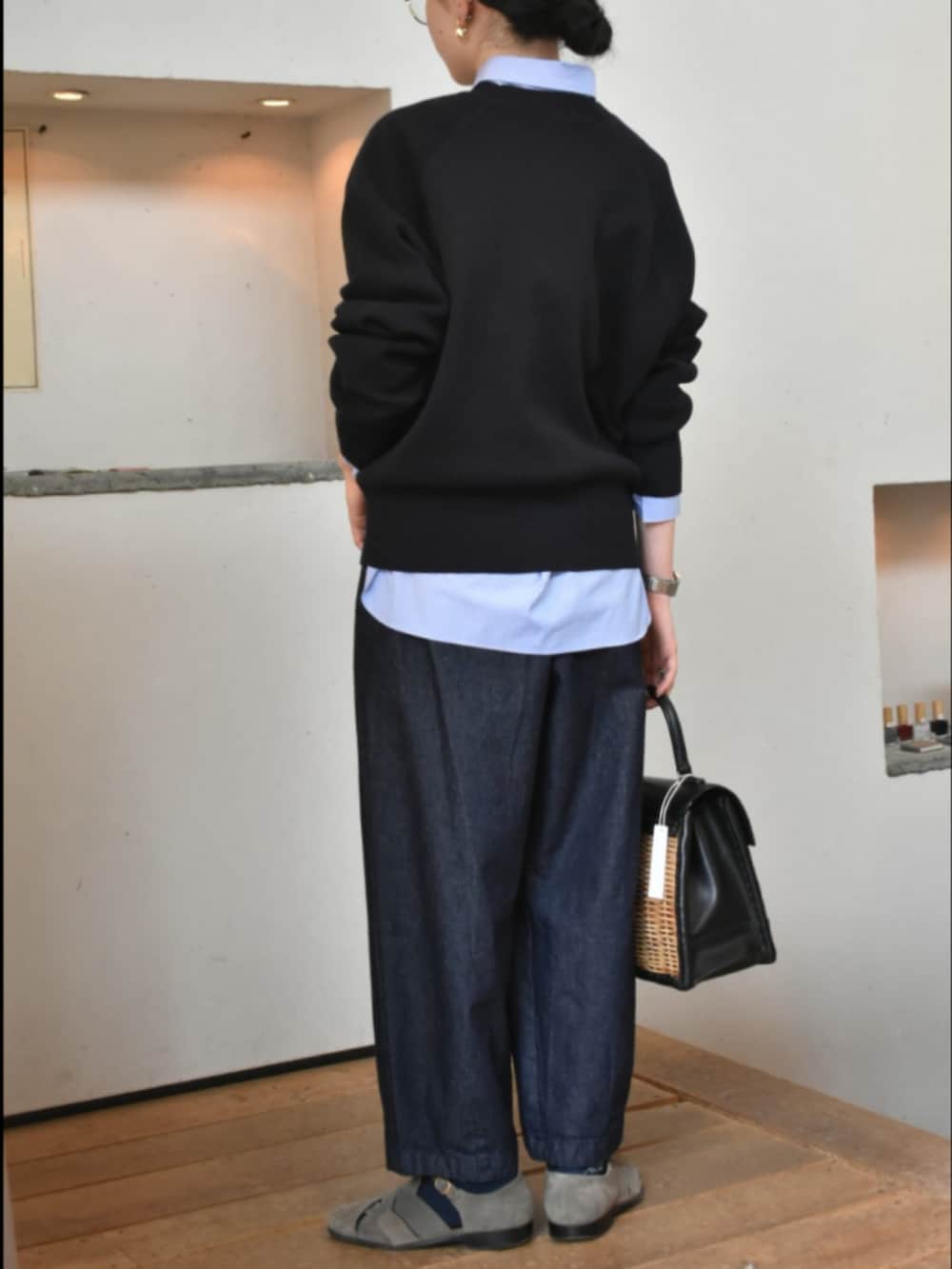 丸みのシルエットとすっきりとしたテーパードデザインで、合わせるだけでこなれた印象に。