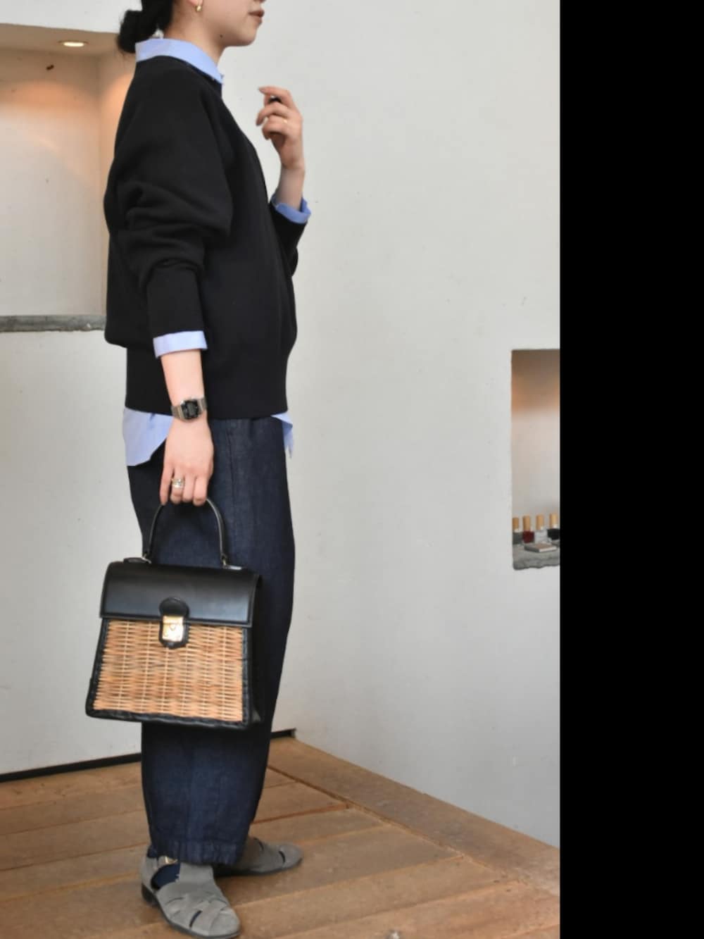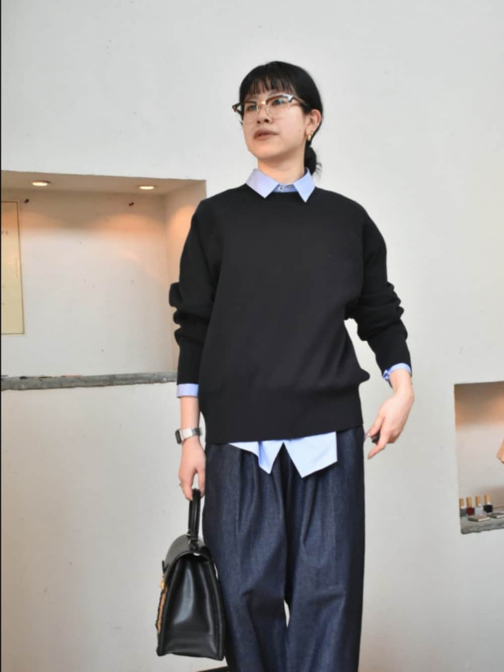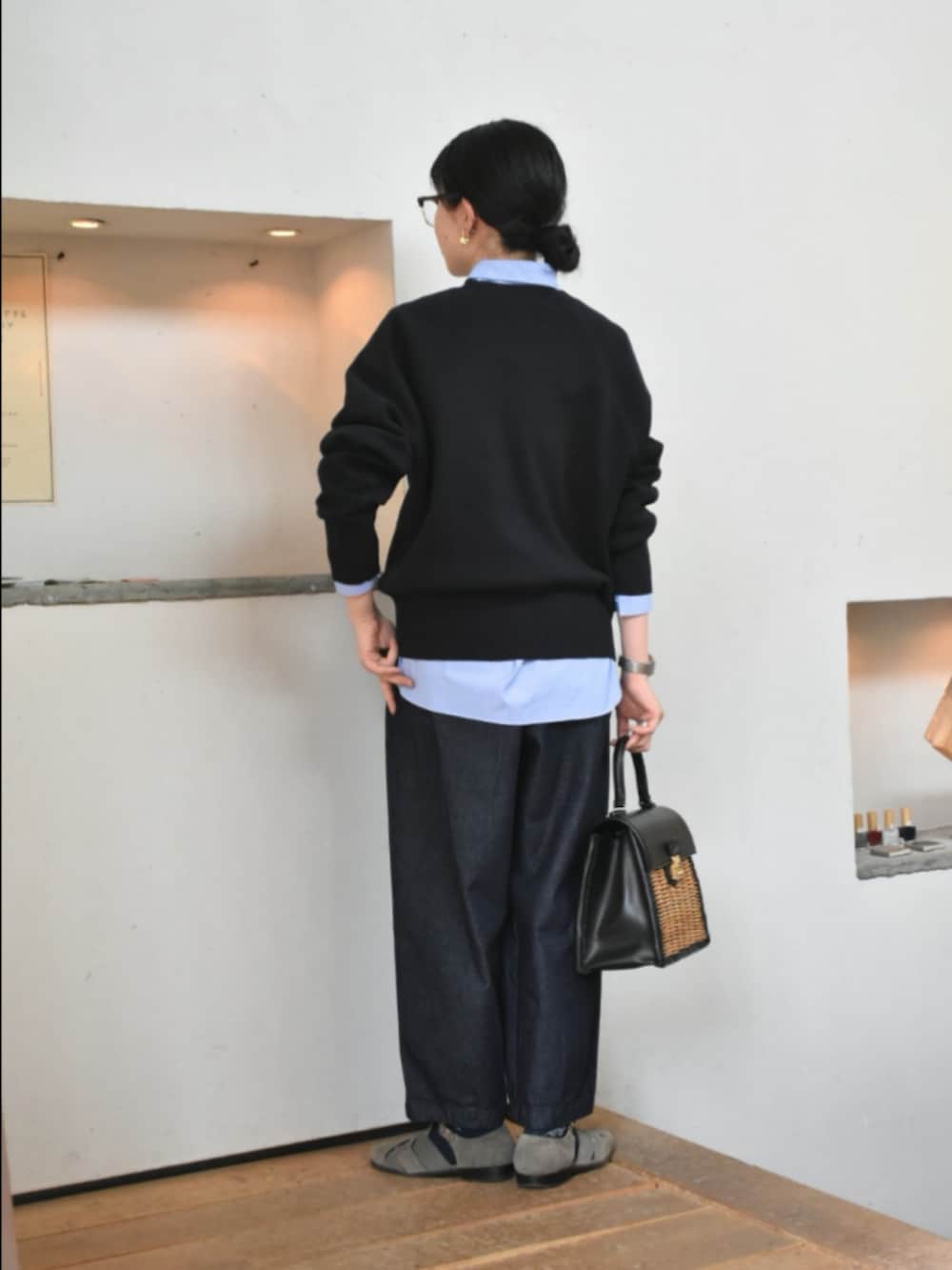 落ち感が出すぎないニットなので、体のラインが出すぎず、重ね着にも◎