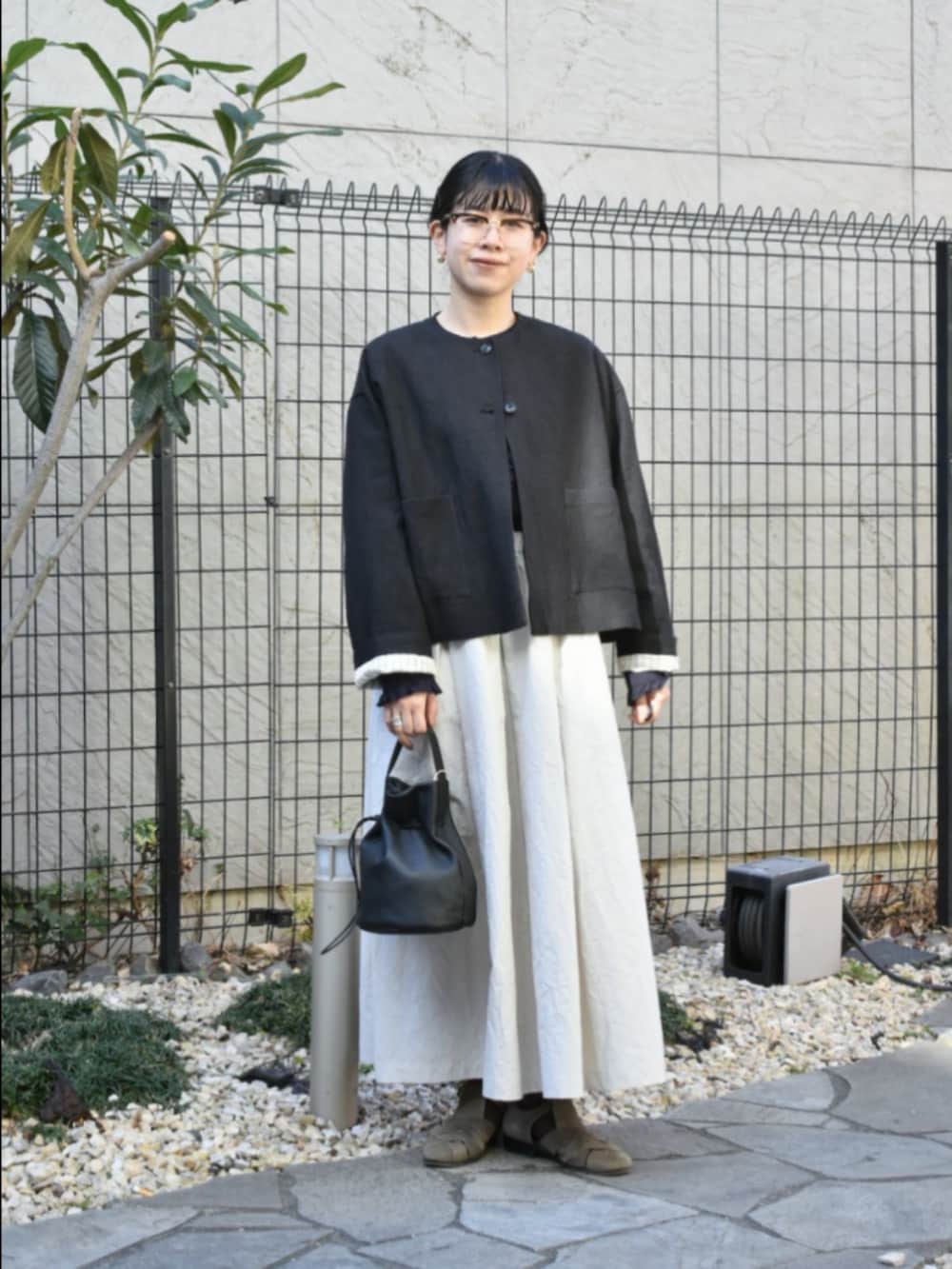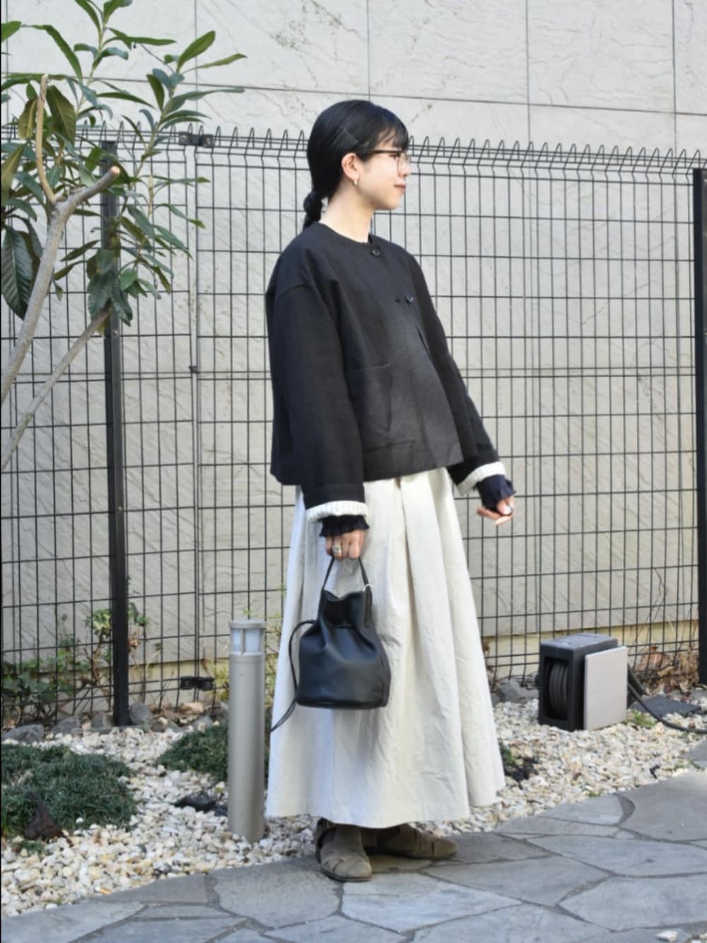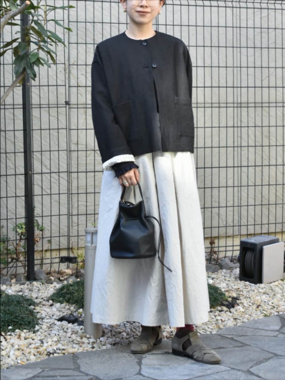 身幅はゆるっとしていて、着丈がコンパクトなのでスカートや太いパンツとの相性も良かったです!