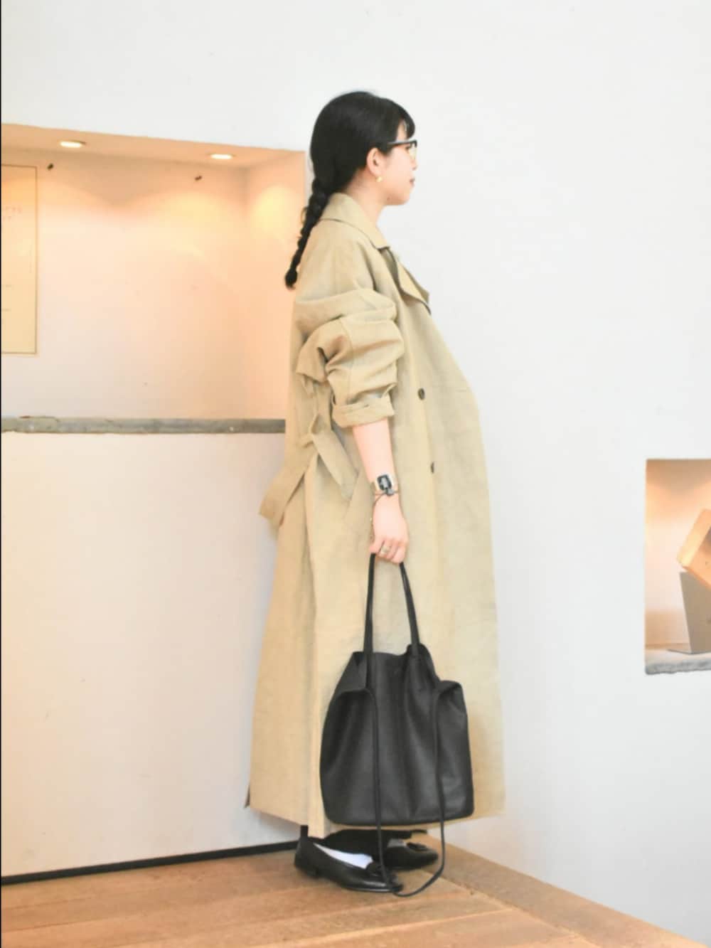 かぐれ『ユニセックス』コットンリネンオーバートレンチコート- 着用カラー: