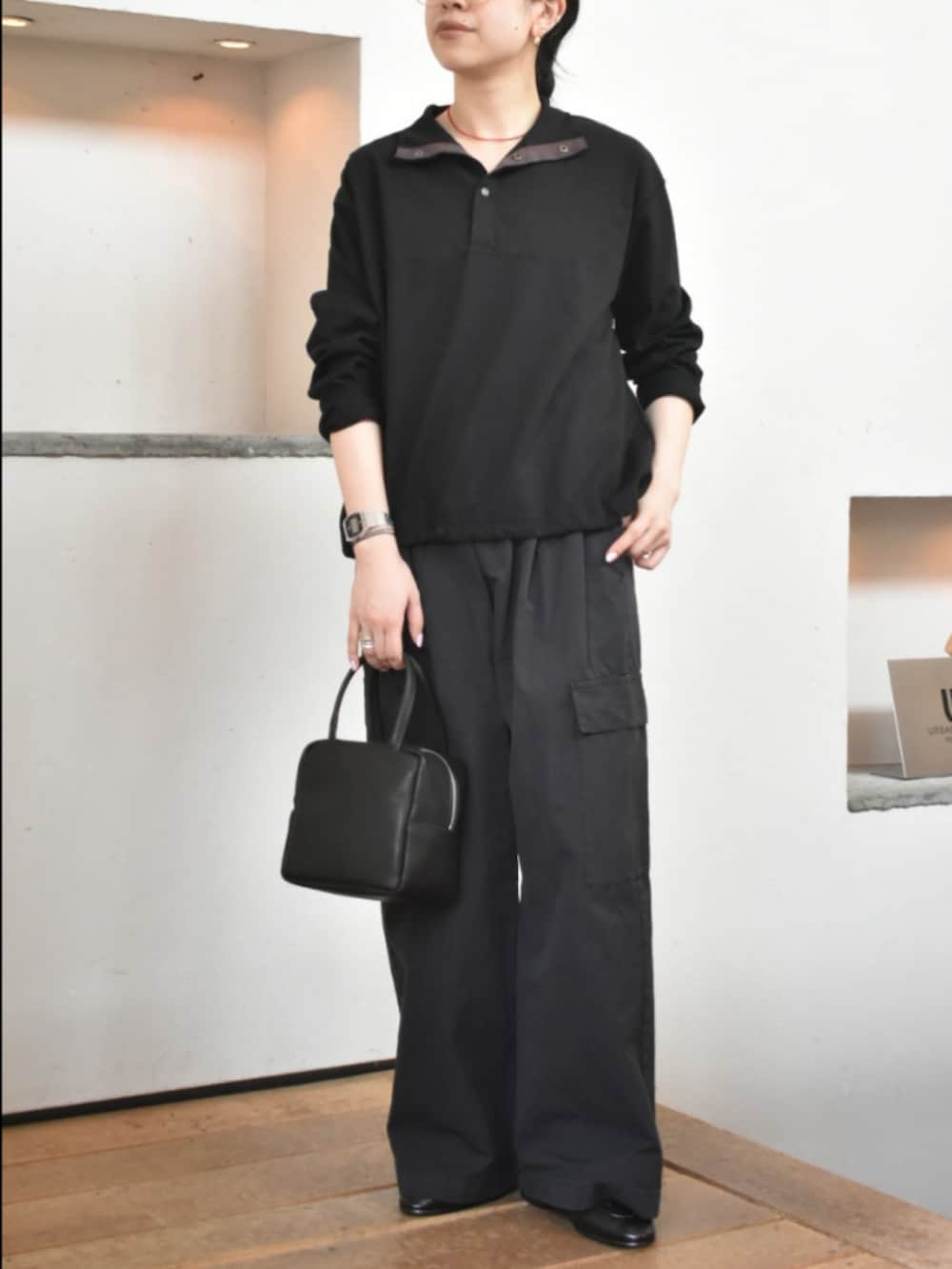 軽さのある綿素材で、裾のドローコードや首元のスナップボタンで印象を変えて、スタイリングを楽しんで頂けます◯