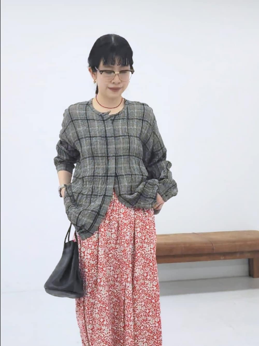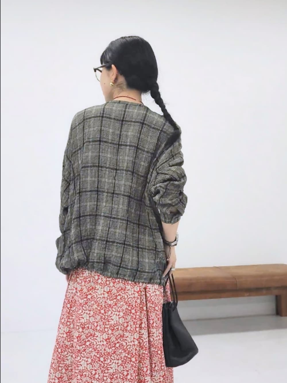 かぐれリネンレーヨンチェックシャツカーディガン- 着用カラー: