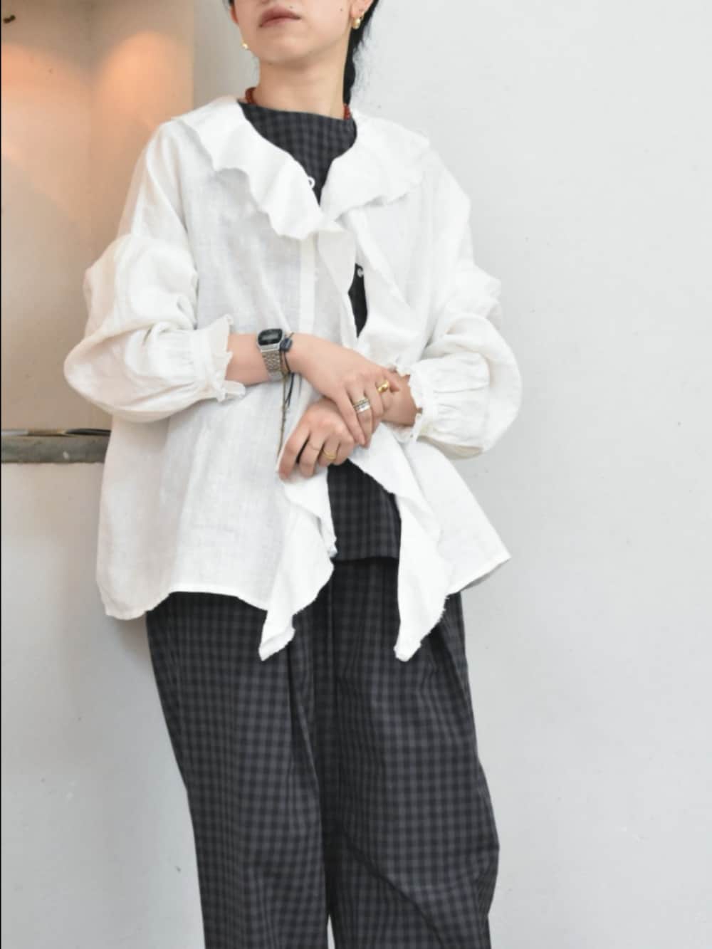 かぐれリネンフリルカラーシャツ- 着用カラー:
