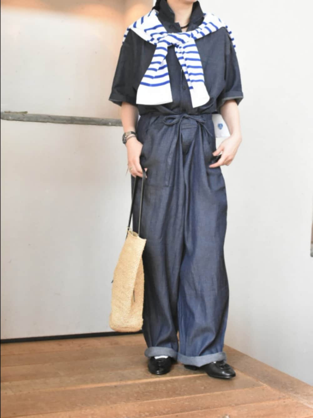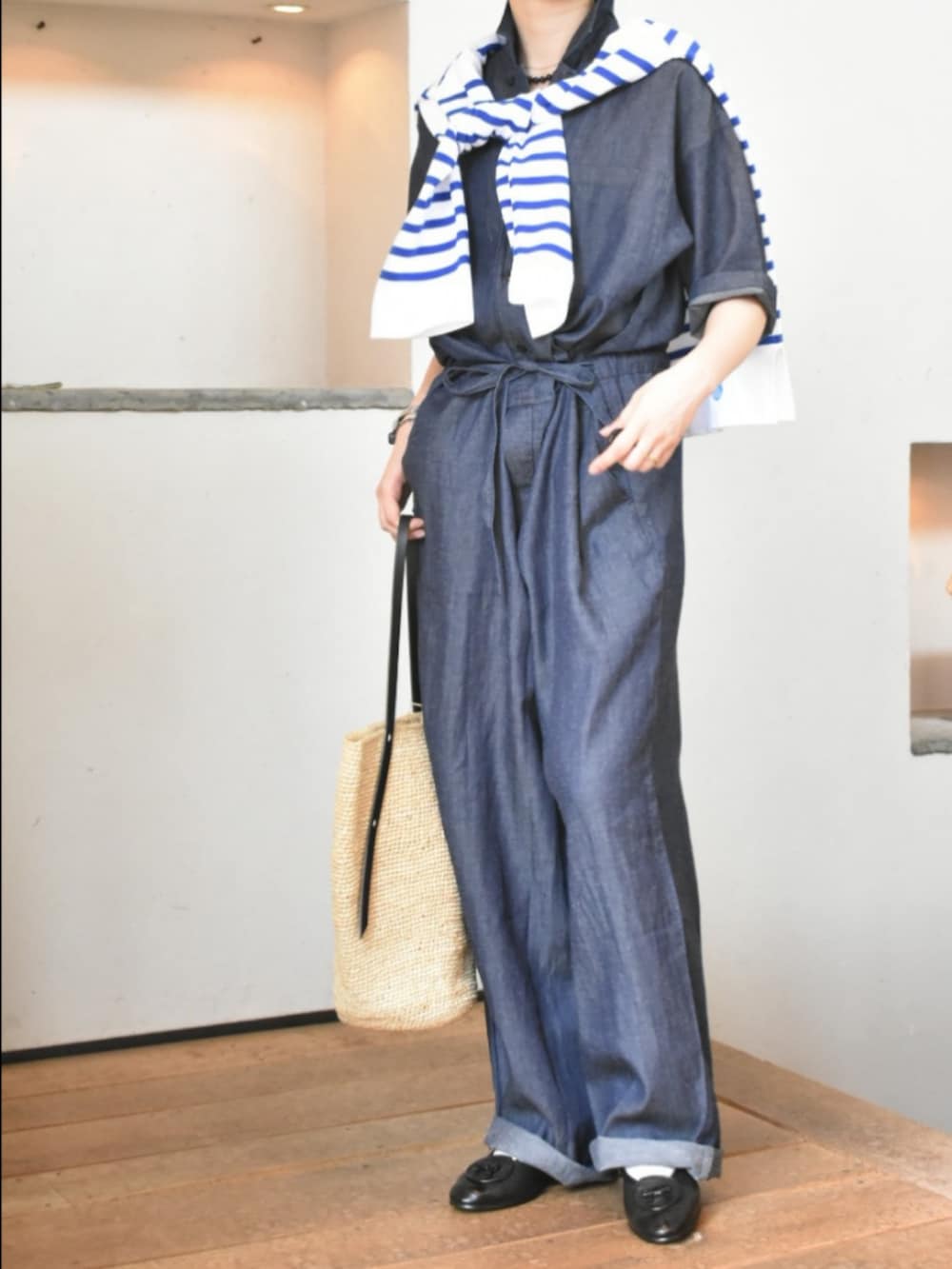 ハーフスリーブのオールインワンは、1枚で夏場まで。ジャケットなどを重ねて春秋と長いシーズン楽しんで頂けます◎