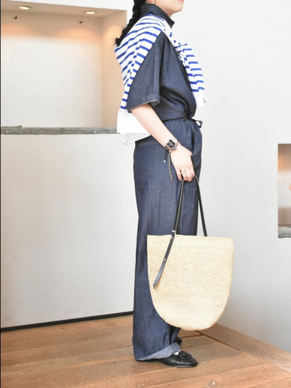 ウエストの紐を調節して、ハイウエストでモード感を出しても、ローウエストでナチュラルにも着て頂けます^^
