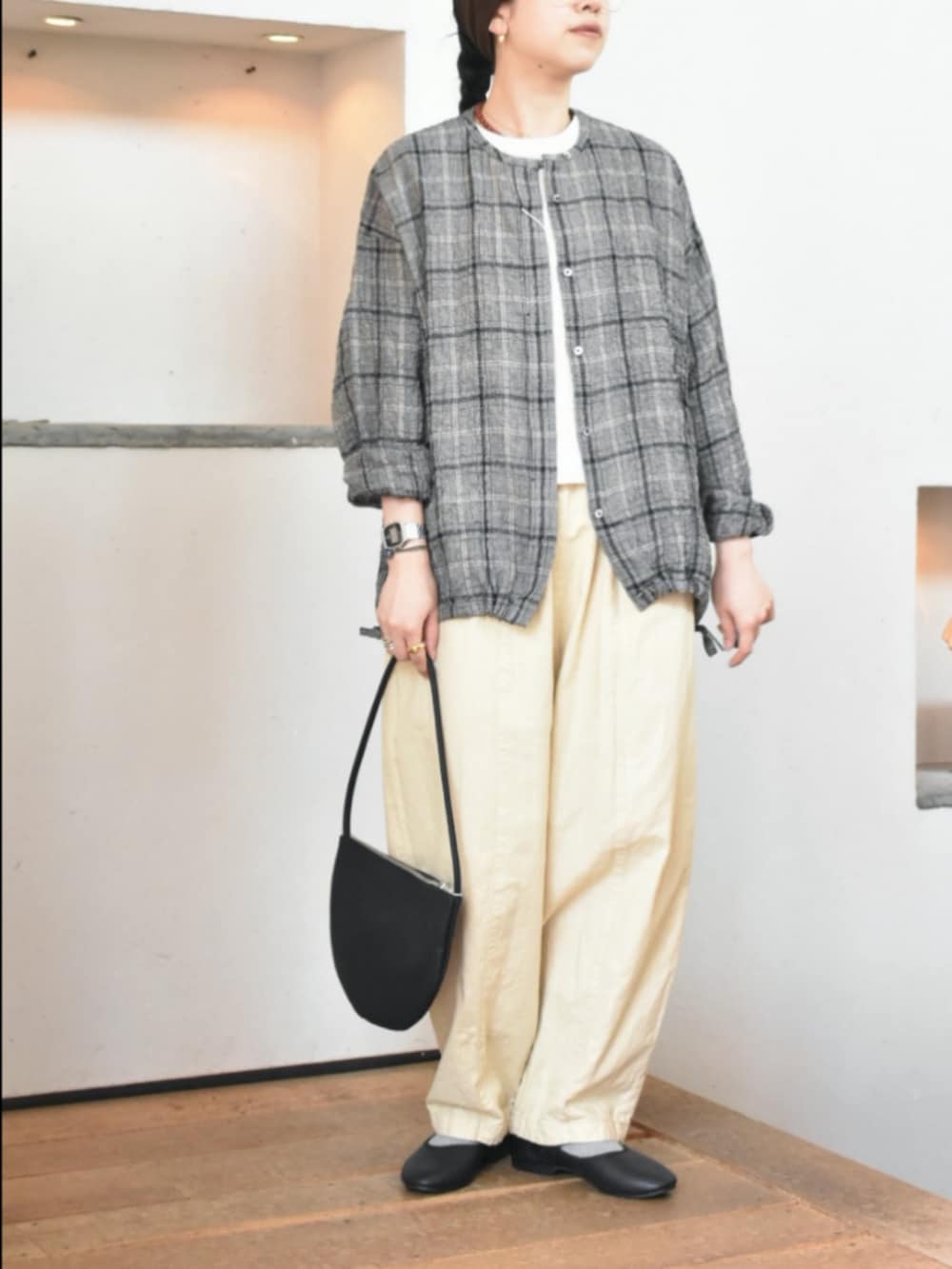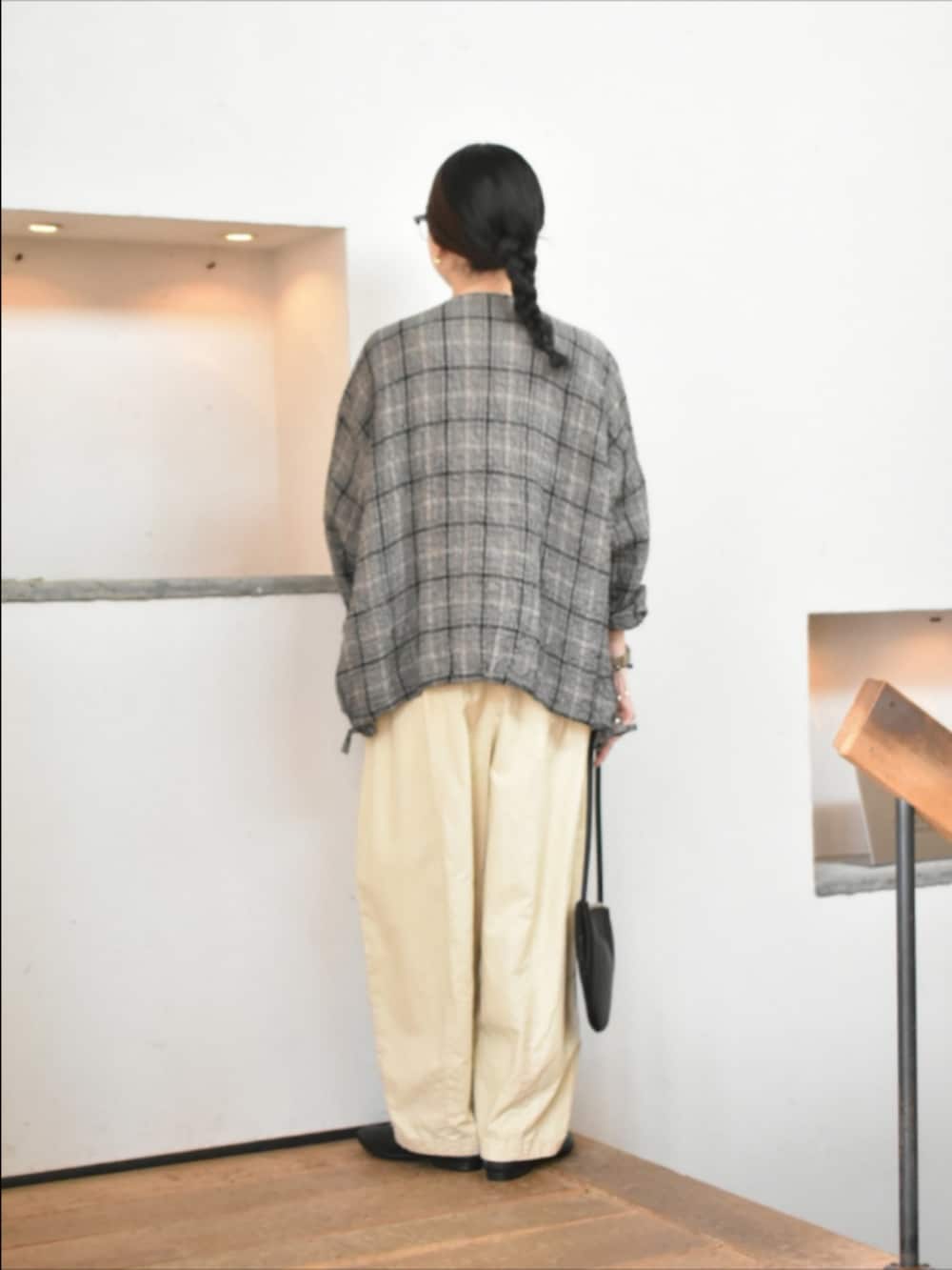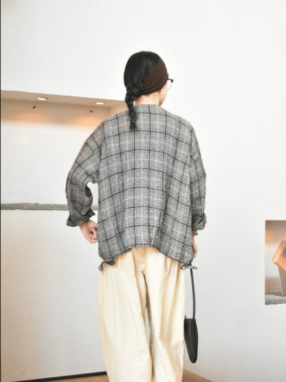 1枚でも、羽織としても万能に使えるチェック柄が目を惹くアイテム。