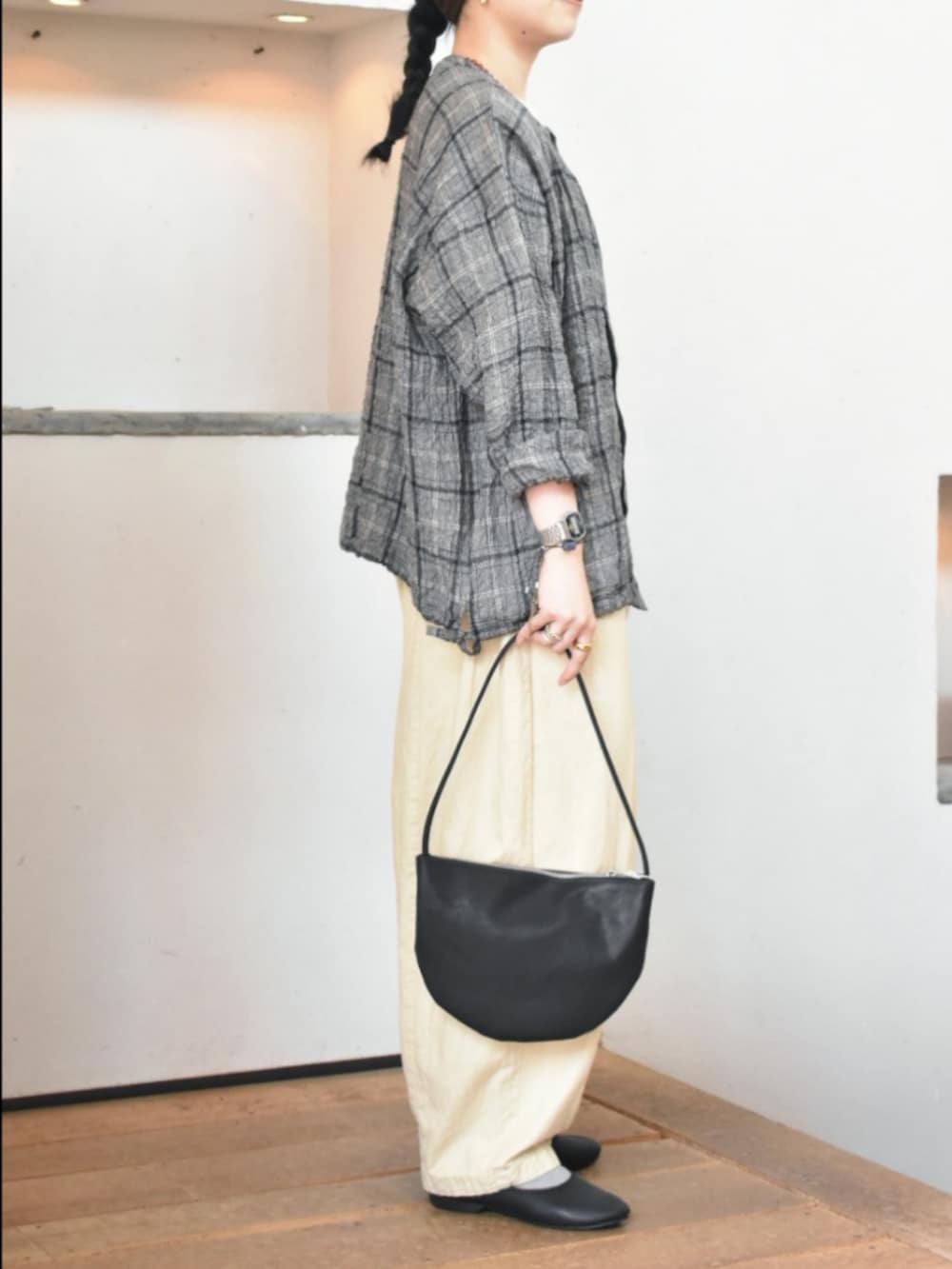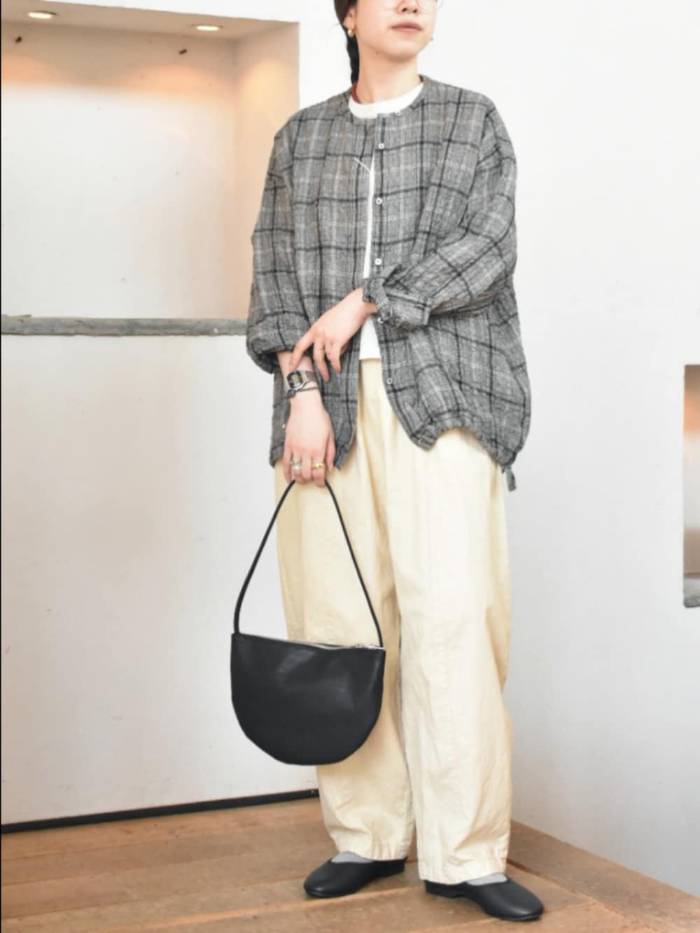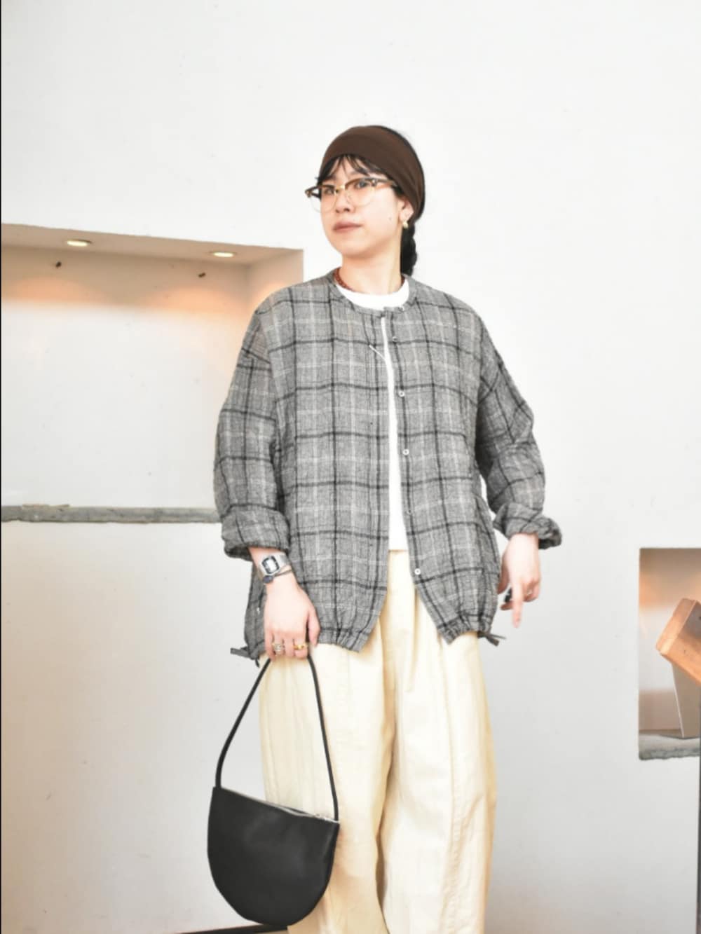 1枚でも、羽織としても万能に使えるチェック柄が目を惹くアイテム。