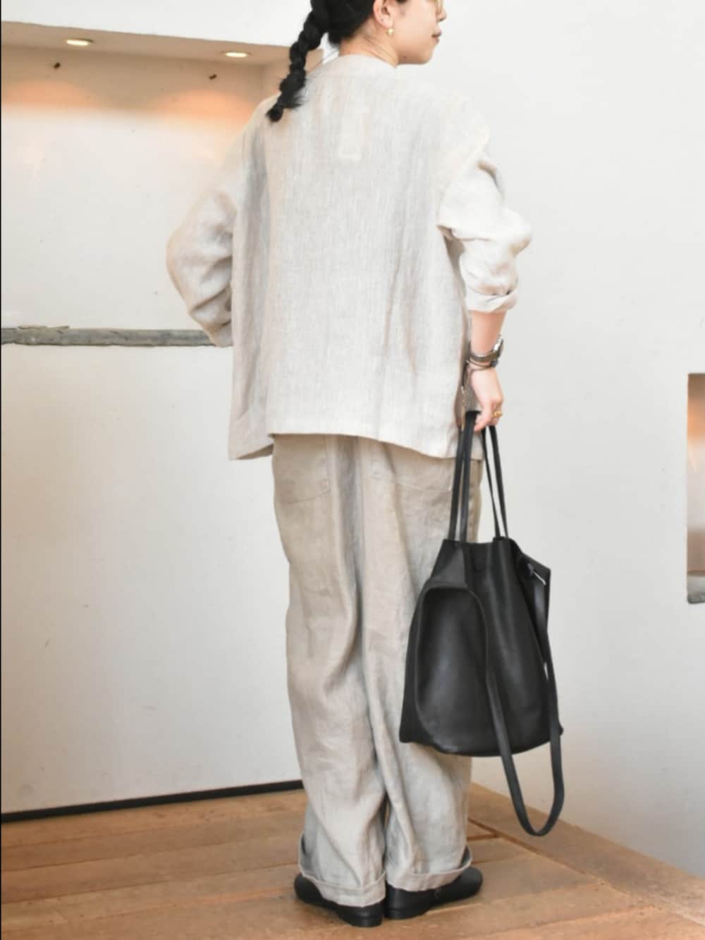 かぐれの定番のバッククロスサロペットより、新作がリネン素材で入荷いたしました。