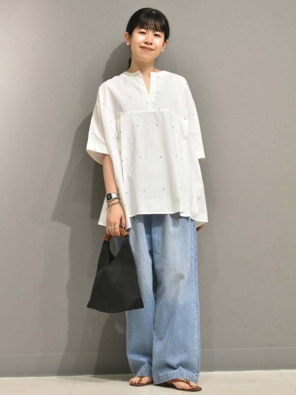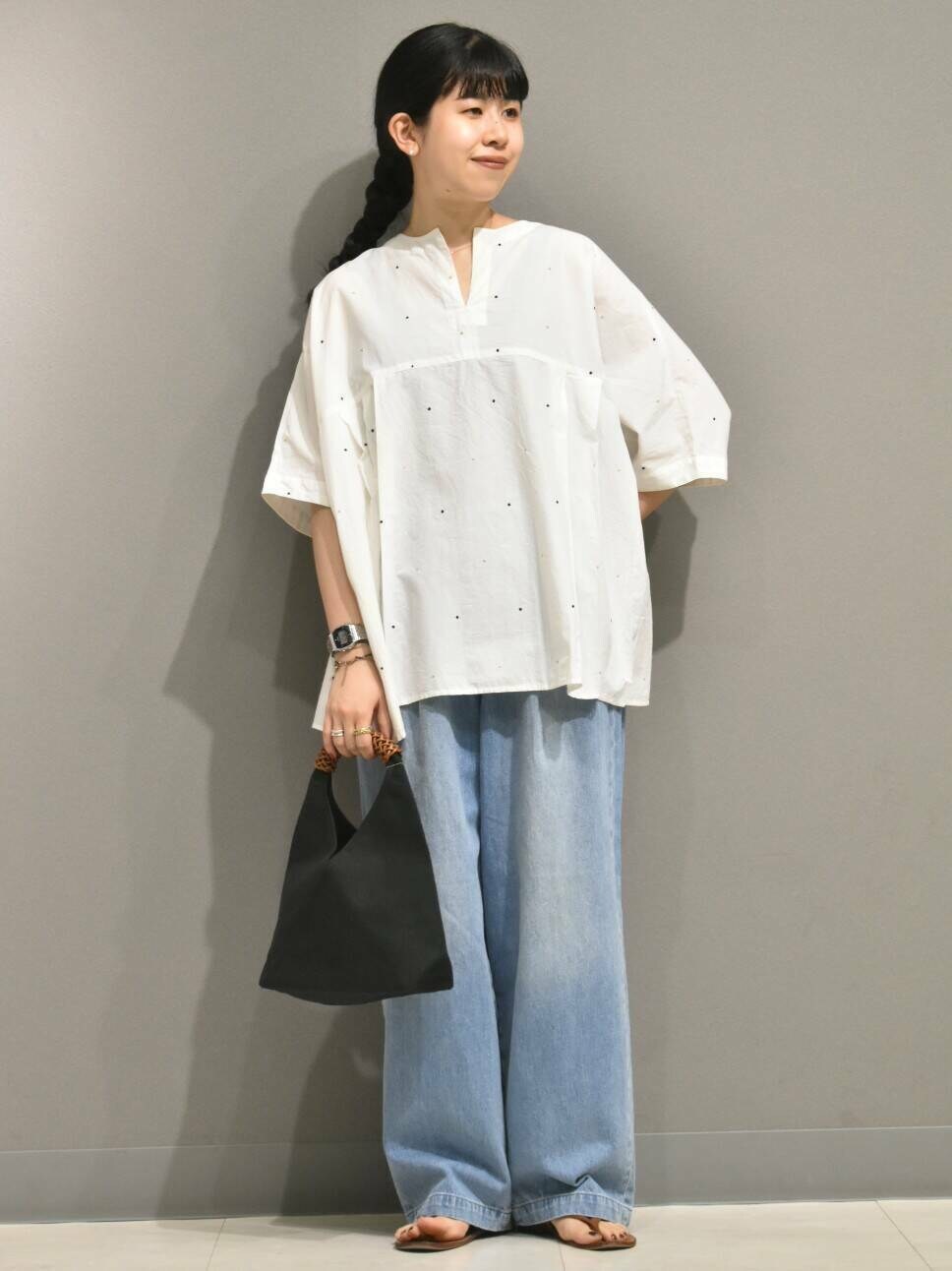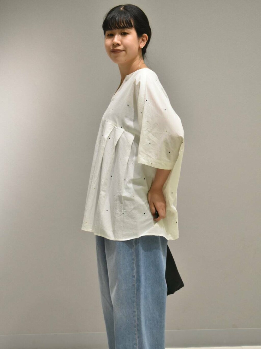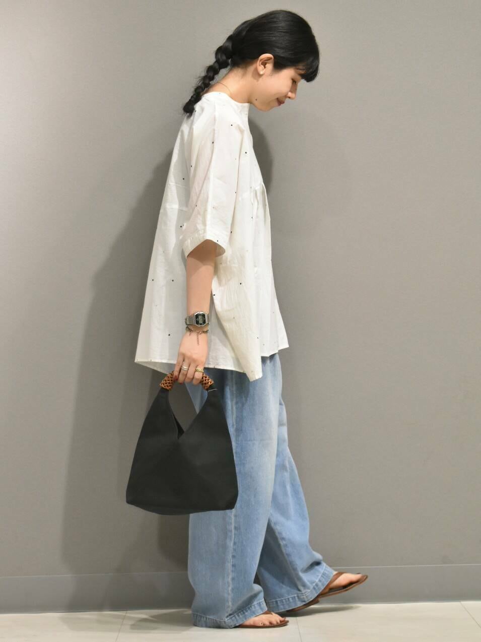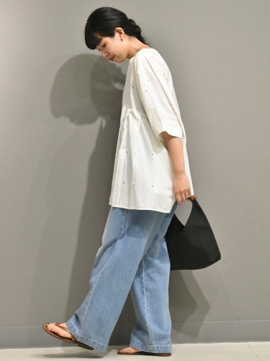 ハリがある素材なので、ゆとりがあるシルエットなのに華奢見えするのが嬉しいポイントです◎