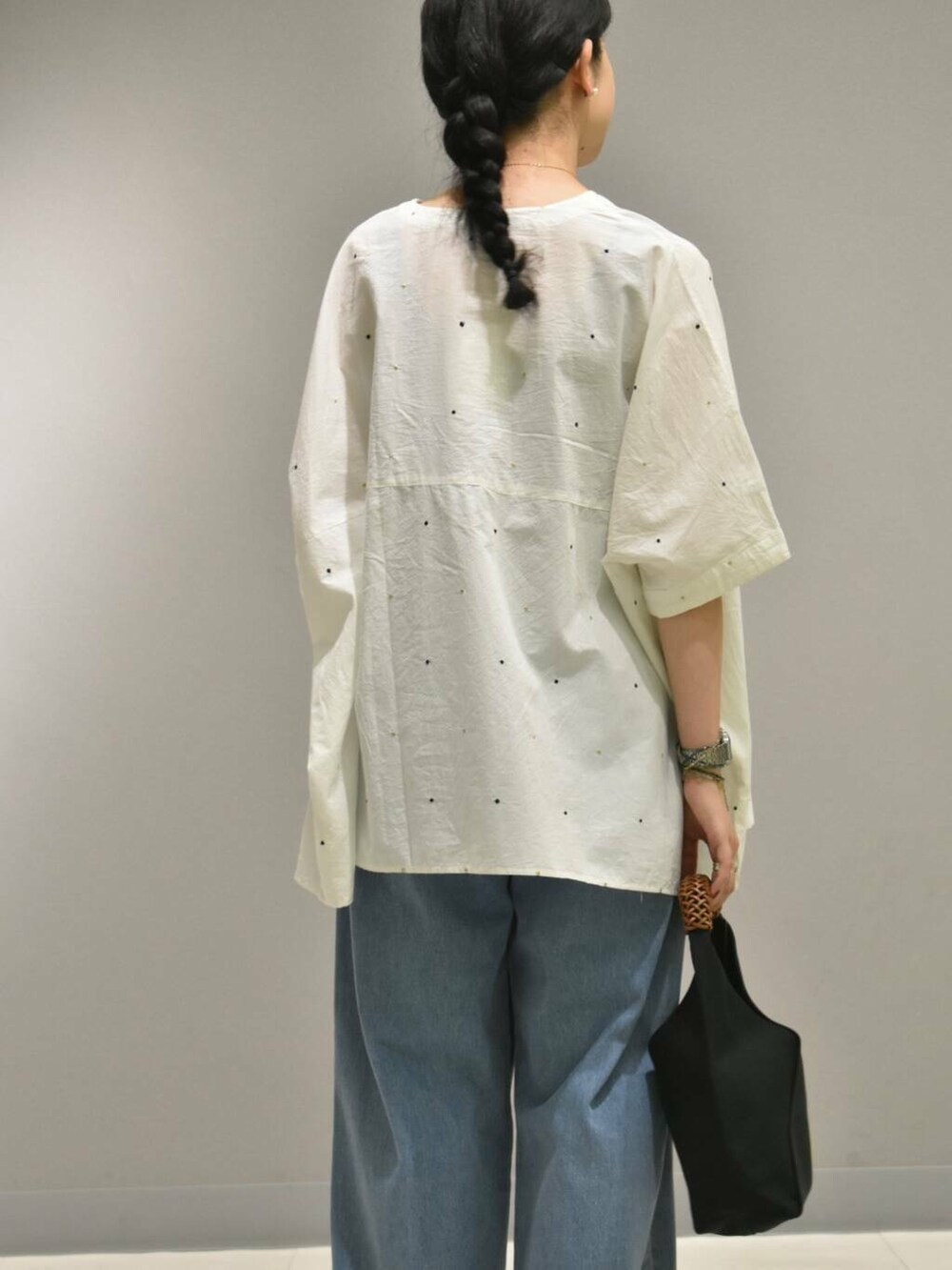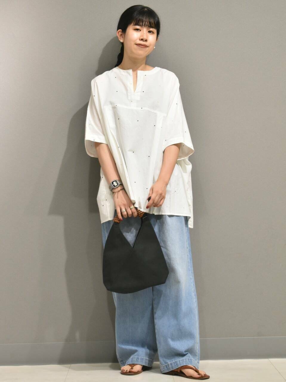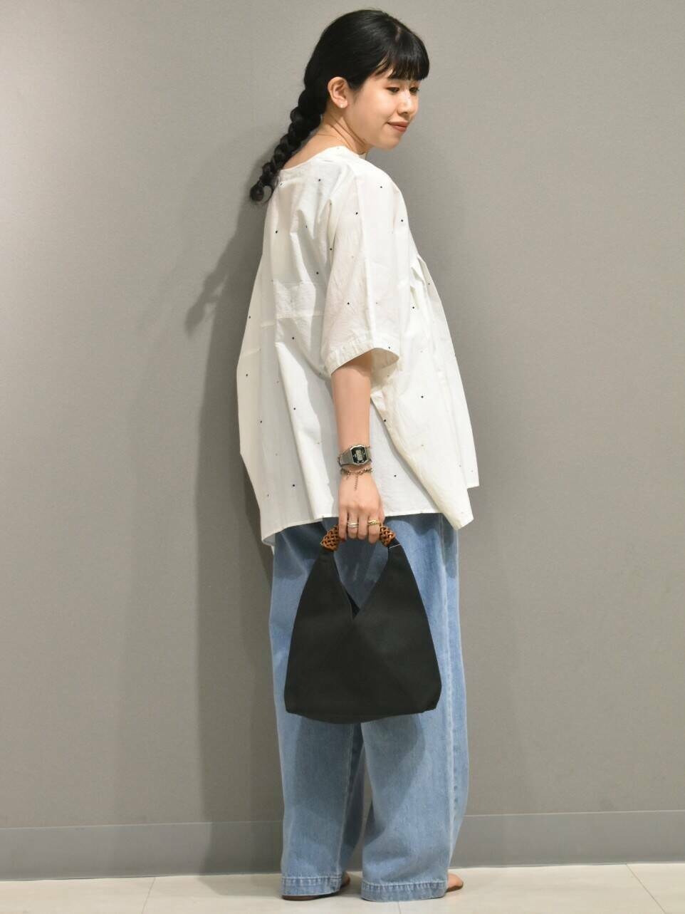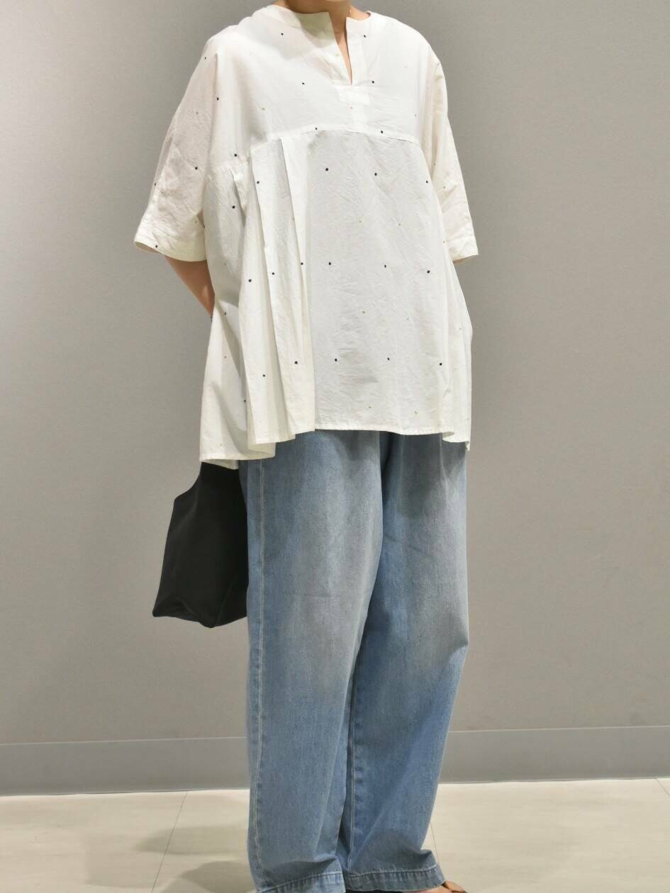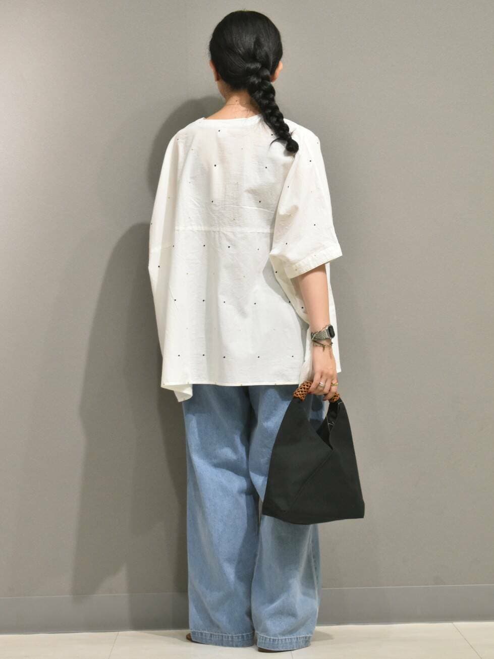 ハリがある素材なので、ゆとりがあるシルエットなのに華奢見えするのが嬉しいポイントです◎
