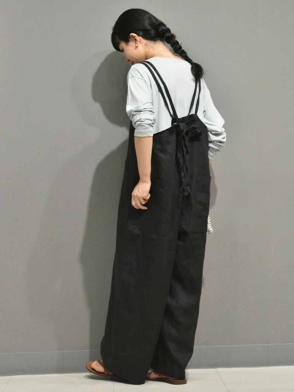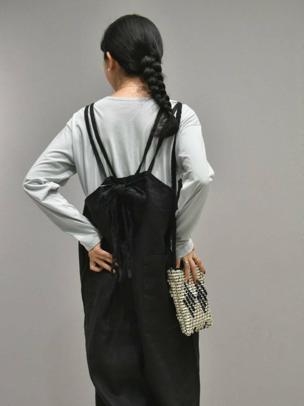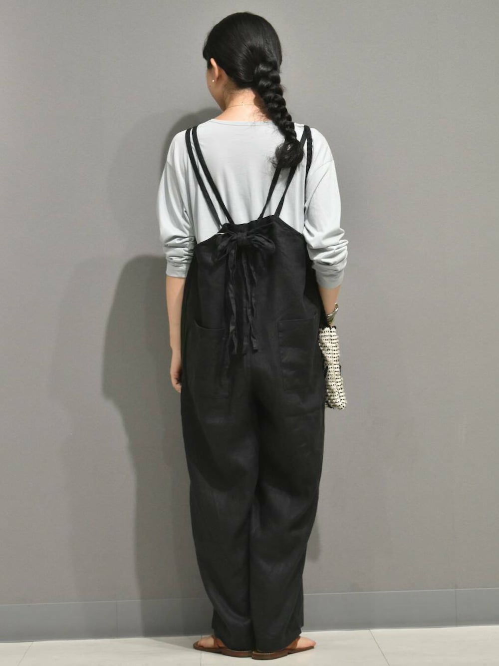 カジュアルなアイテムながらも、麻素材の風合い.華奢な2本の肩紐.バックリボンで大人で女性らしい雰囲気に◎