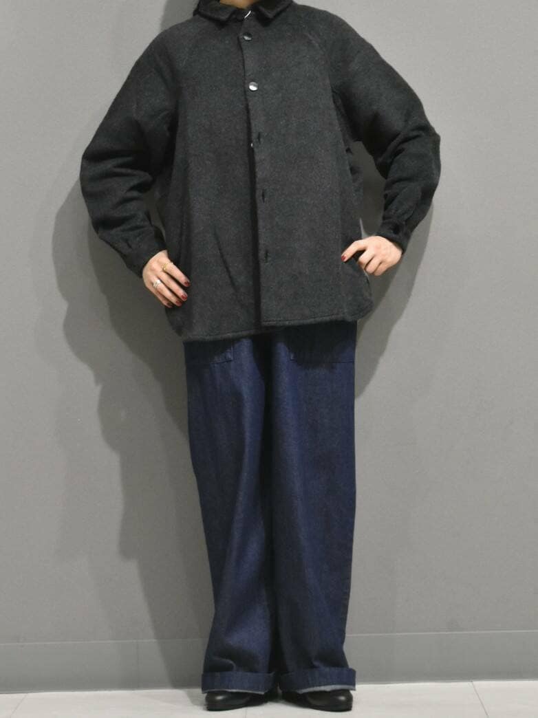 しっかりとしたデニム素材なのでシルエットを拾いづらく、シーズンレスに様々な場面でお使いして頂けます!
