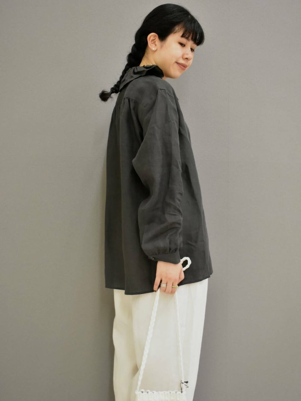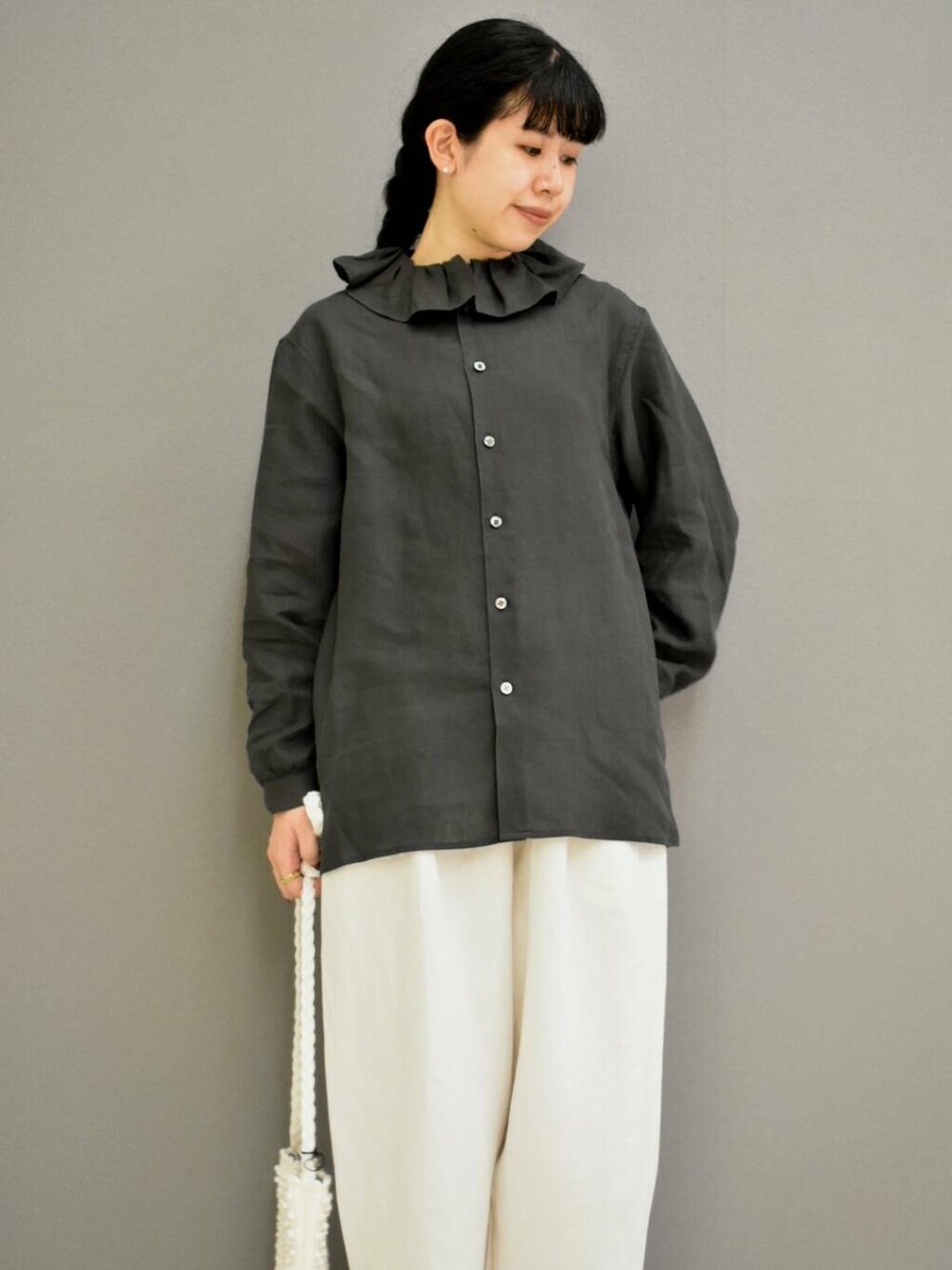 立体感のあるフリルネックが女性らしい一着。